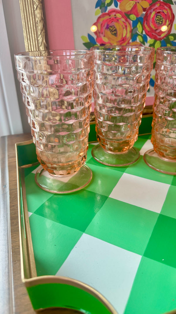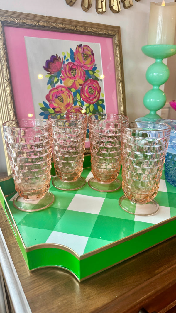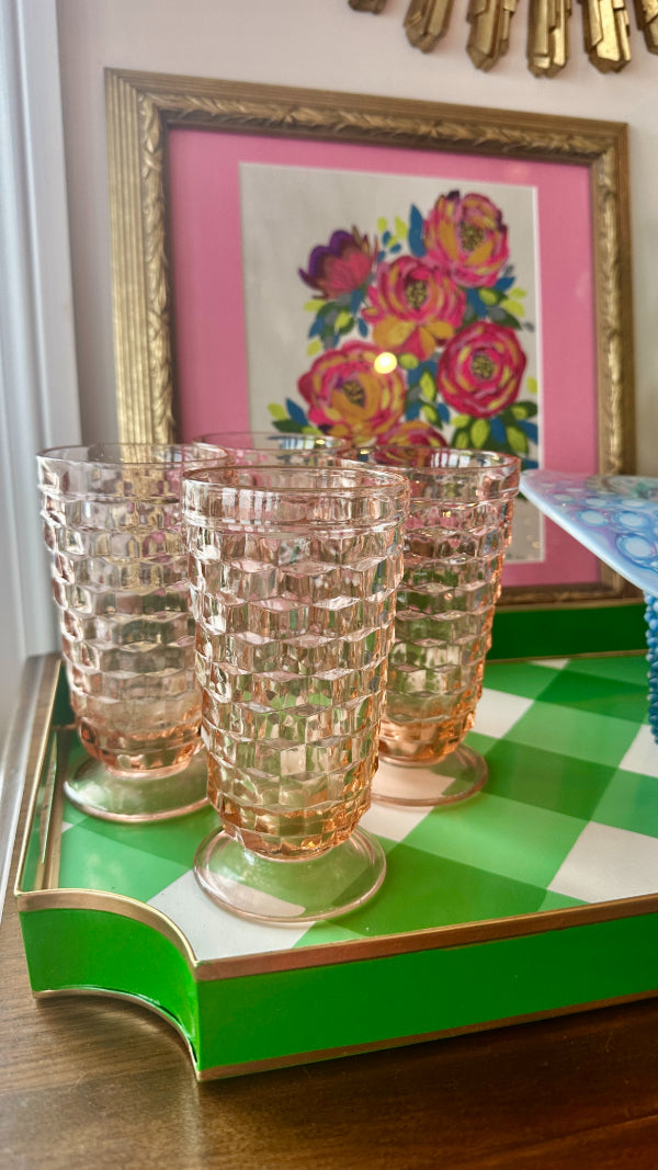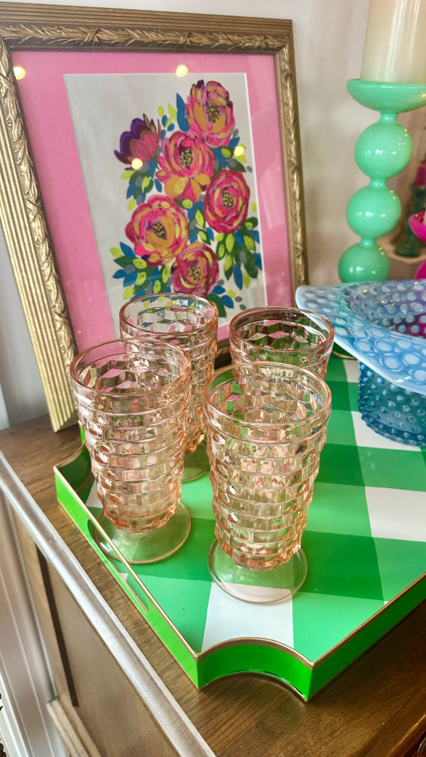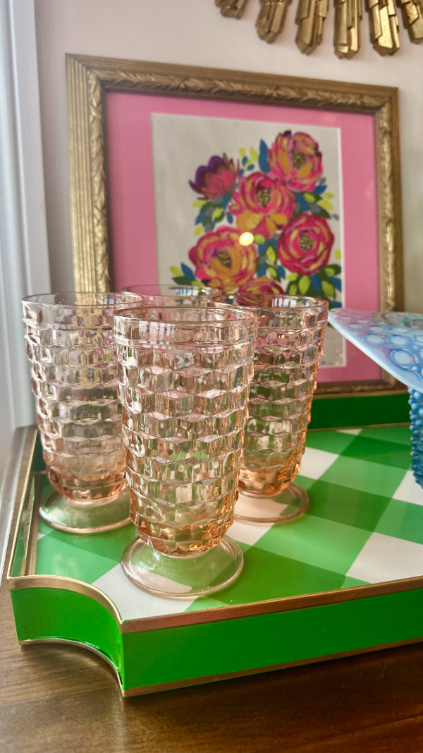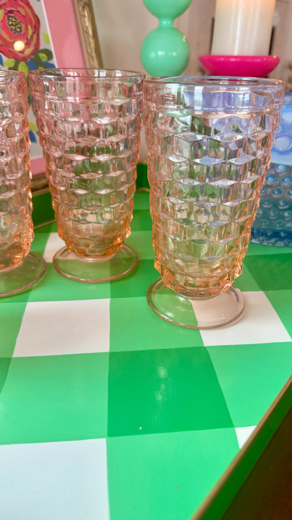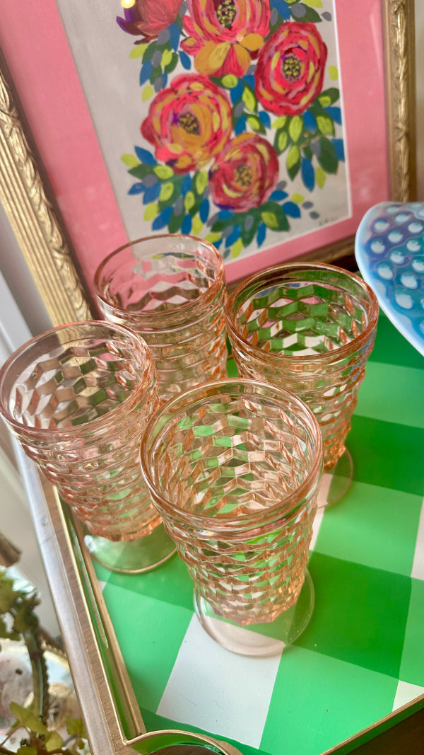 Vintage Ice Tea Glasses, Tumblers, Pink Indiana Depression Glass, Set of 4