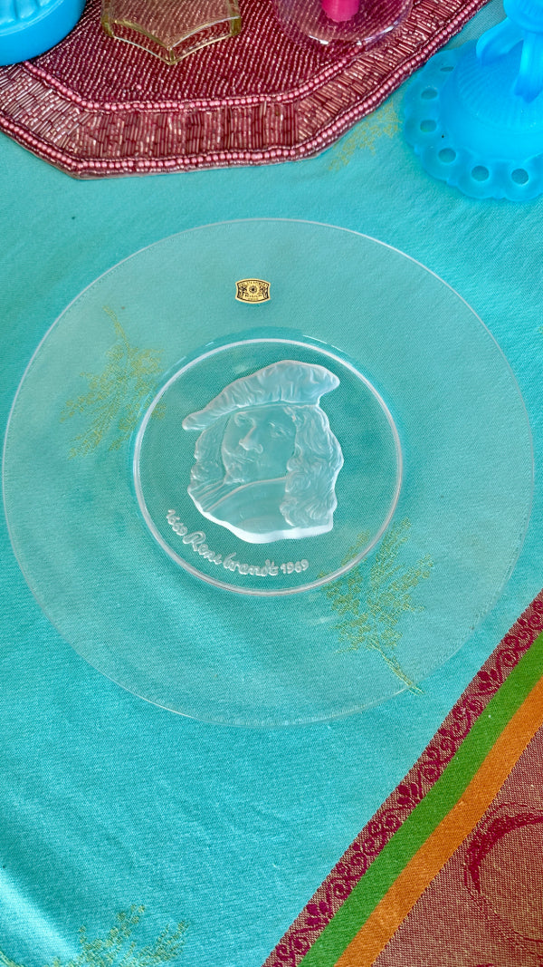 Elevate your space with this RARE Vintage Belgium Crystal Plate from 1969, featuring the iconic Val St. Lambert design. The crafted Rembrandt plates, each showcasing the exceptional craftsmanship and elegance that the Val St. Lambert brand is known for. With their intricate patterns and stunning clarity, these crystal plates make a sophisticated addition to any dining occasion or collector’s display. Each one signed by the artist and are made of heavy fine crystal. Perfect for those who appreciate works of art, this plate offers a glimpse into the artistry of mid-20th century glassmaking, combining beauty and history in every piece. Retails for $75 - $125 a plate.