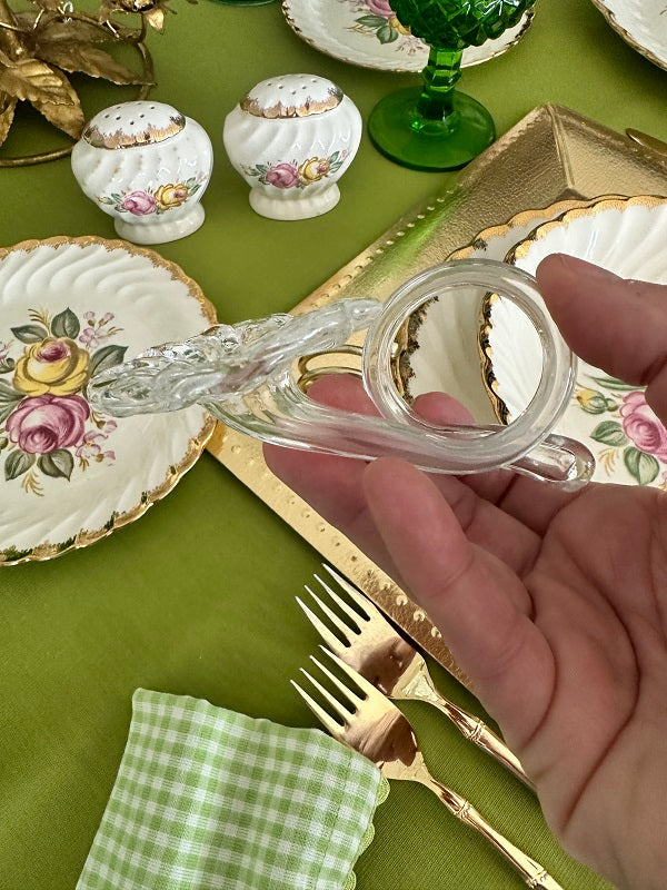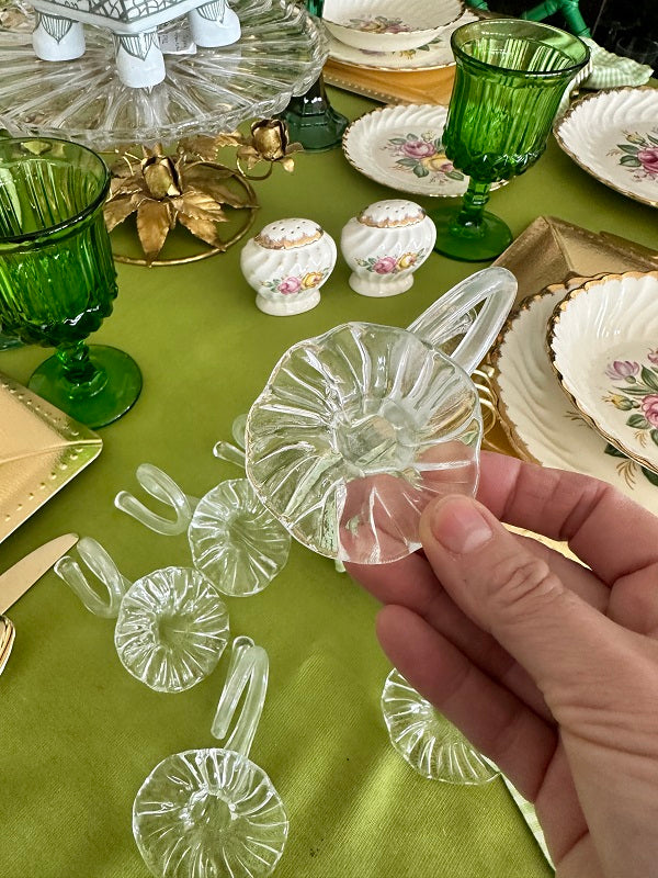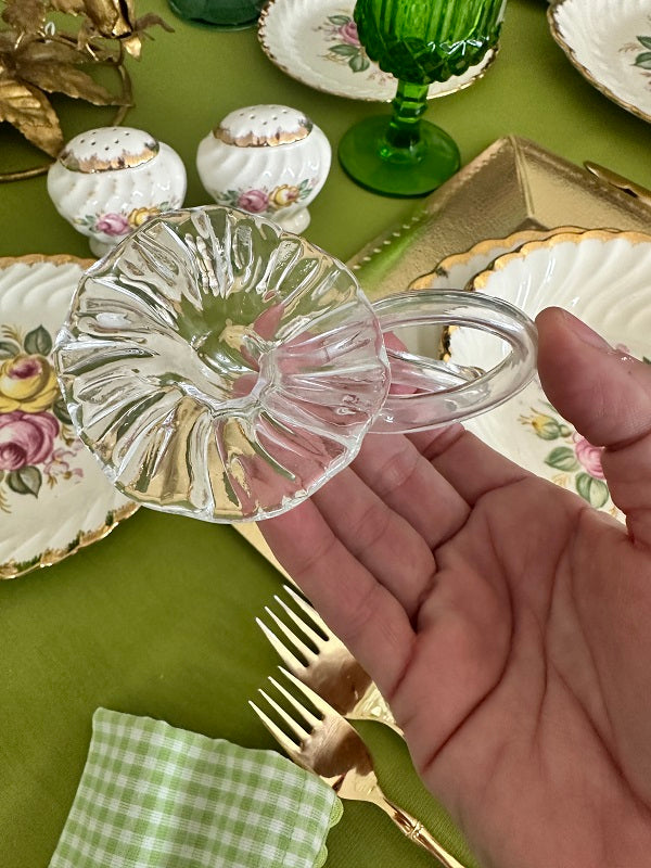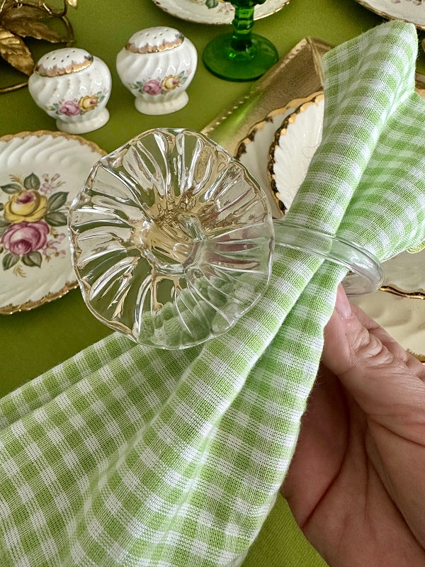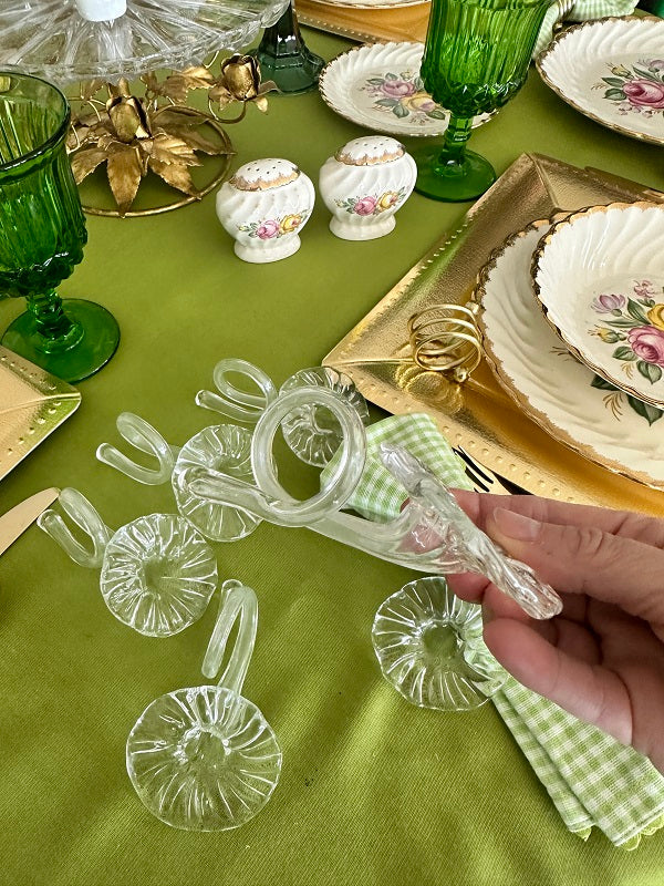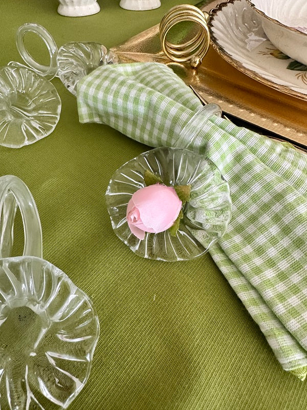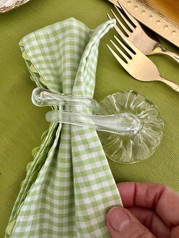 What a unique way to add fresh flowers to your tablescape. These gorgeous glass napkin rings are in the shape of a lily flower. You can add a little water and a fresh bloom to each one for a dressed up look. Perfect for your Easter dinner or Spring celebrations, Great vintage condition.