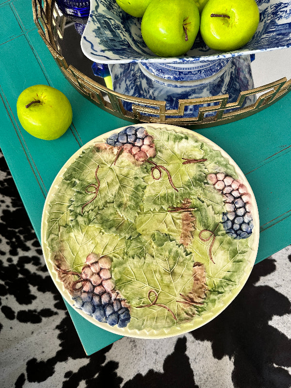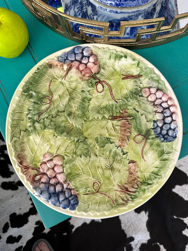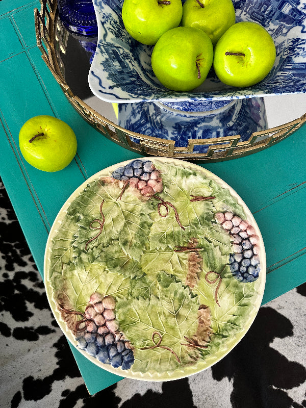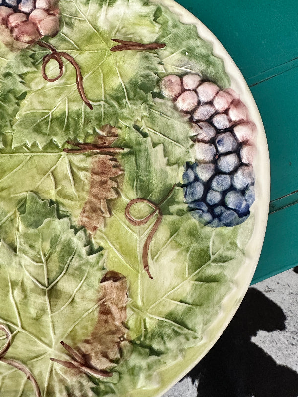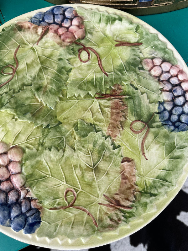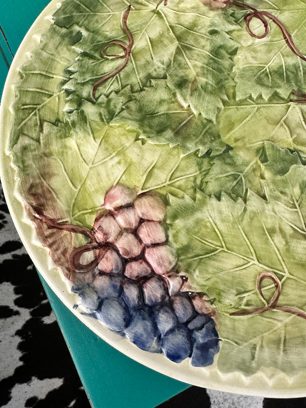 Vintage Platter Leaf and Grape Design, Round , Portugal