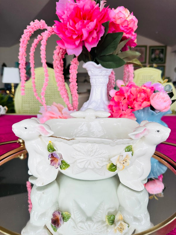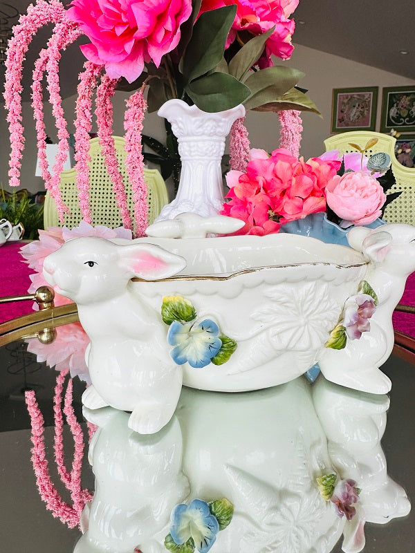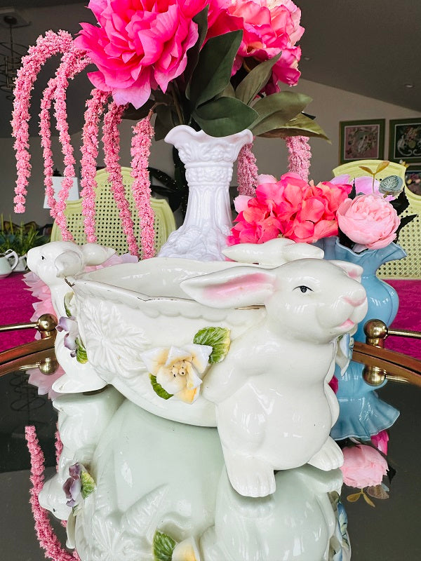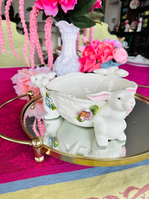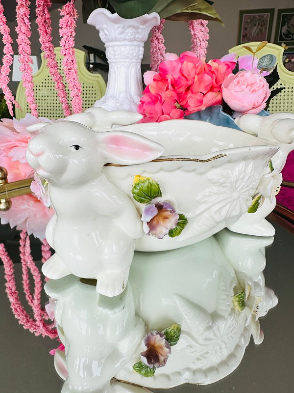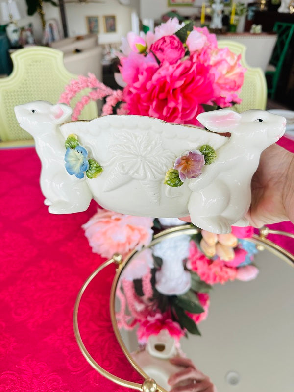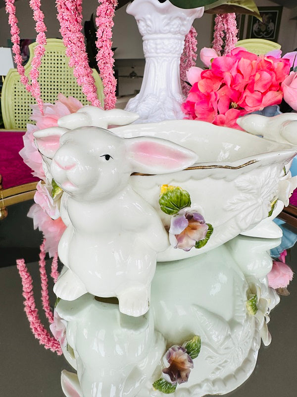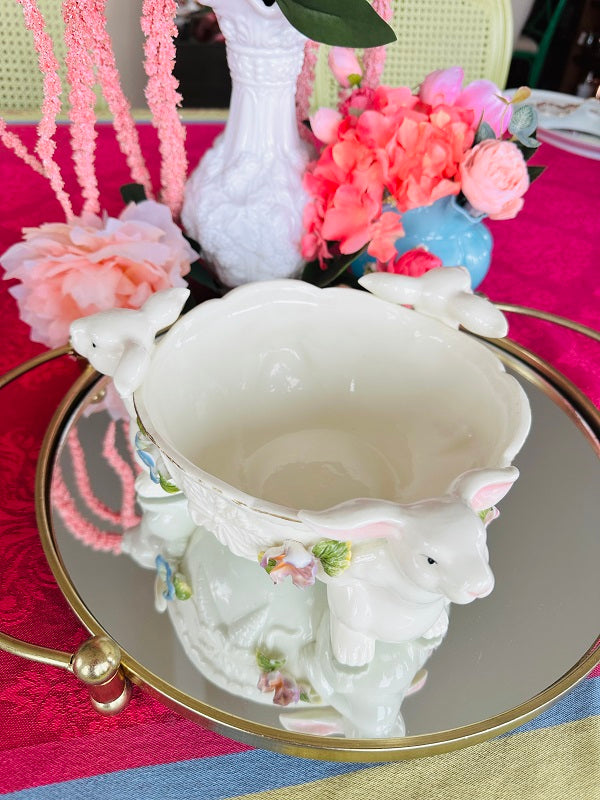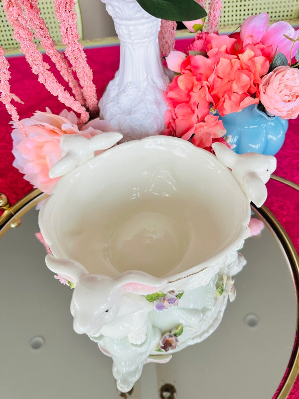 Vintage Bunny Bowl, Planter, Porcelain Capodimonte