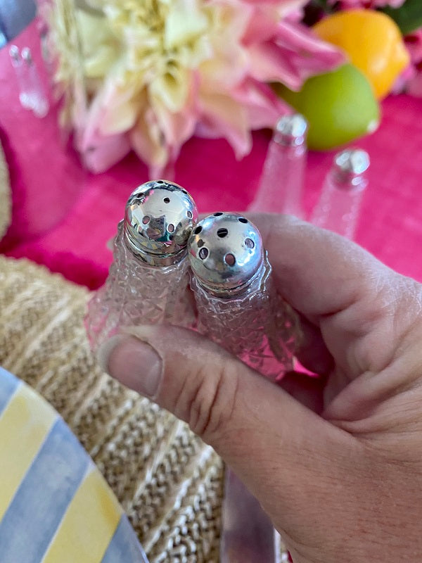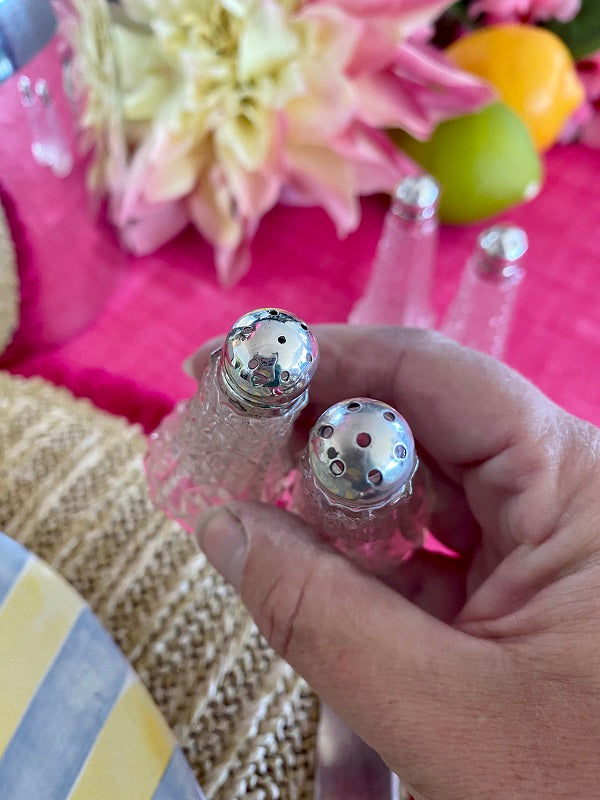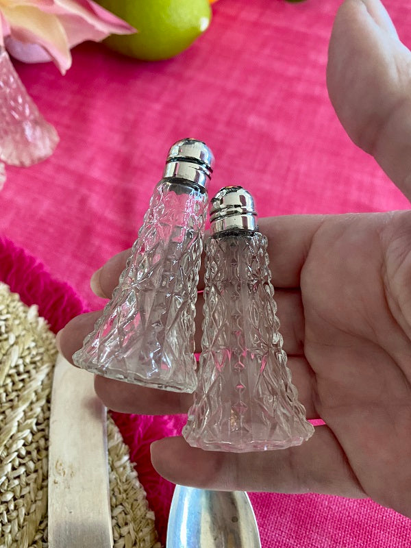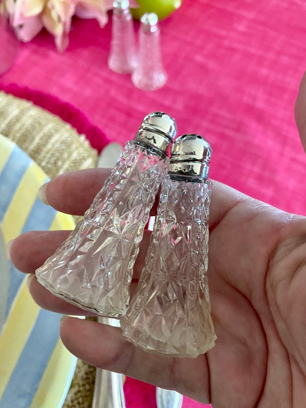 Vintage Salt and Pepper Shakers Crystal and Sterling Silver