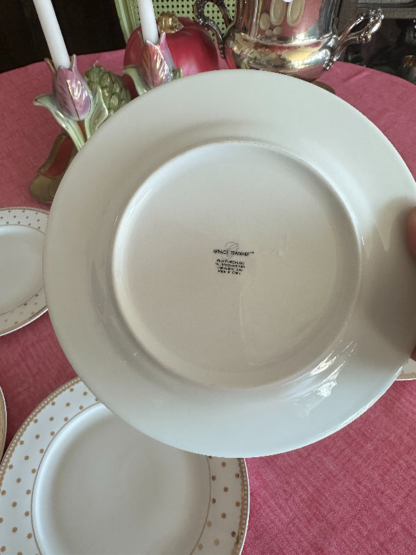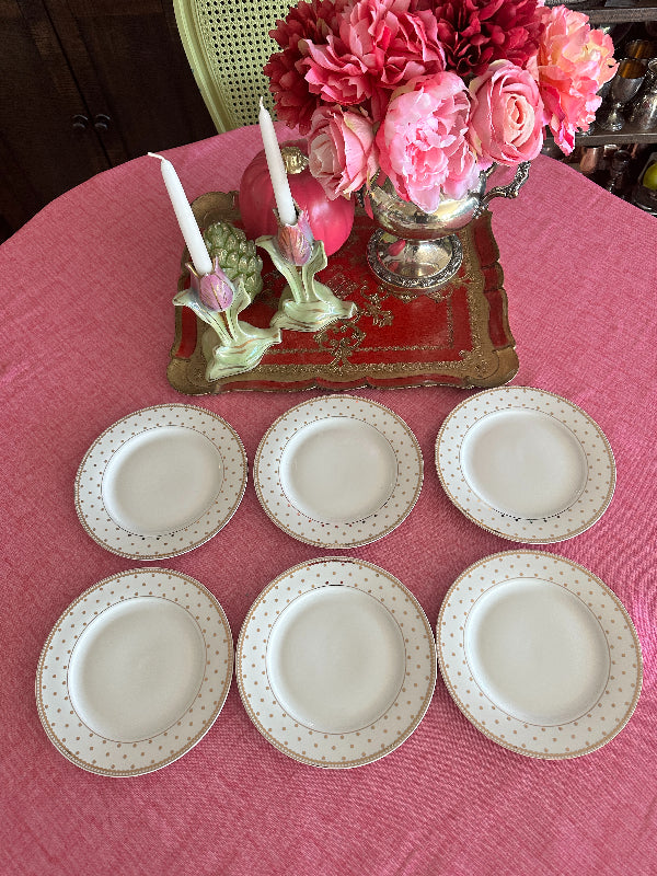 Salad Plates, Gold Dot on Cream Background, Set of 6