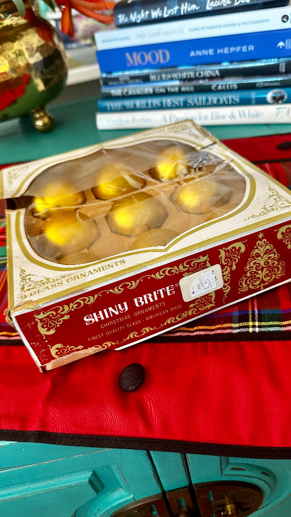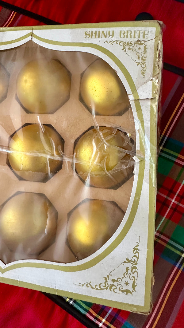 Vintage Shiny Brite Ornaments -Gold in Original Box