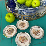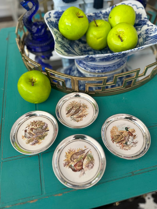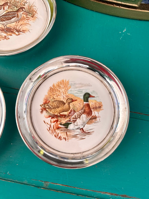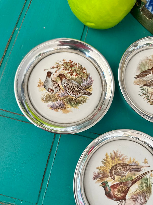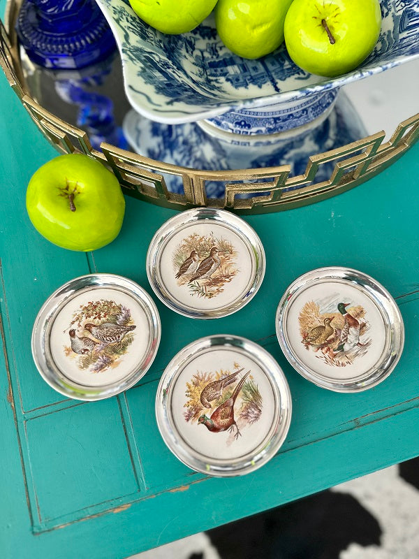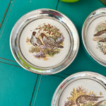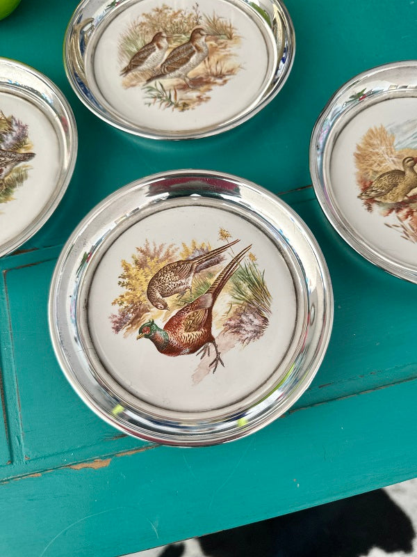 Silver Bird Coasters, Taunton Silversmiths, Porcelain, Stamped on Bottom