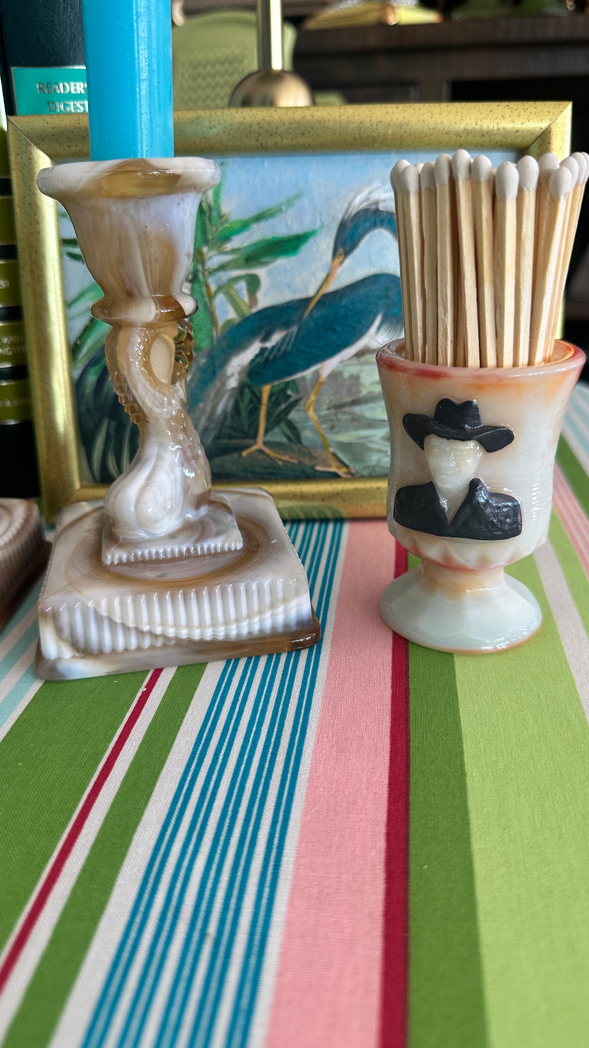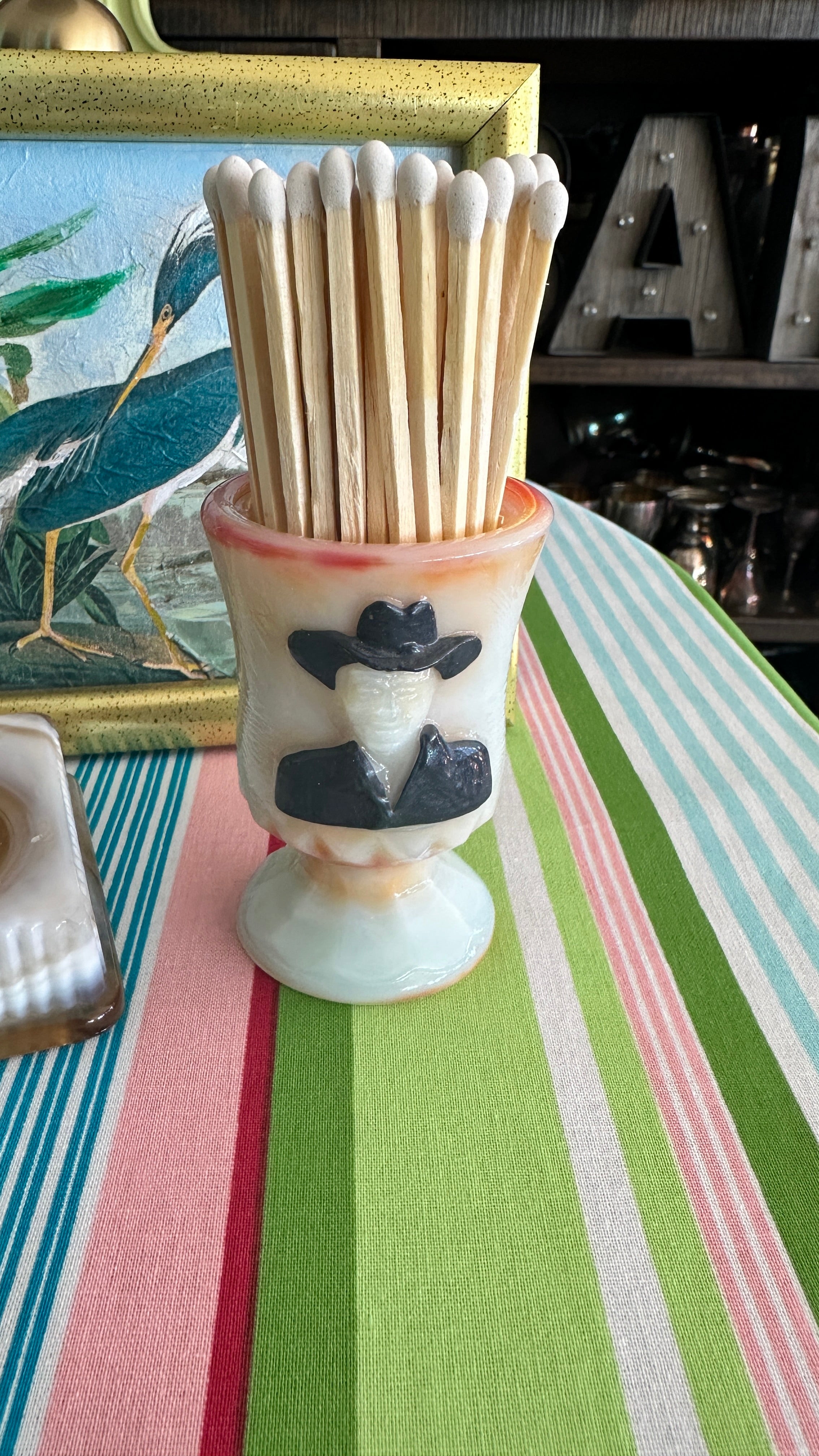 Slag Glass Boyd Toothpick holder Hoppy, Hopalong Cassidy-Orange, Cream Black Figure, Numbered 950/1000