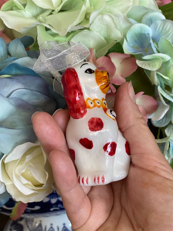 Grandmillennial Chinoiserie Staffordshire dog Christmas ornament rust and white