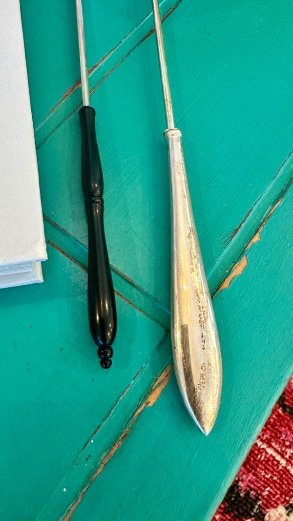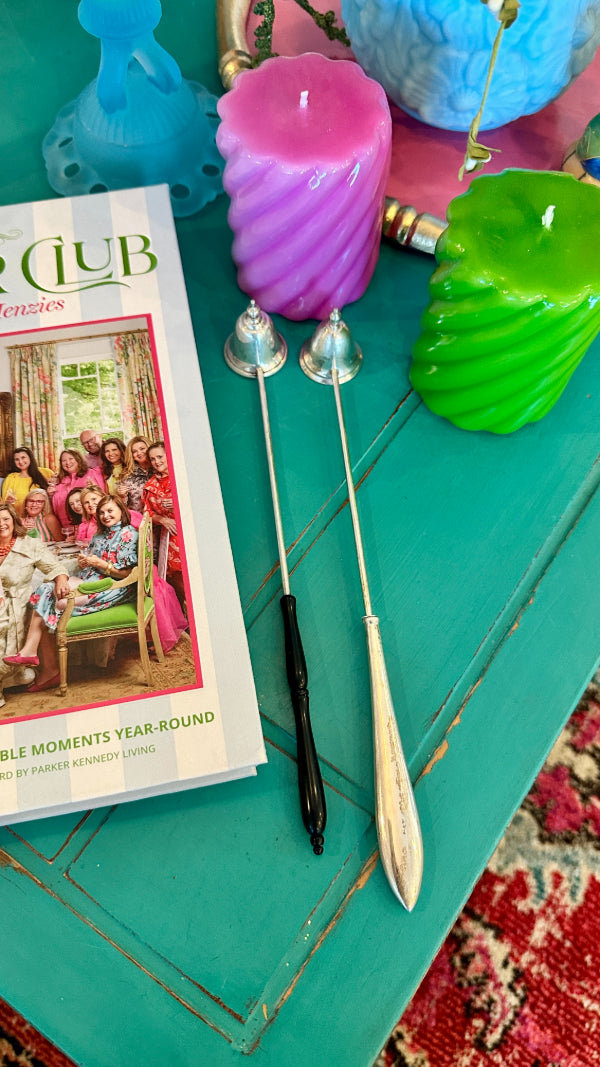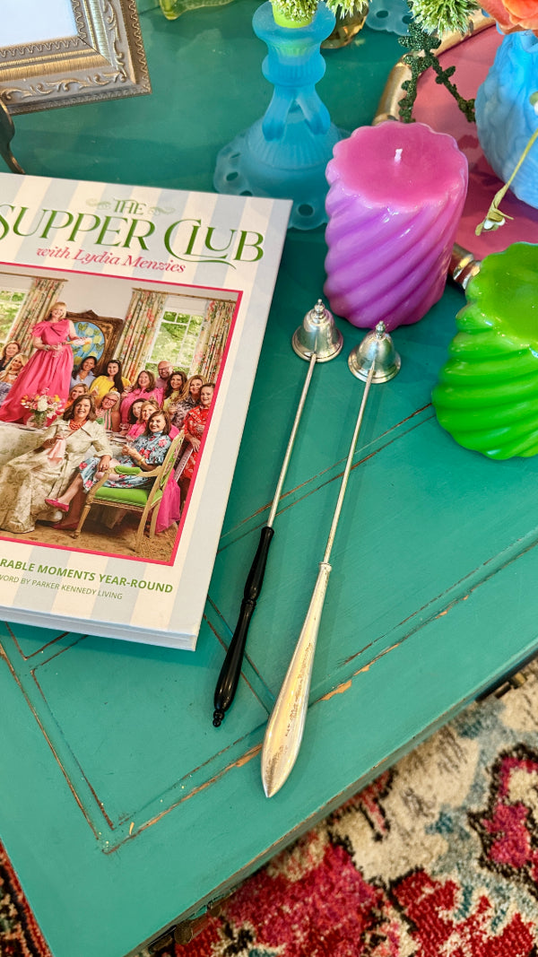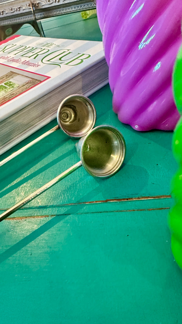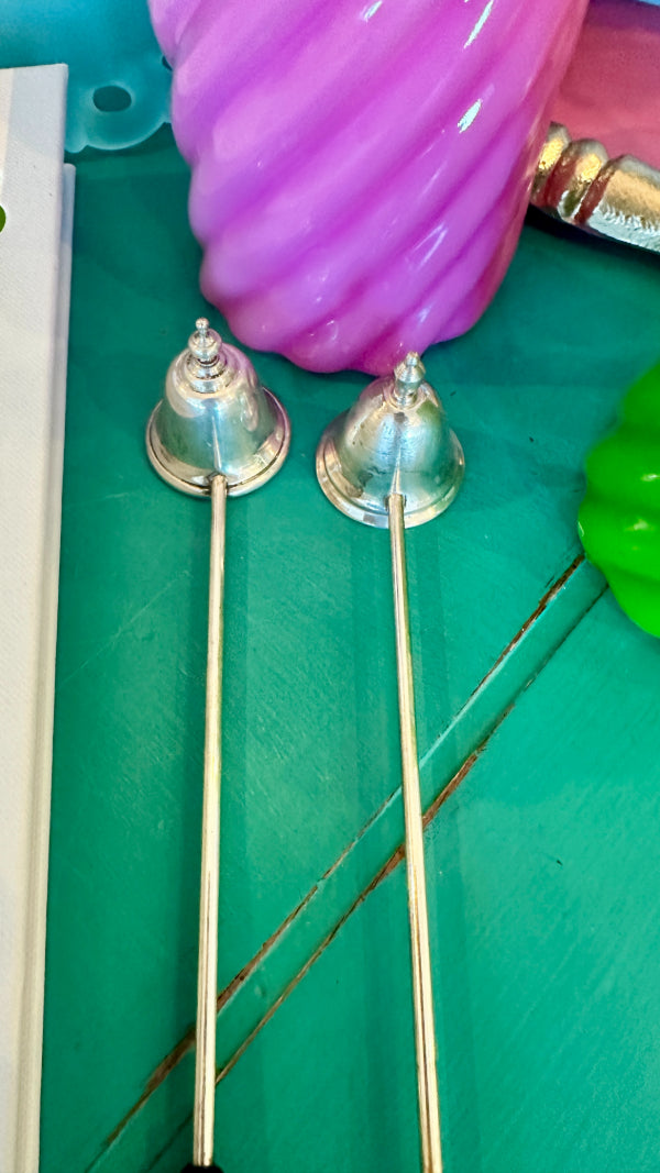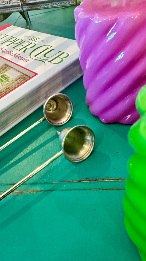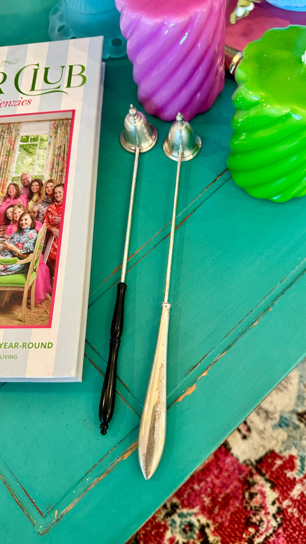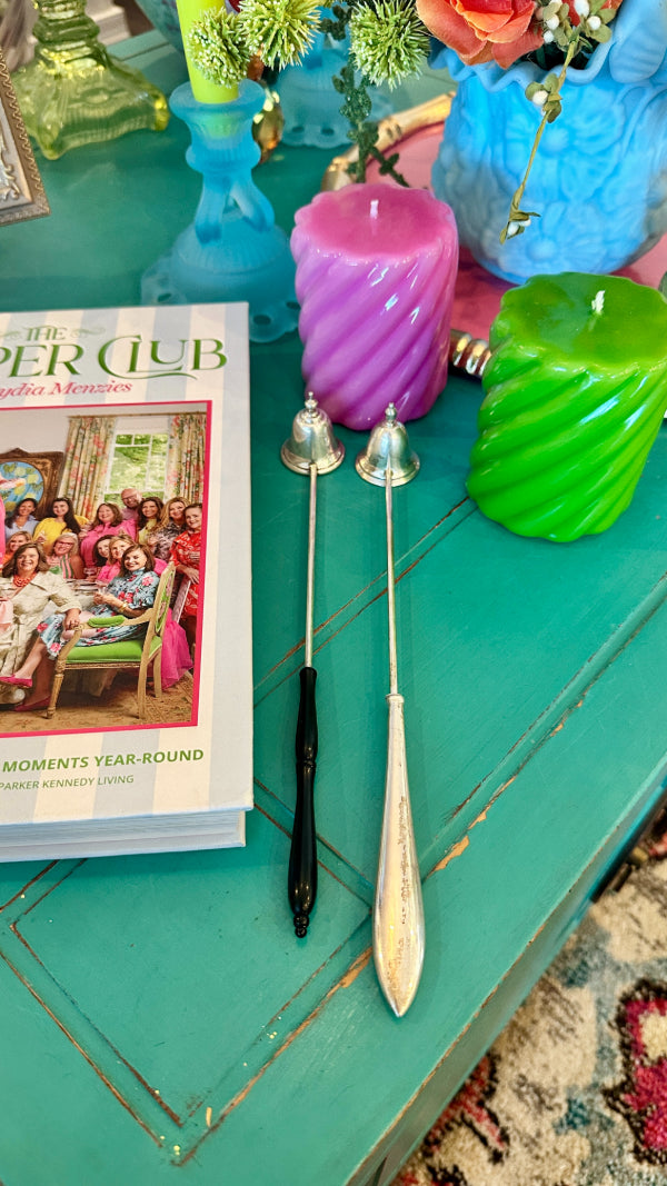 Add a touch of elegance to your candlelit moments with this beautifully crafted sterling silver candle snuffer (two to choose from). Designed to effortlessly extinguish your candles with grace, this piece features a sleek, classic design with a polished finish that enhances its sophisticated appeal. Perfect for collectors or those who appreciate fine tableware, this snuffer is both a functional and decorative addition to any home. Whether used in your own home or given as a thoughtful gift, it’s a timeless accessory that elevates the ambiance of any space.