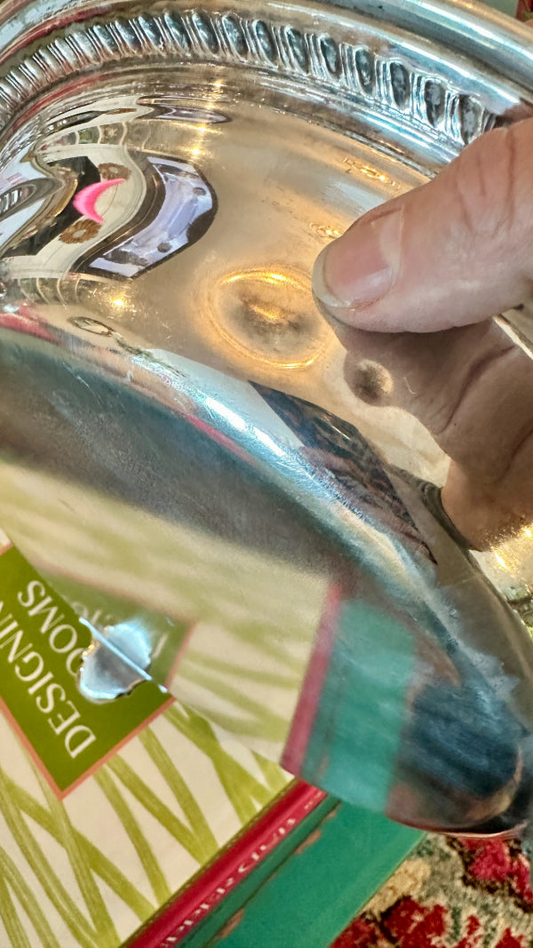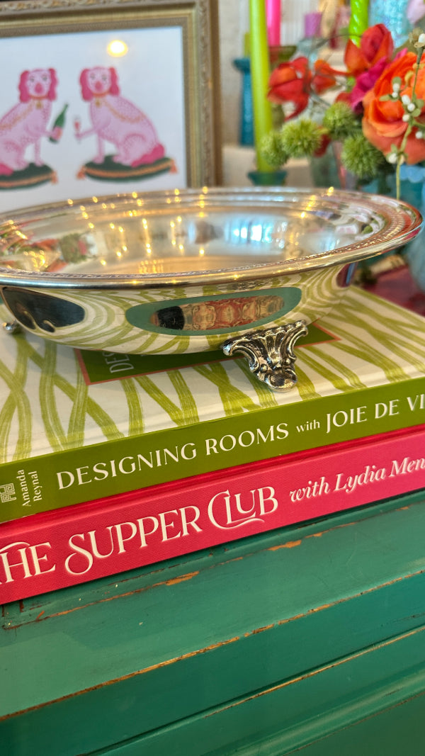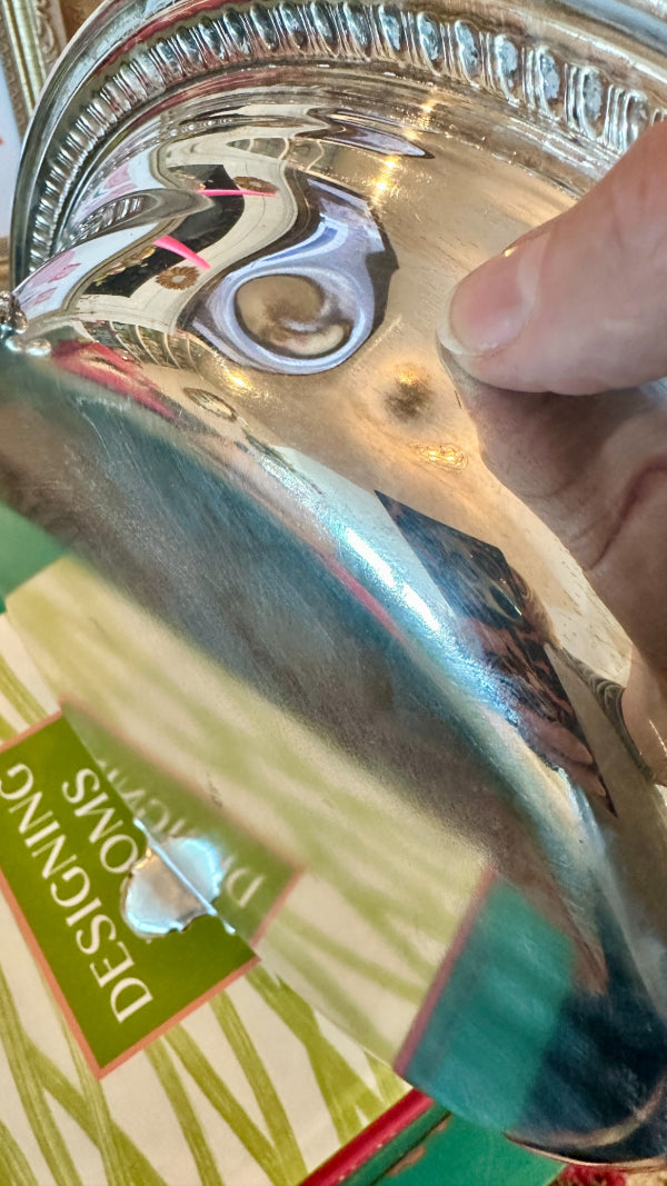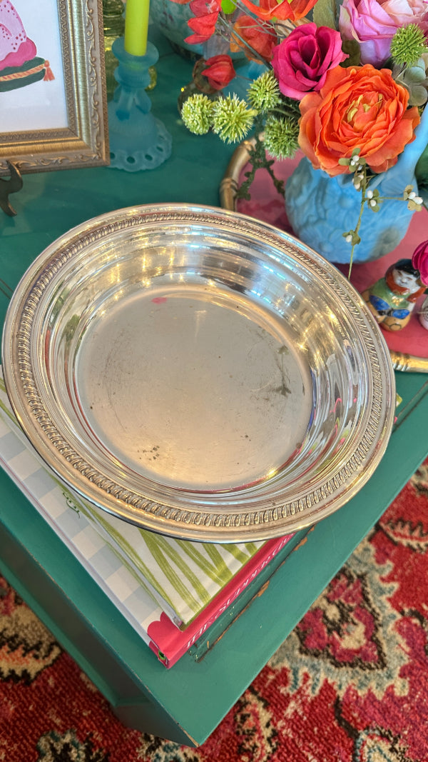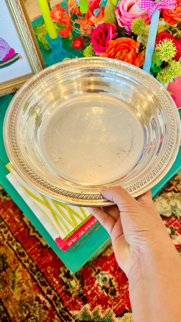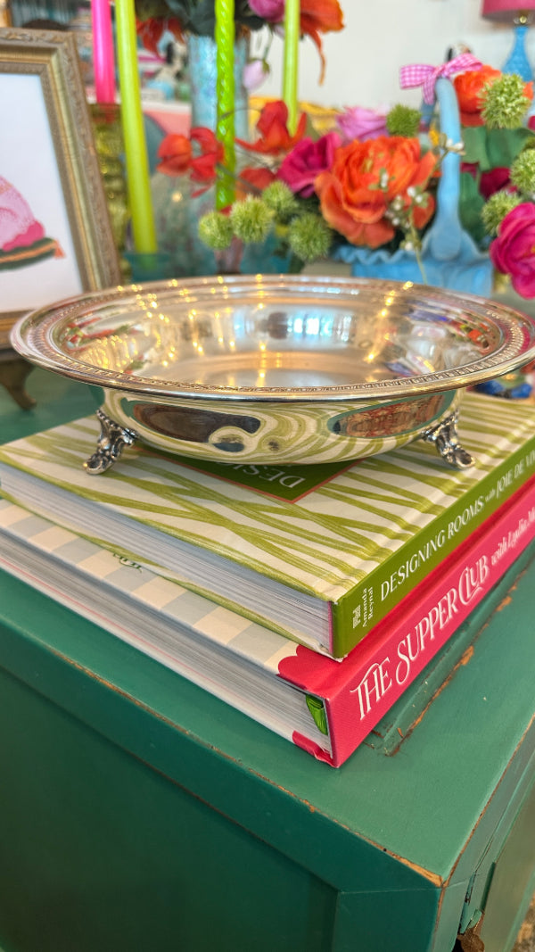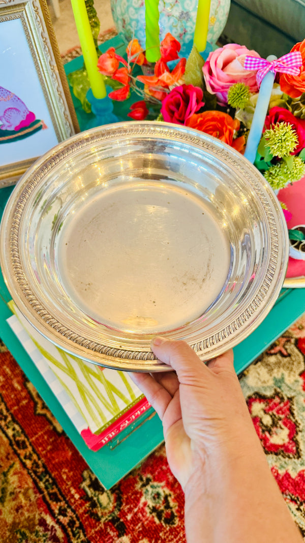 Elevate your dining table with this elegant sterling silver footed serving bowl, stamped for authenticity. With its graceful, elevated base and gleaming silver finish, this bowl is a perfect blend of functionality and style. Ideal for serving fruits, salads, or special dishes, it adds a refined touch to any occasion. The footed design not only enhances its aesthetic appeal but also makes it a standout piece for display. Whether used for everyday meals or formal gatherings, this timeless bowl exudes sophistication and quality. (Slight imperfections inside)
