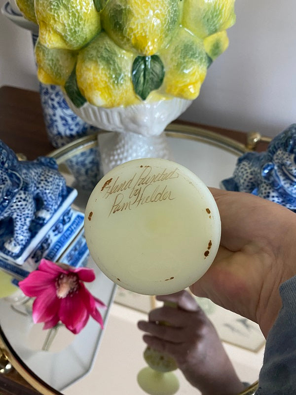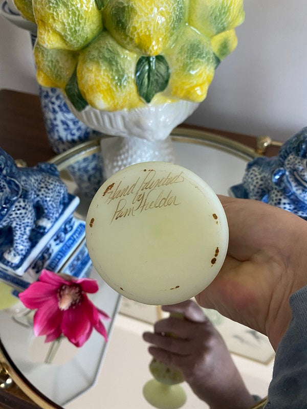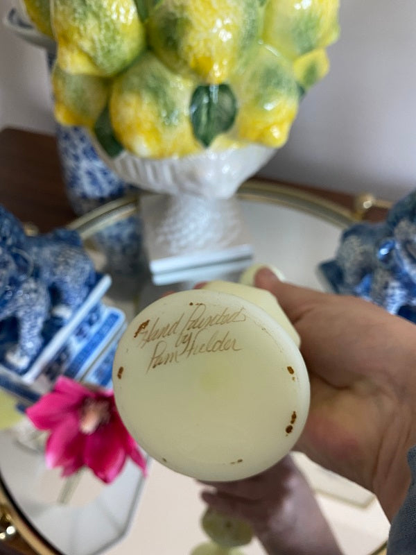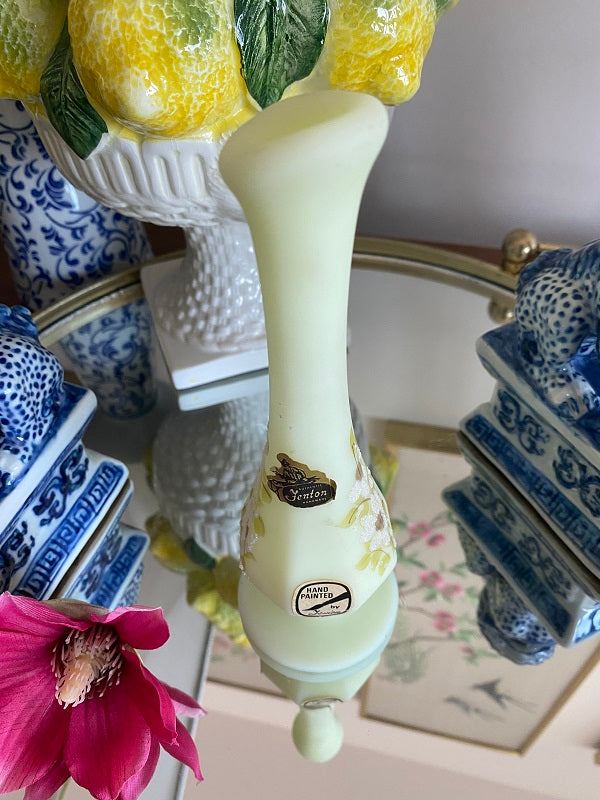 Vintage Vase, Hand Painted Fenton glass yellow custard, signed by the artist