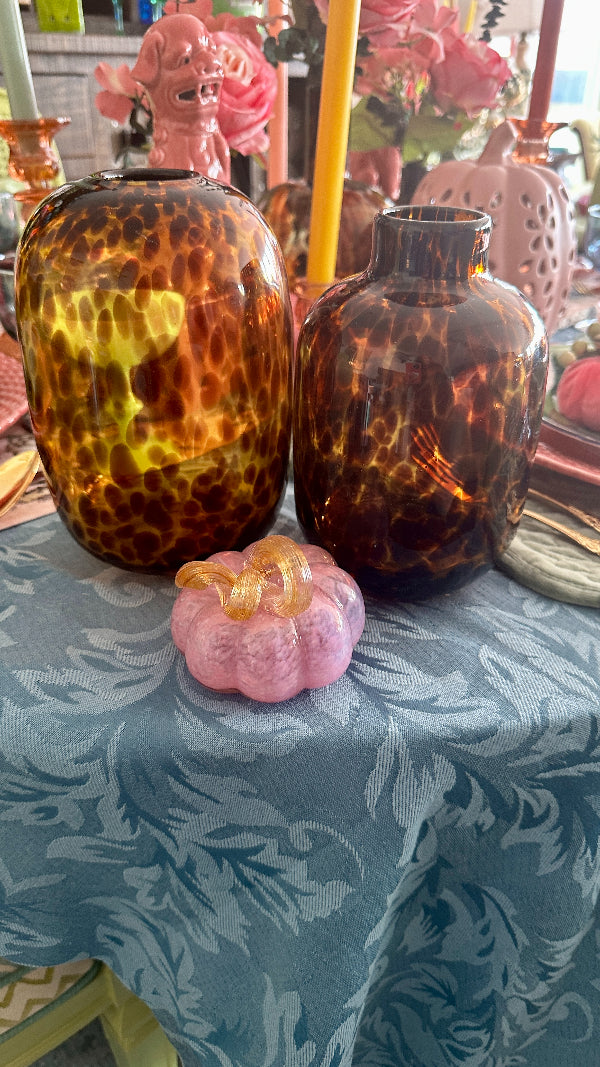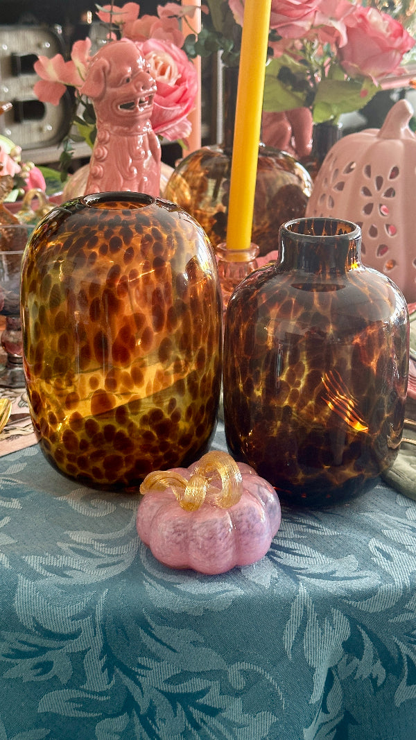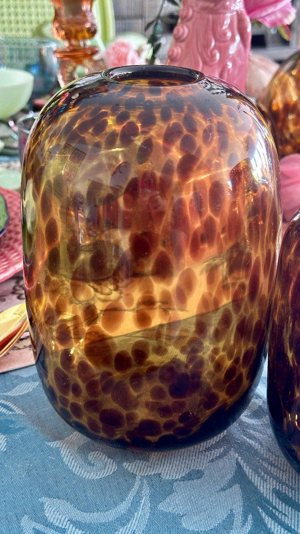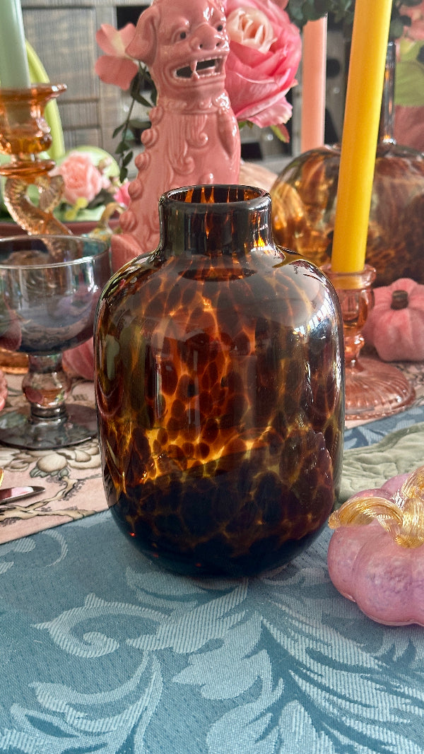 Add a touch of sophistication to your décor with this Tortoise Shell Vase. Featuring a distinctive, elegant pattern reminiscent of tortoise shell, this vase combines classic design with modern style. These tortoise shell vases are new but have that vintage flare we love! Ideal for showcasing flowers or as a standalone decorative piece, it brings a unique and timeless charm to any room.