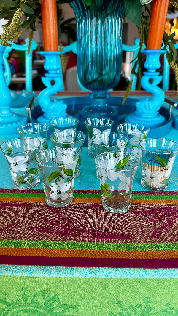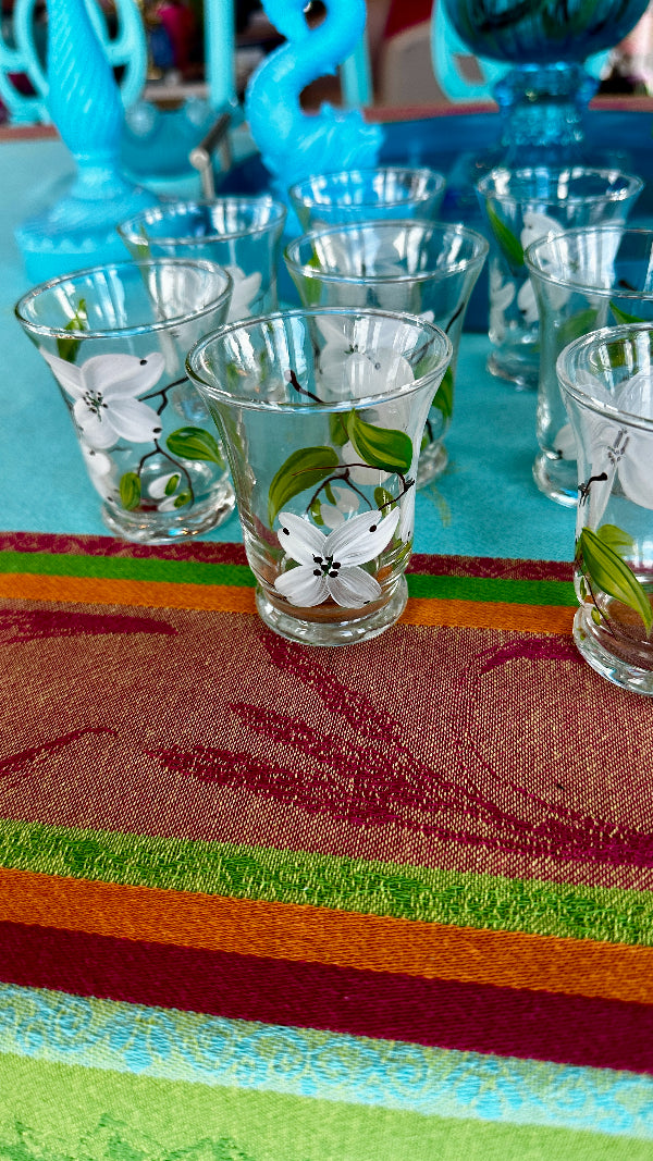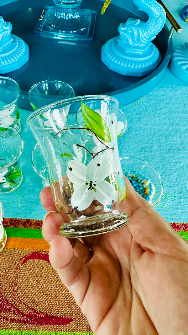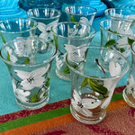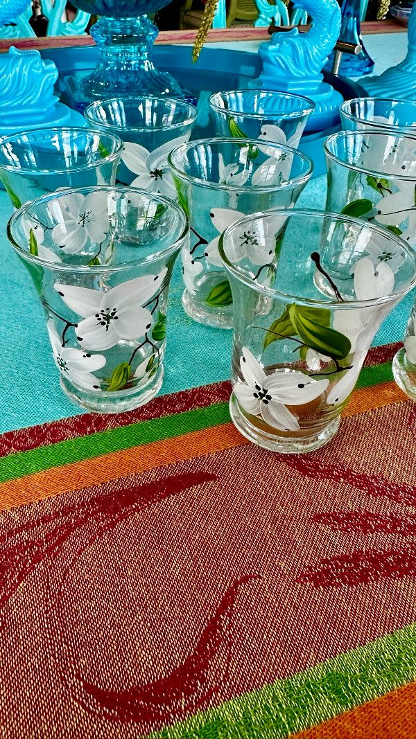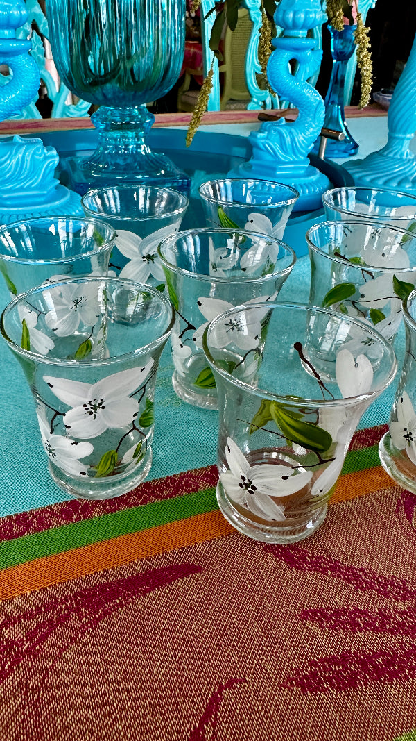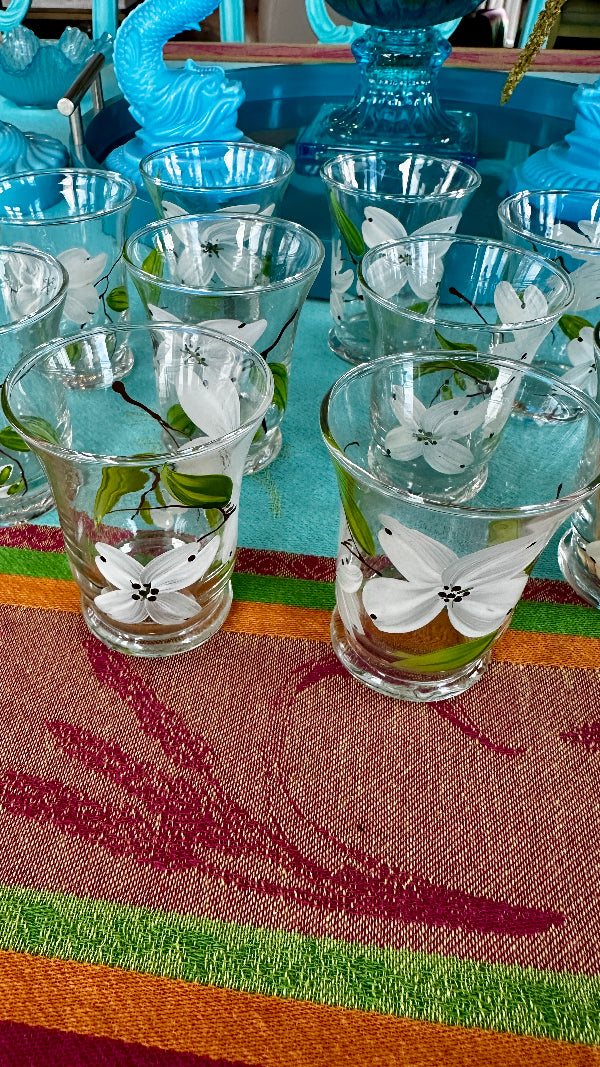 Vintage Anchor Hocking Juice Glasses, Hand Painted Dogwood Motif Set of 10