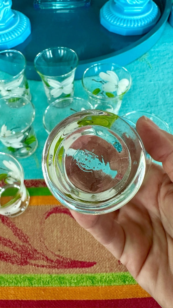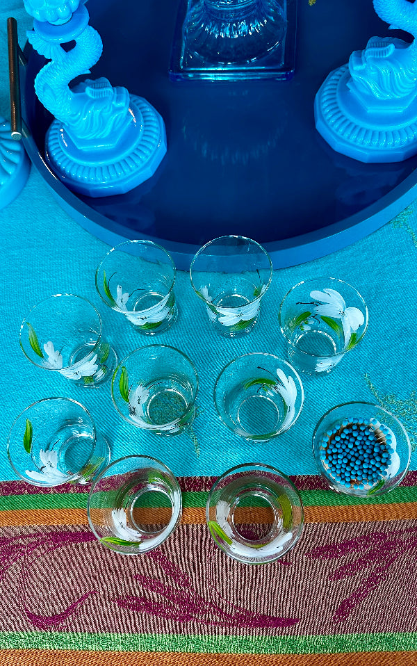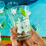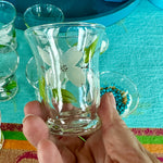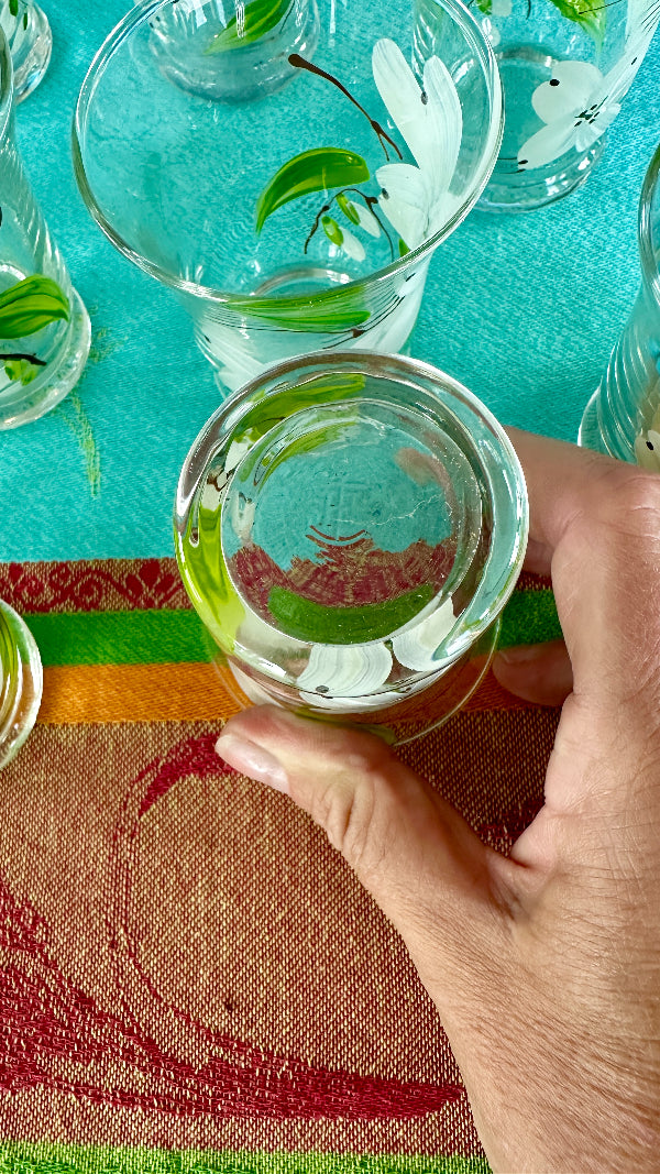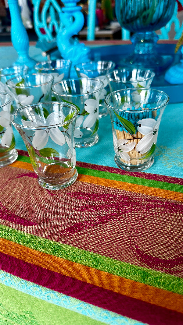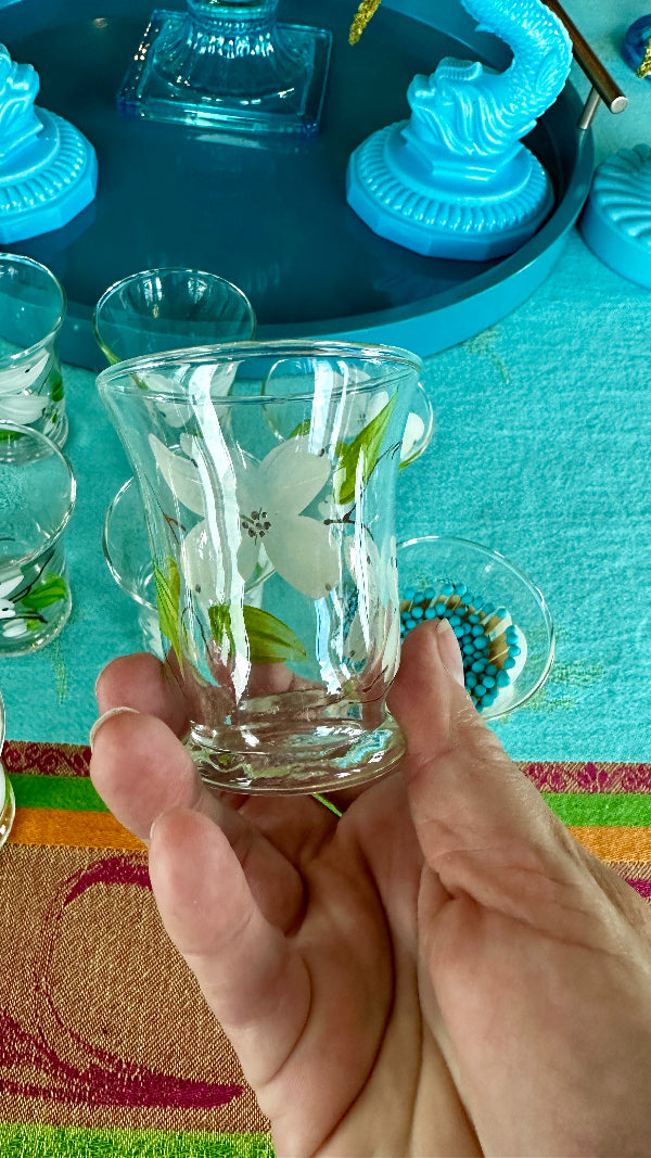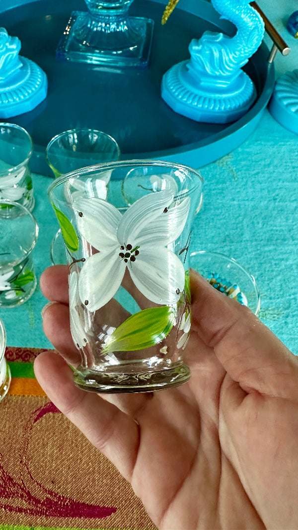 Vintage Anchor Hocking Juice Glasses, Hand Painted Dogwood Motif Set of 10