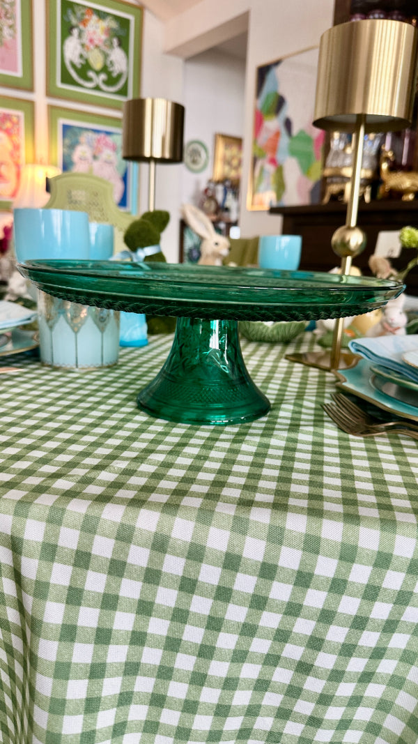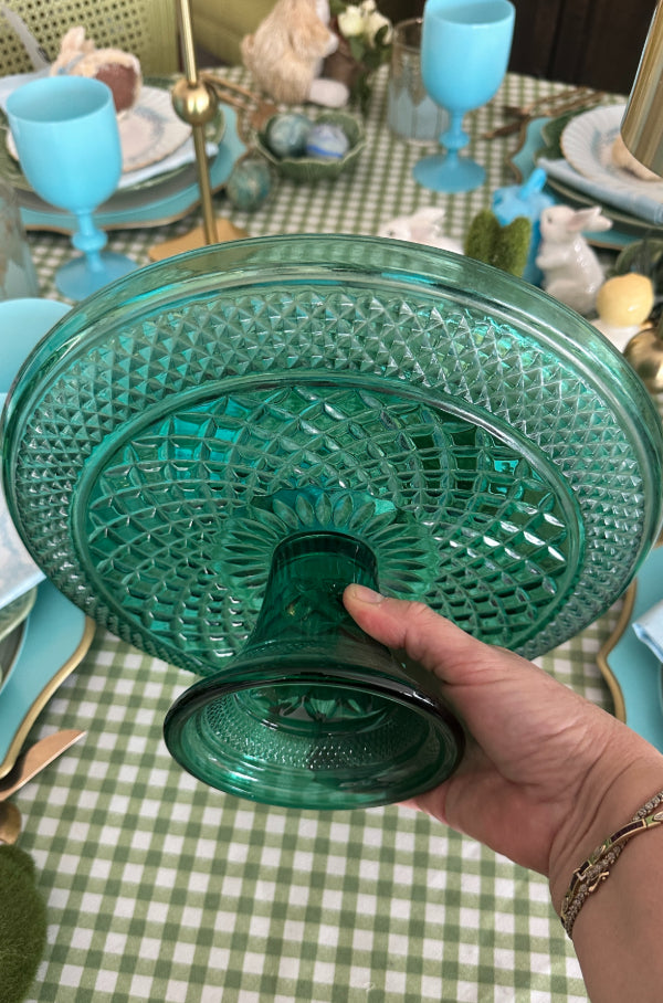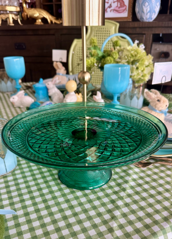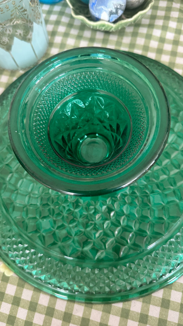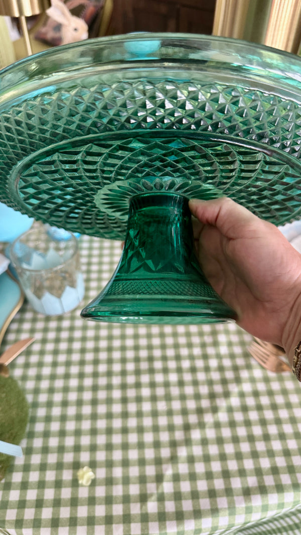 Vintage Cake Stand, Plate, Anchor Hocking Wexford Green Glass