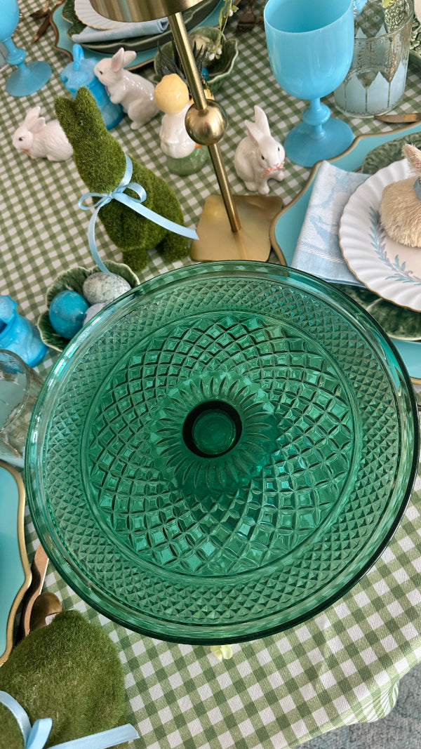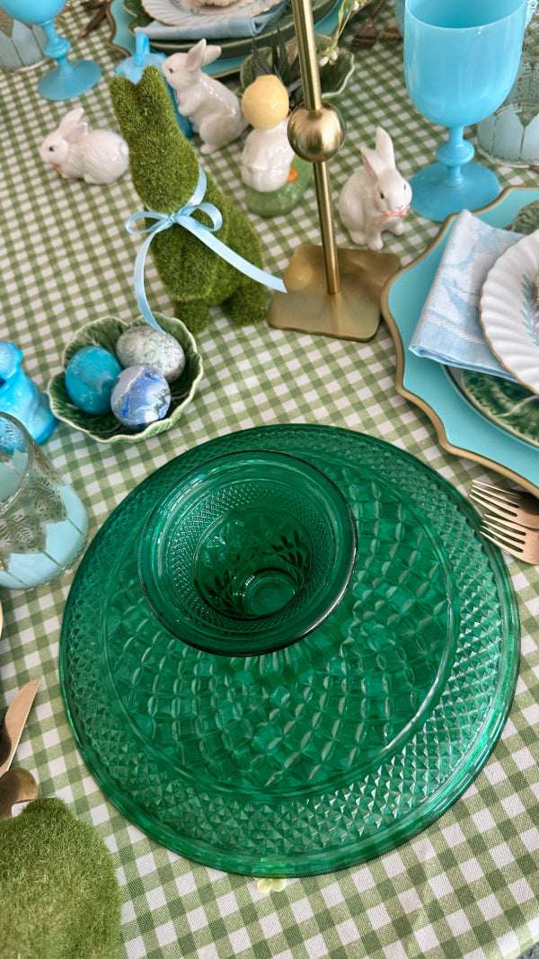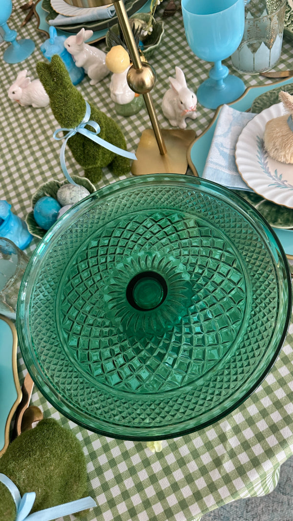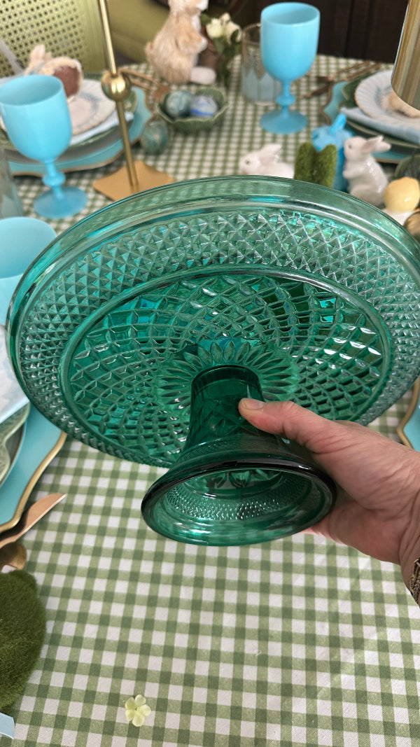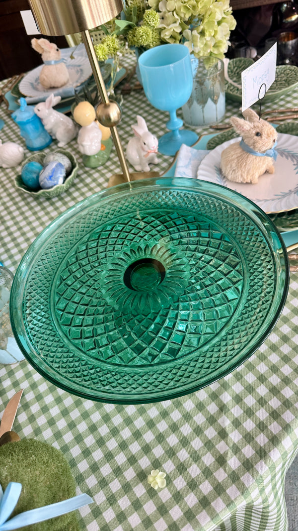 Vintage Cake Stand, Plate, Anchor Hocking Wexford Green Glass