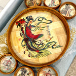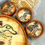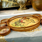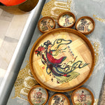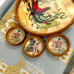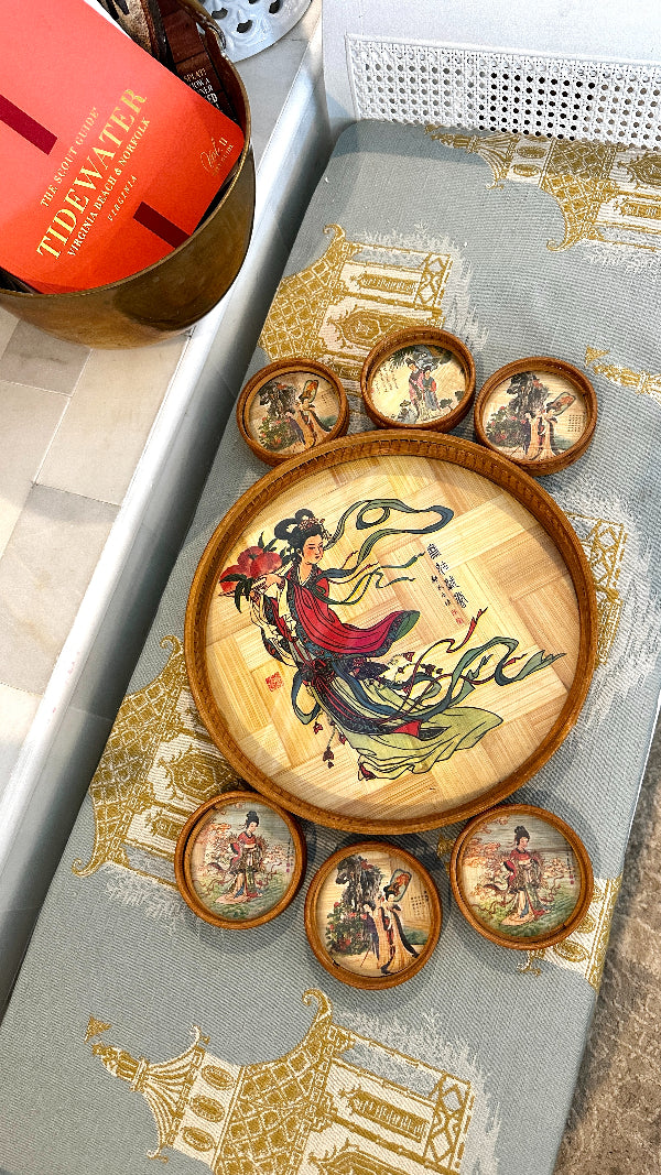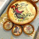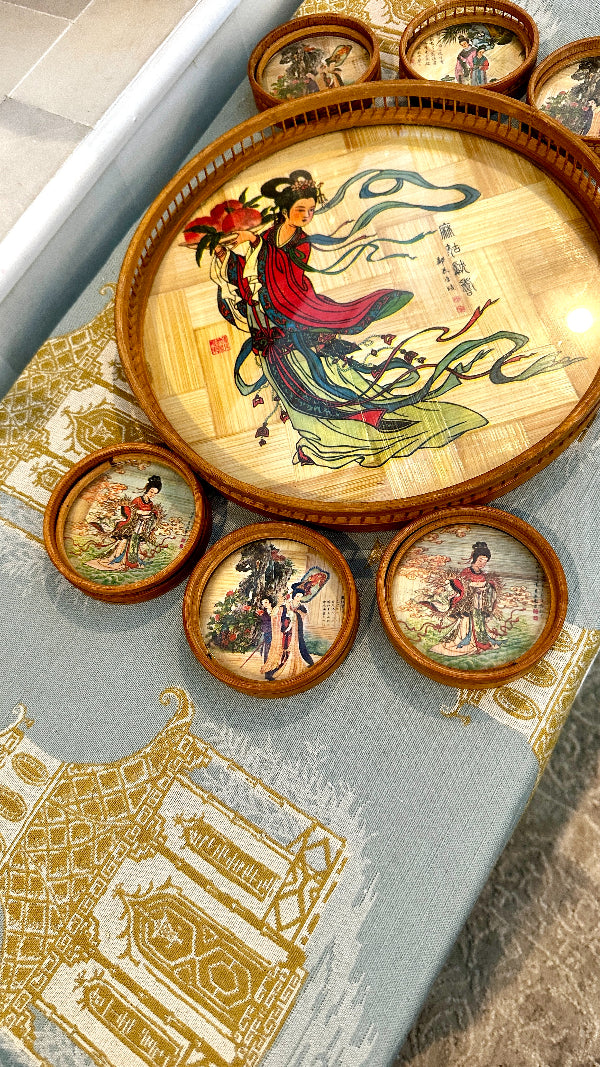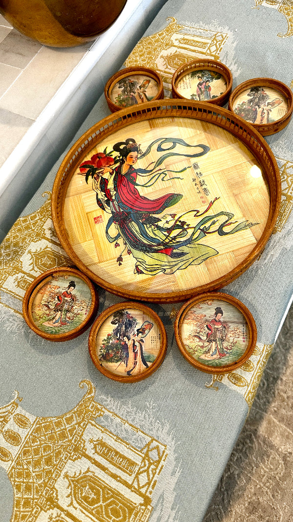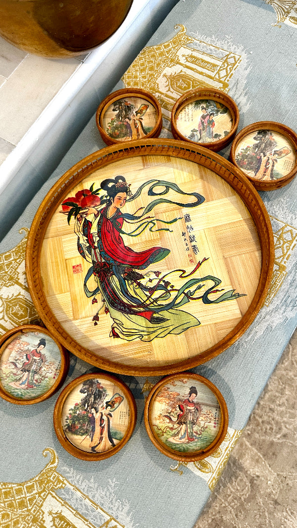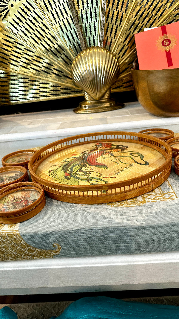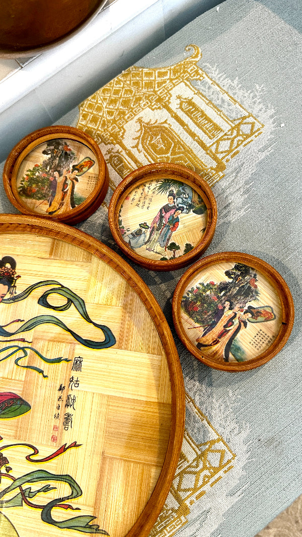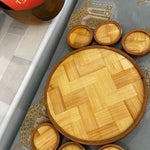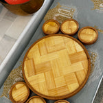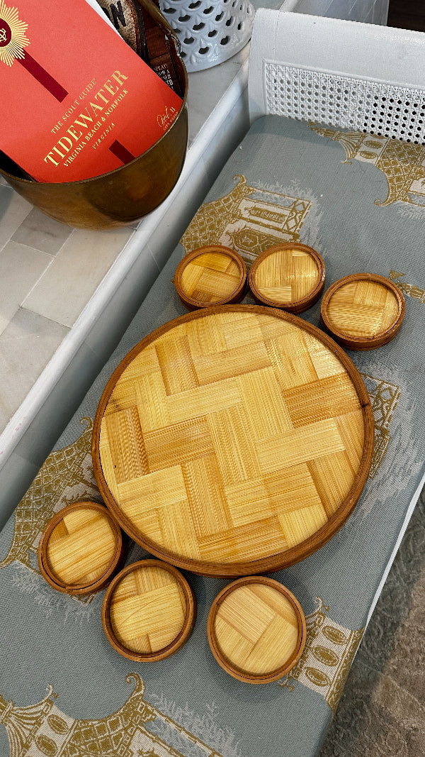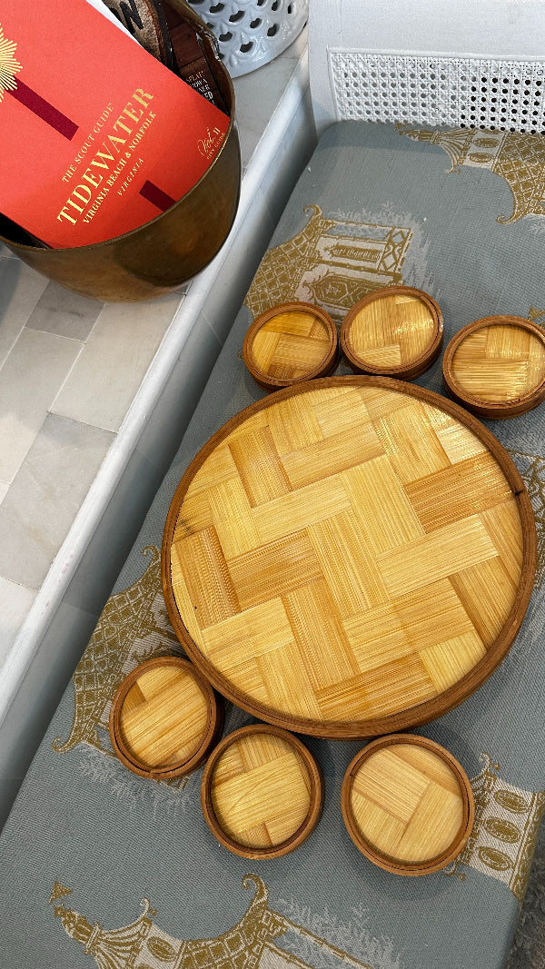 Vintage Bamboo Serving Tray with Coasters, 7 Piece Set