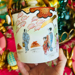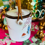 Uncover the charm of our Japanese Porcelain Vintage Biscuit Jar. This delightful piece features a basket weave handle, adding a touch of rustic elegance to its design. This lidded jar not only serves as a functional storage solution but also stands as a testament to the craftsmanship of Japanese porcelain artisans. While it bears slight paint loss, its vintage appeal only enhances its character, telling a story of years gone by. This jar is sure to evoke memories and spark conversations.