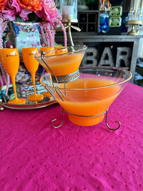 Vintage Blendo Chip and Dip Bowl Set, Orange, Mid Century Modern, MCM