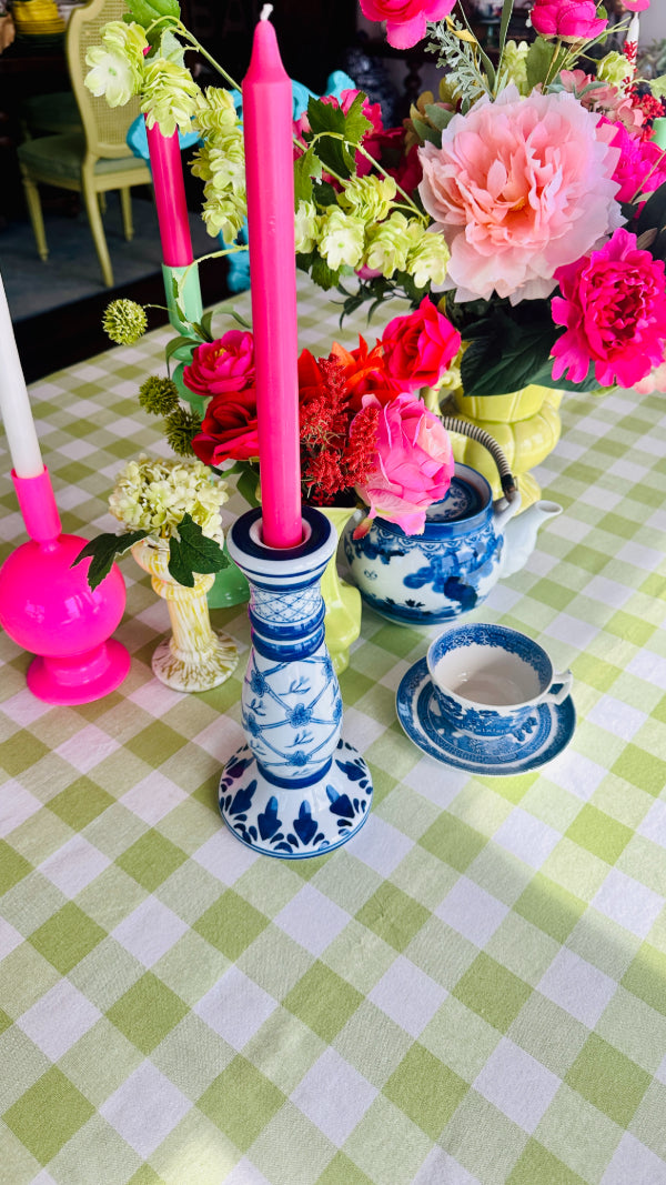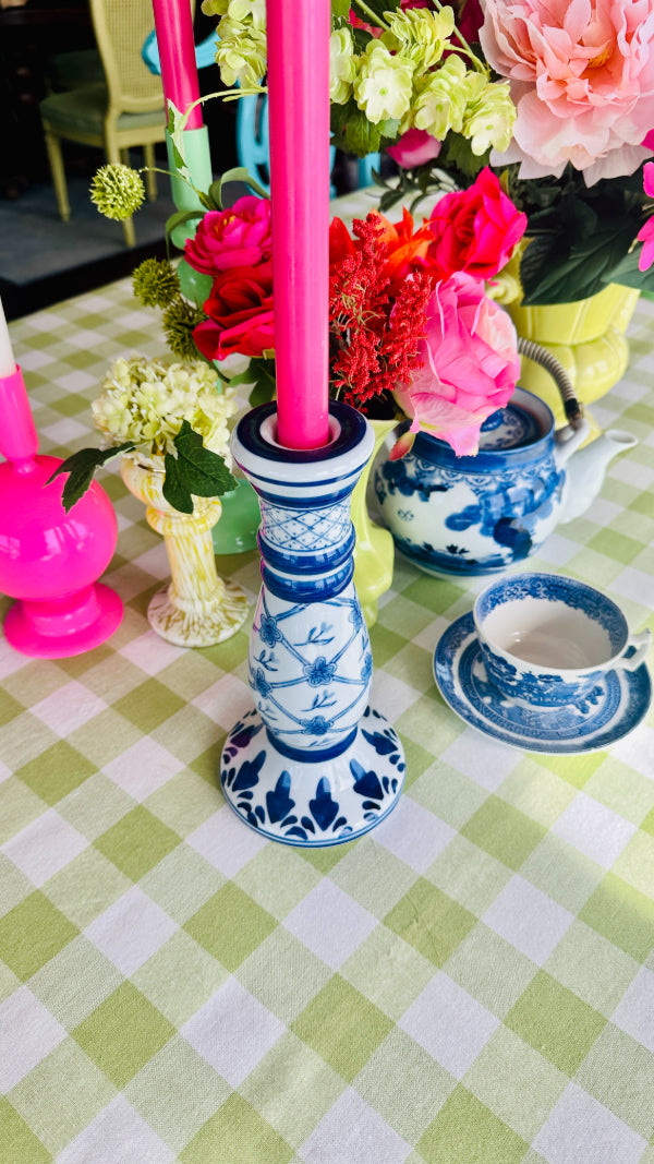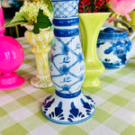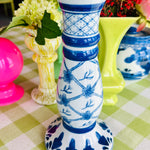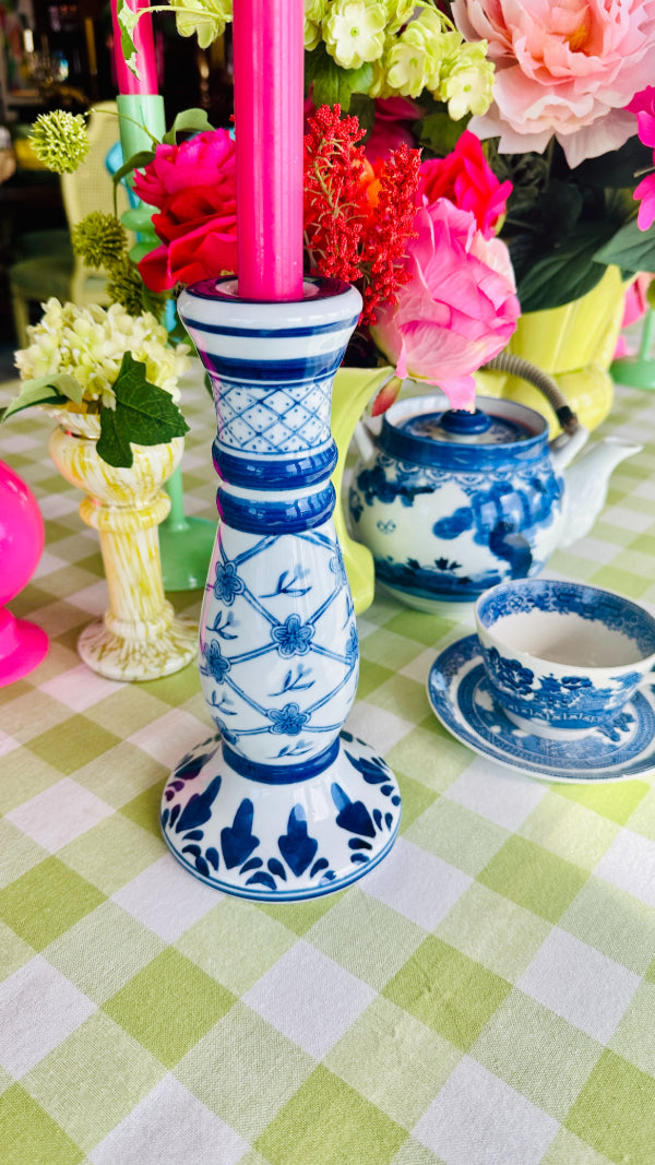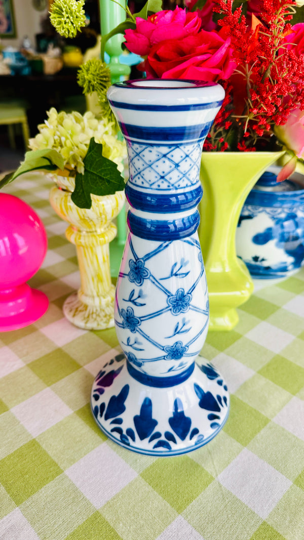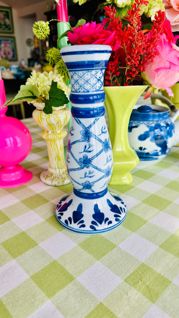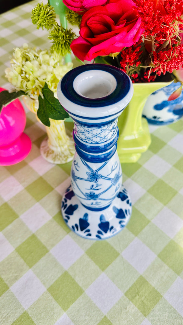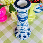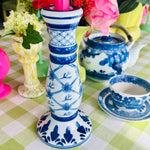 Add a touch of timeless elegance to your home with this vintage blue and white candle holder. Crafted with intricate details and a classic blue-and-white design, this piece brings both style and functionality to your space. Ideal for creating a cozy ambiance or as a decorative accent, the candle holder complements any décor, from traditional to modern. Perfect for collectors of vintage porcelain or those looking to add a refined, classic touch to their table or mantel.
