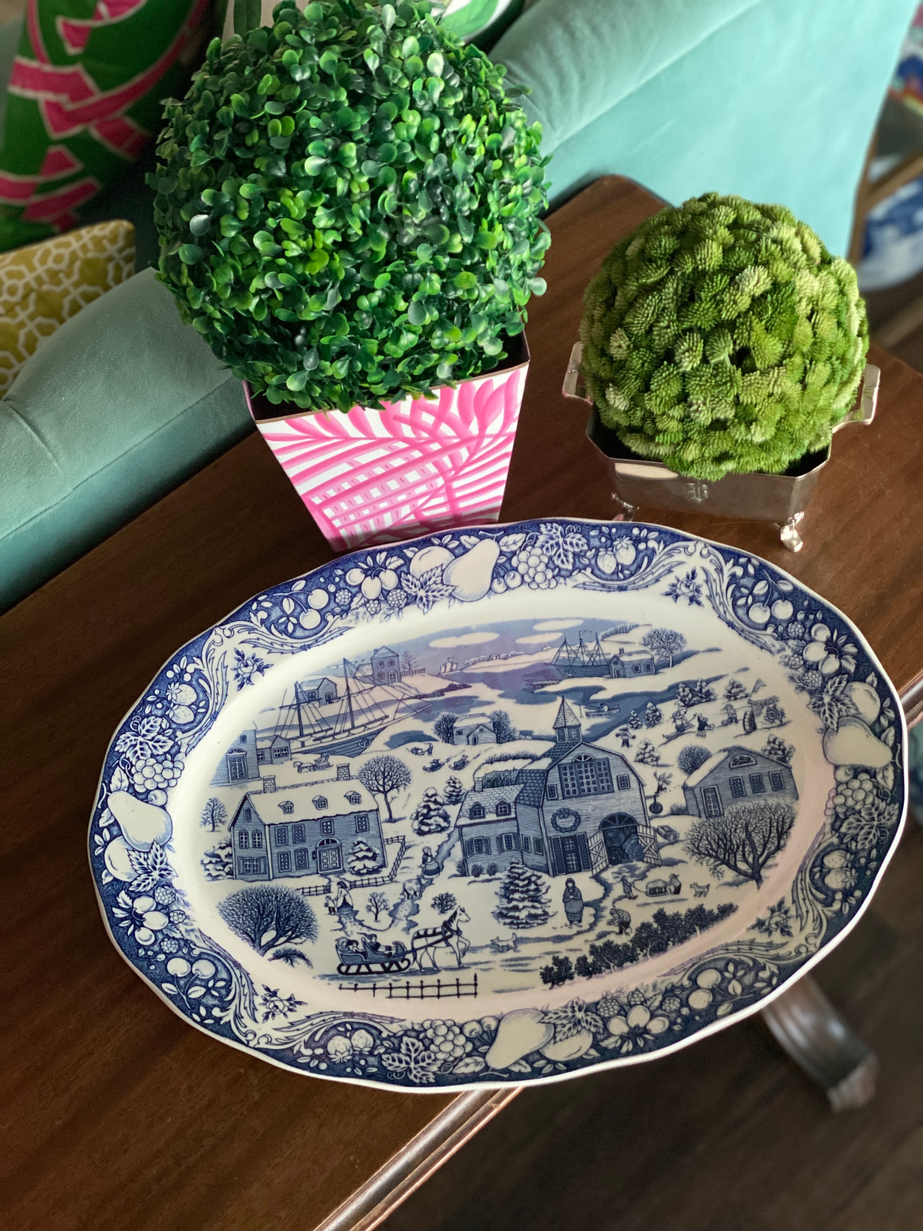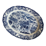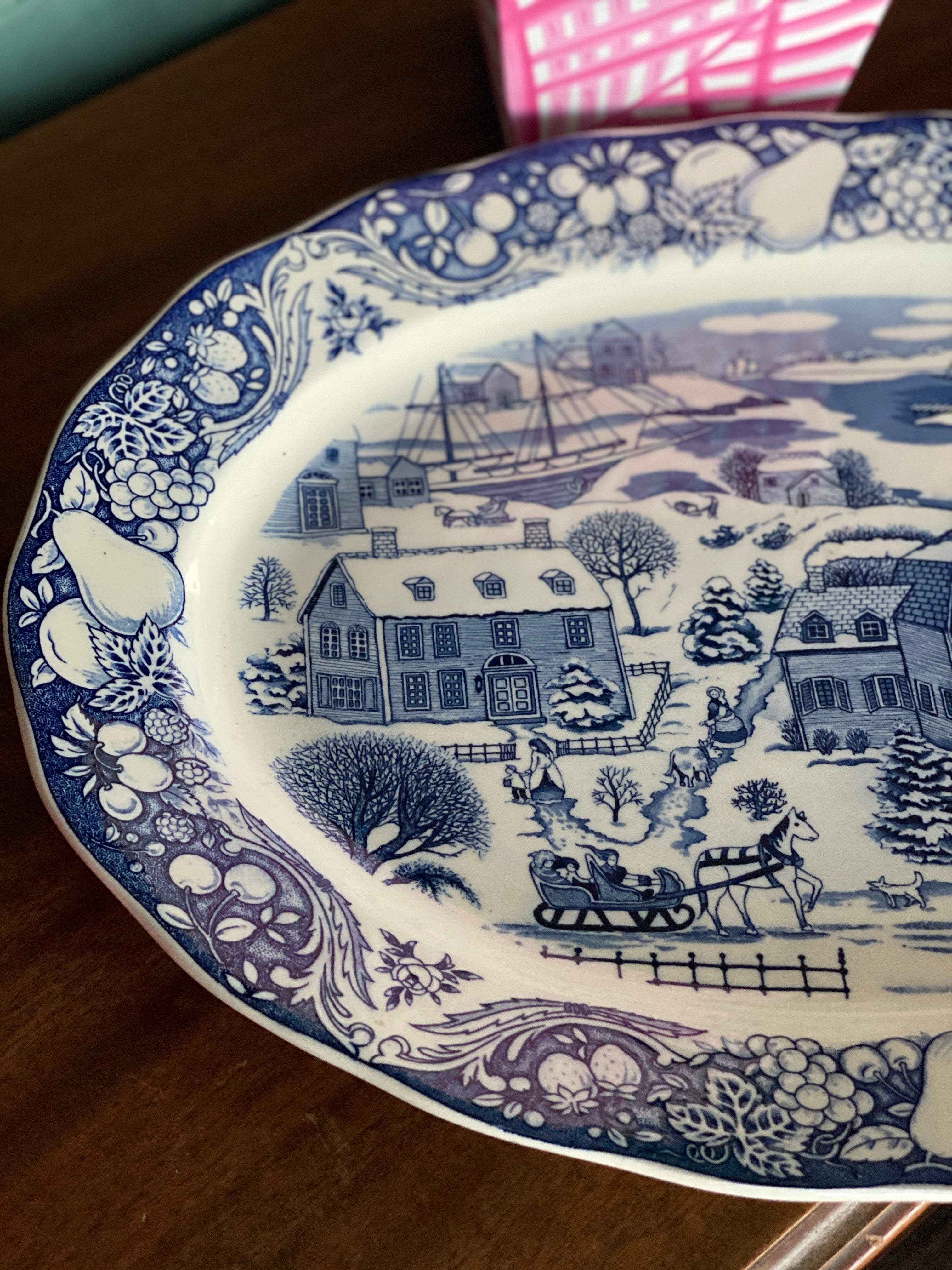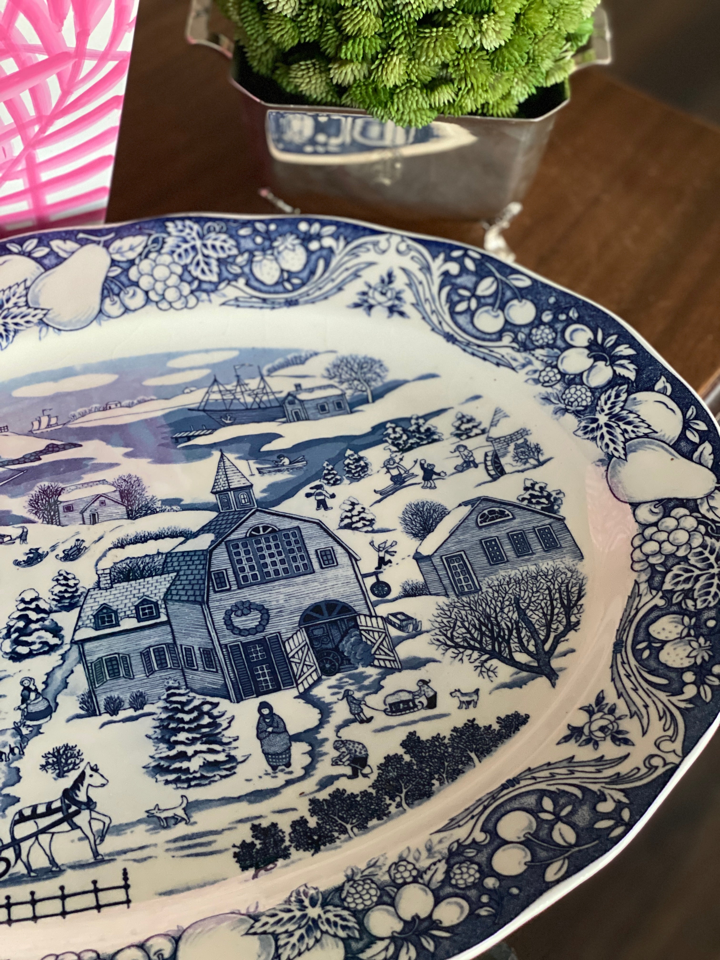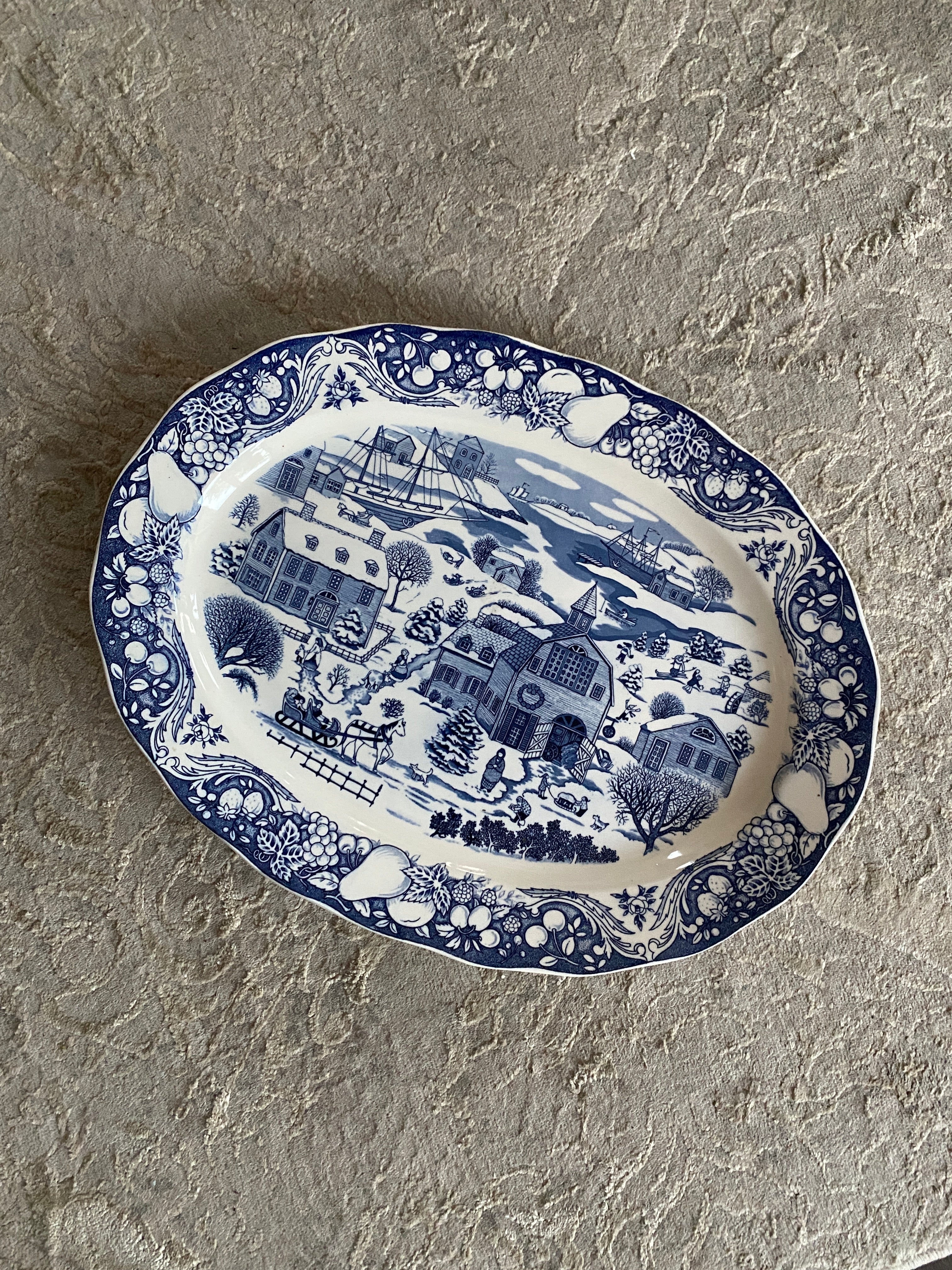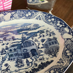 Vintage blue and white Winter scene large platter - Japan