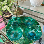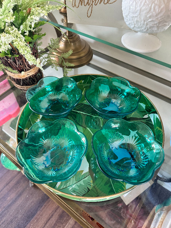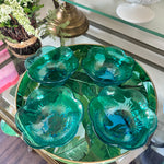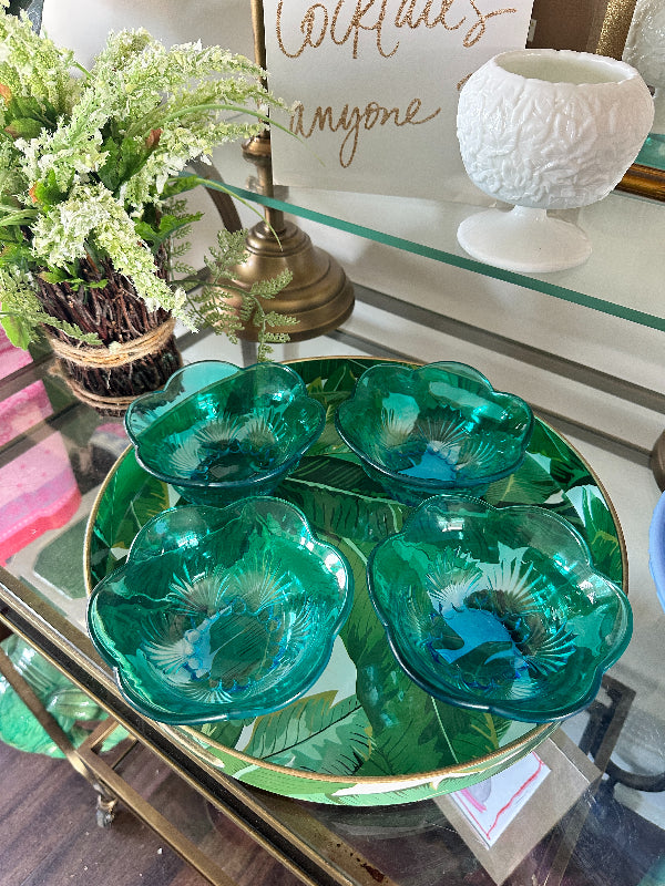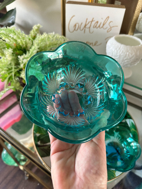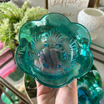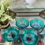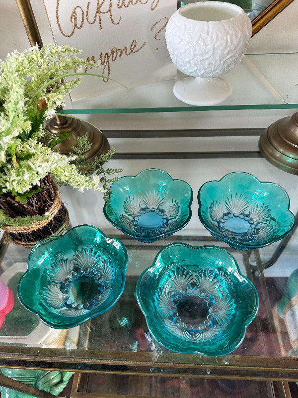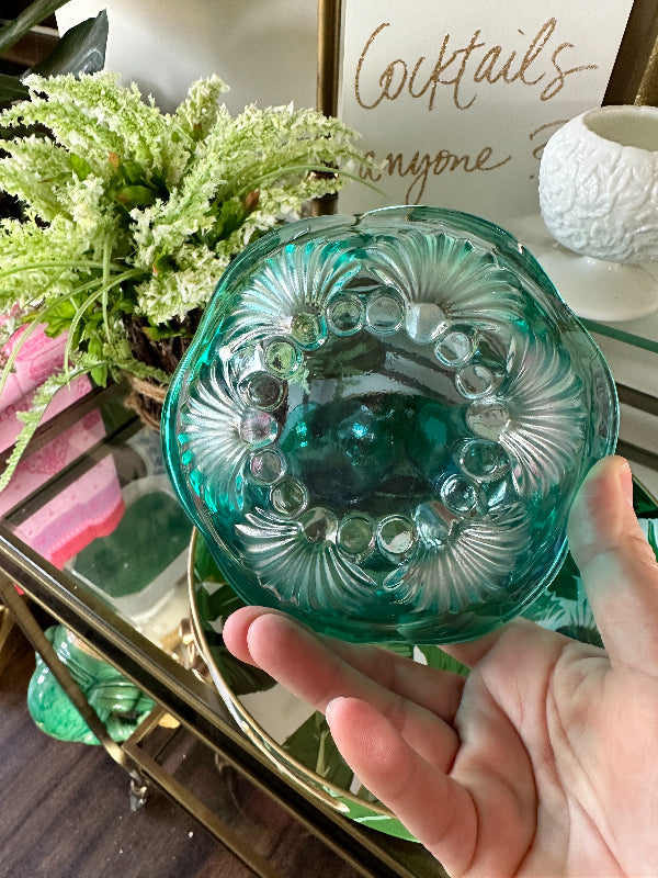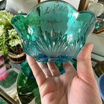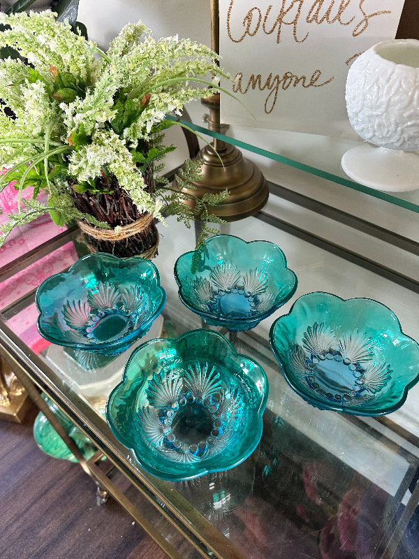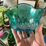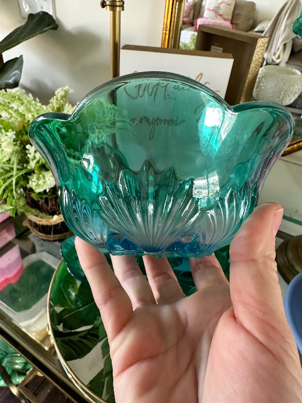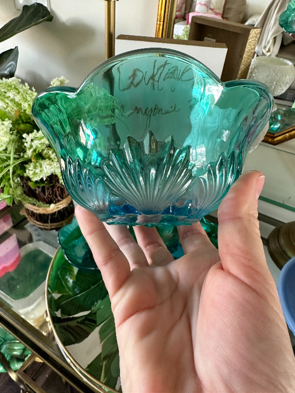 Vintage Blue/Green Glass Bowls, Shell Design, Scalloped Edge