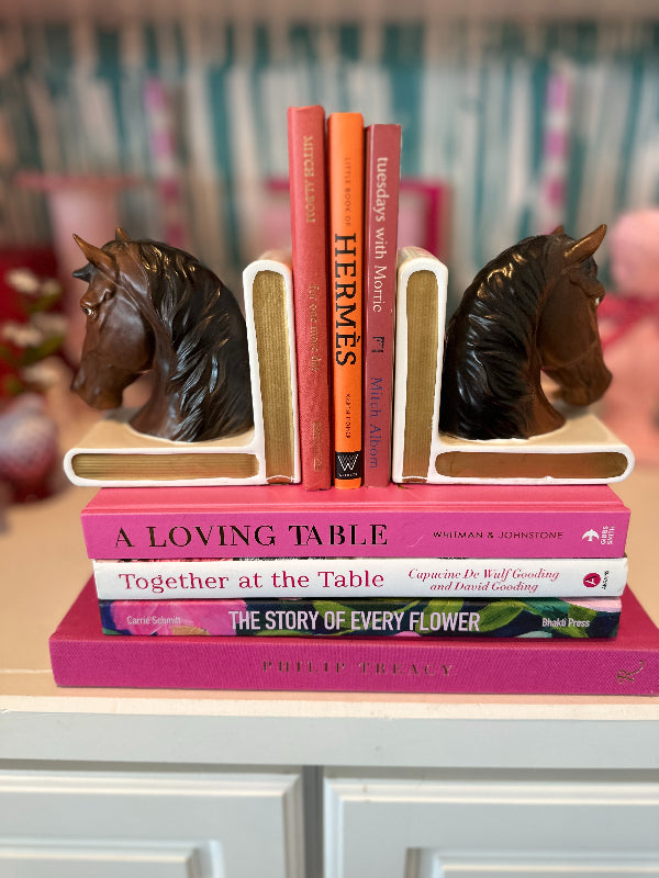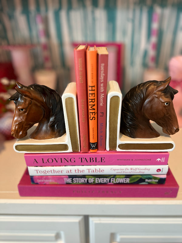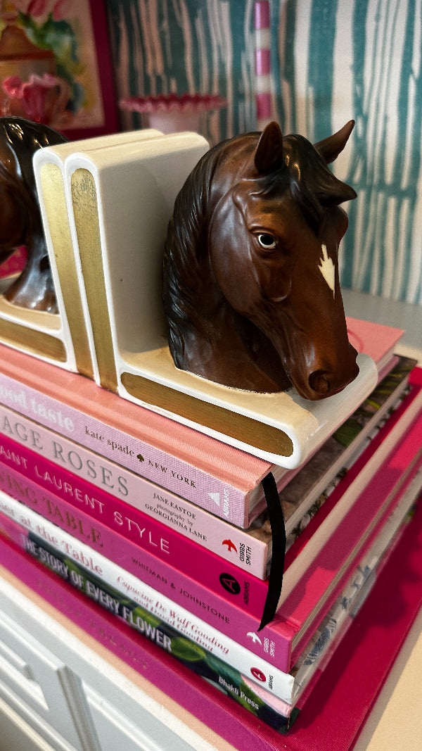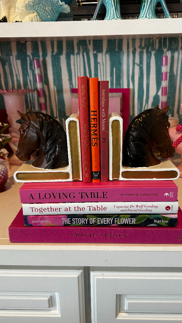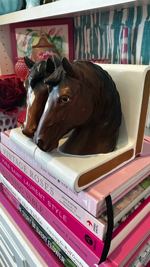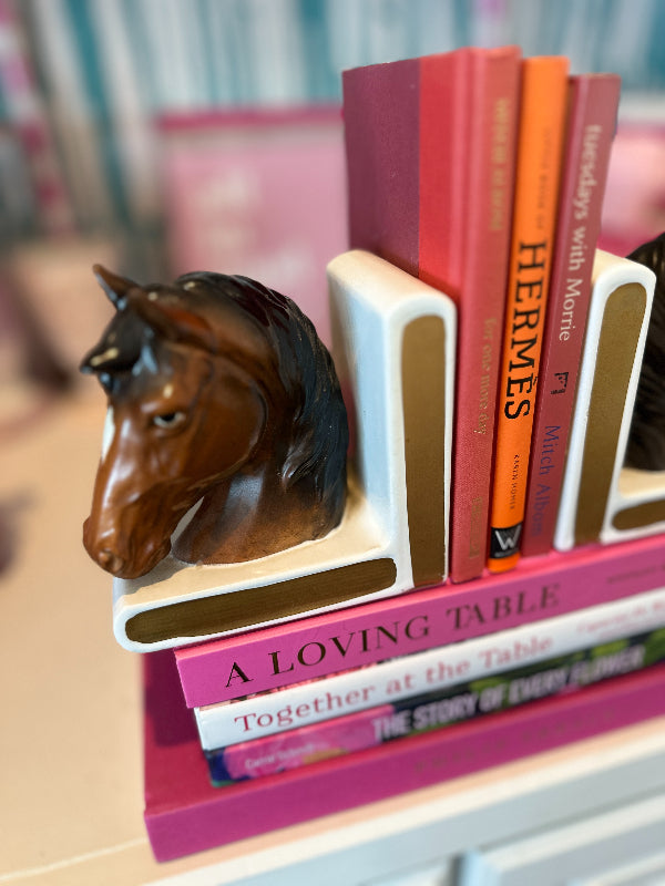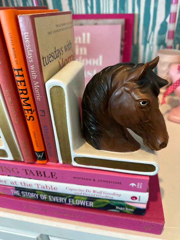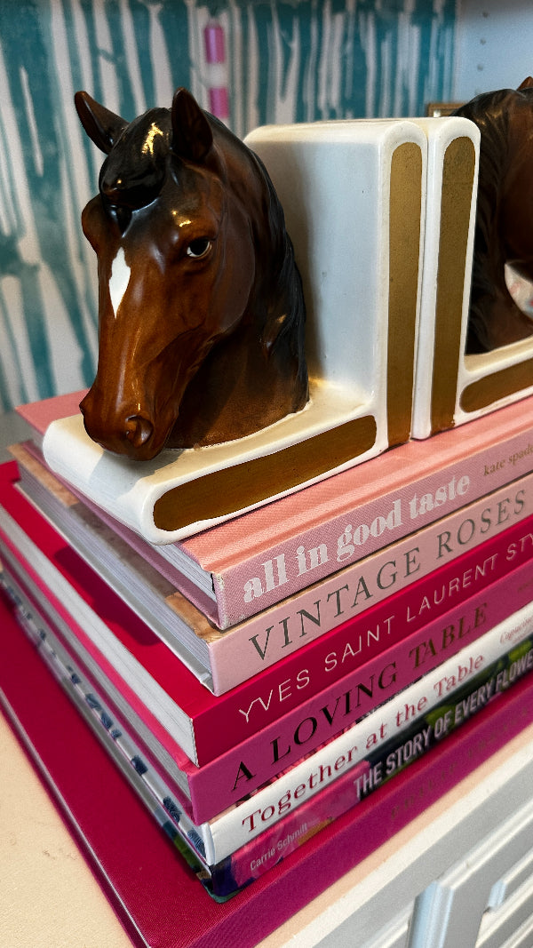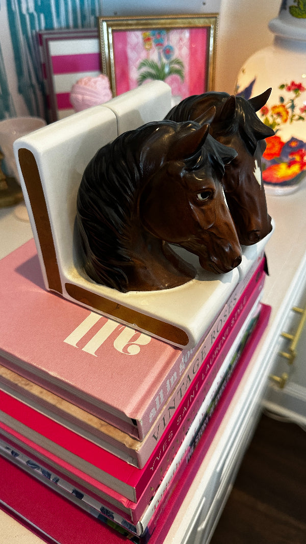 Discover this pair of vintage bookends that not only serve as functional pieces but also tell a story through their intricate designs and craftsmanship. Indulge in the grace and beauty of our horse figurine bookends. Each piece captures the spirit of these majestic creatures with meticulous attention to detail. Whether you're a horse enthusiast or simply appreciate elegant décor, our vintage horse figurines make for a timeless addition to your home.