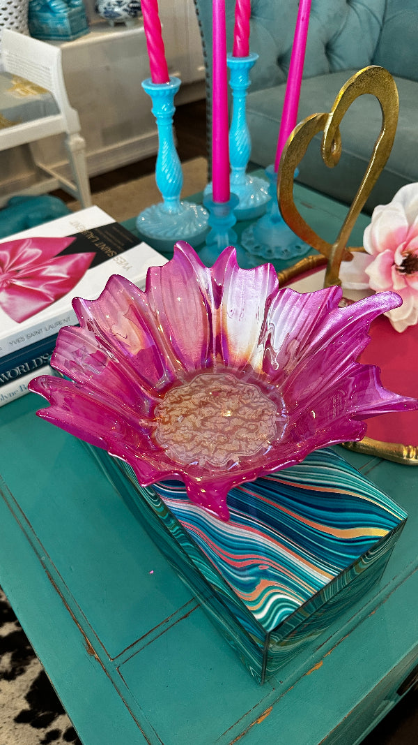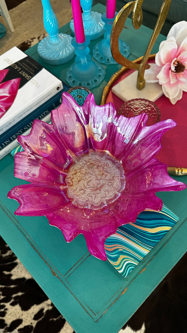 Vintage Bowl featuring stunning hot pink hues, ruffled edges, and impeccable art glass craftsmanship. A unique masterpiece, handmade with love in Turkey, adding a touch of warmth and sophistication to your home. Elevate your dining experience or adorn your space with this statement piece that effortlessly blends art and functionality.