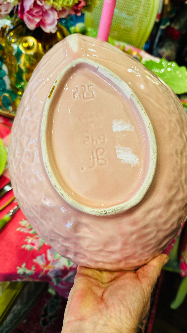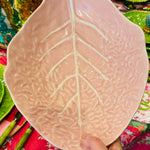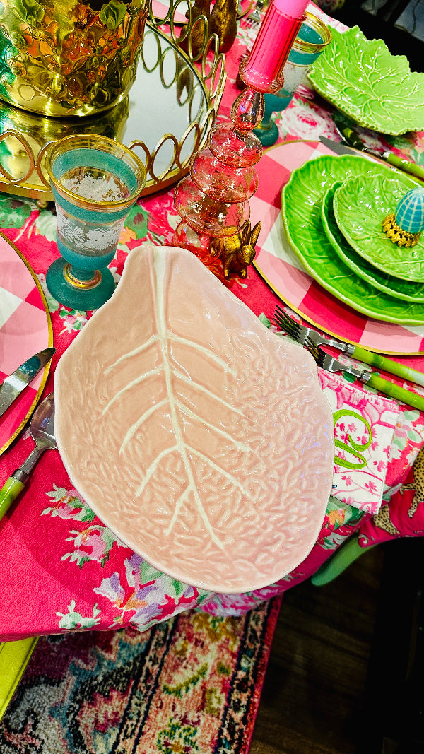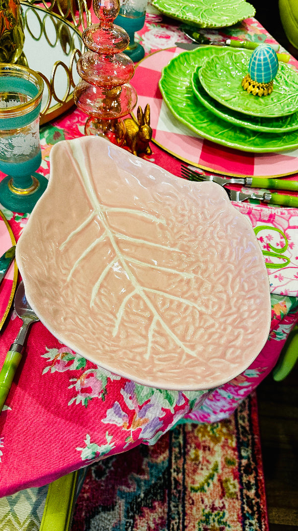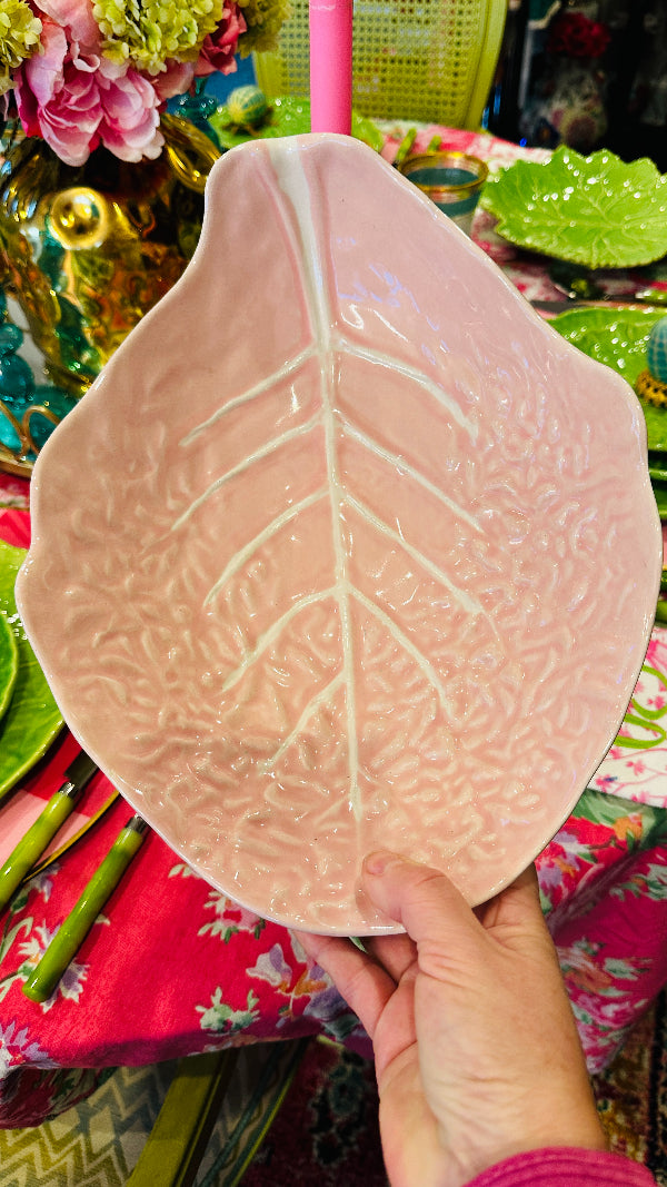 Vintage Pink Cabbage Leaf serving bowl, a delightful fusion of vintage flair and nature-inspired design. This piece exhibits character and sophistication, perfect for adding a touch of whimsy to your table setting or home decor. Elevate your dining experience with the enchanting beauty of this Pink Cabbage Leaf serving bowl. Perfect for your Spring or Easter dining table. Cabbage leaf dishware has become highly popular and sought after. This piece is in amazing vintage condition with no chips or cracks.