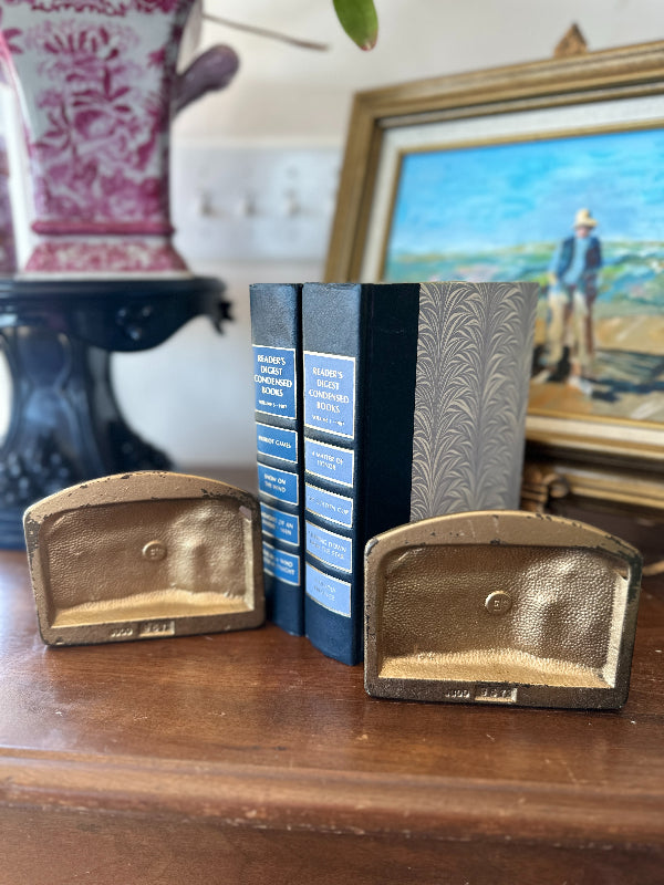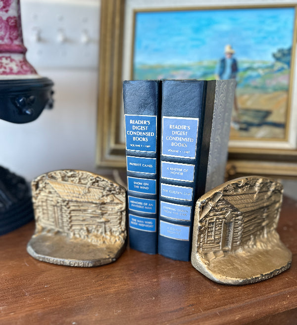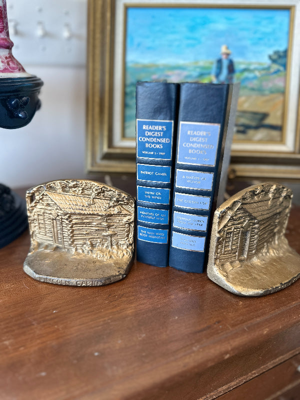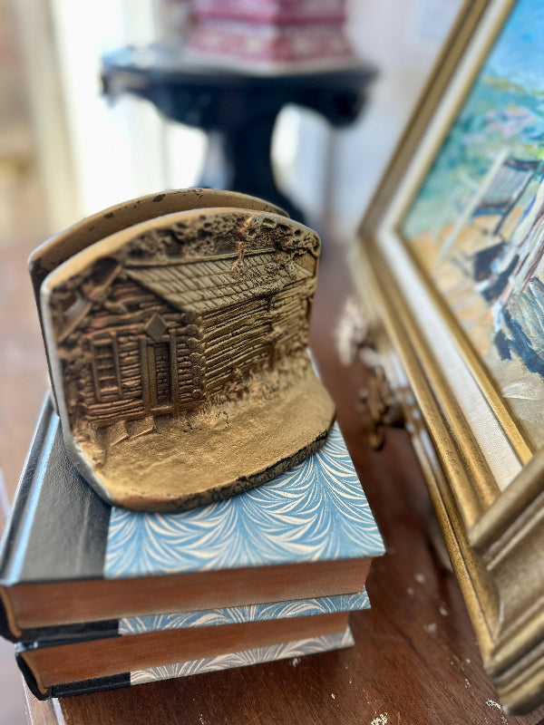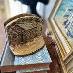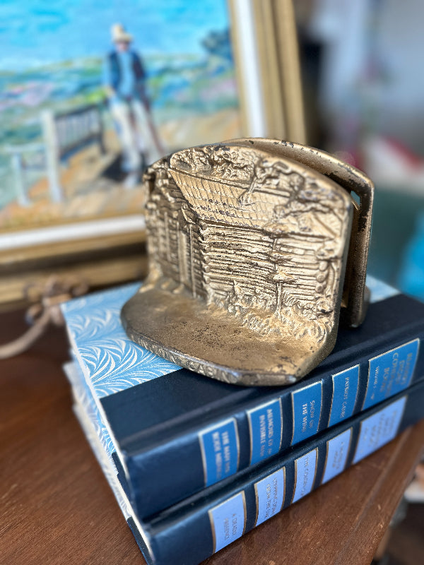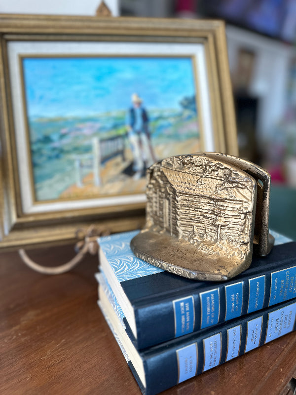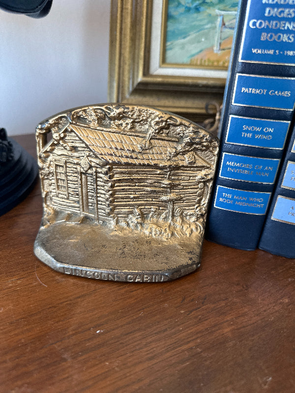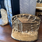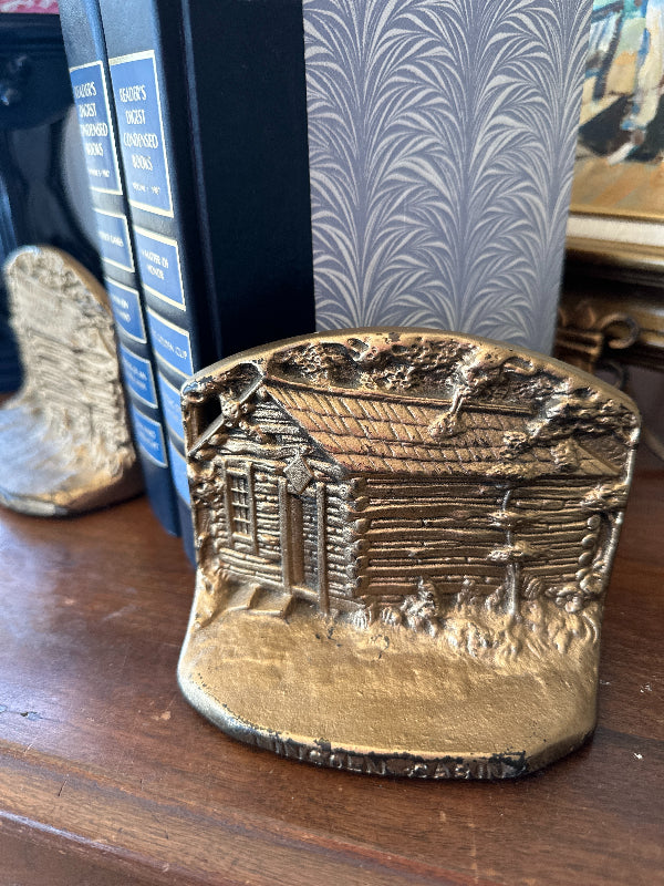 Vintage Brass Bookends, Lincoln Log Cabin