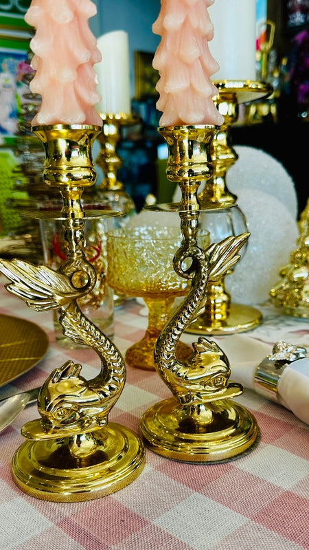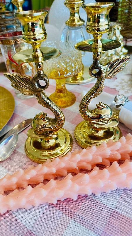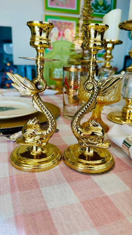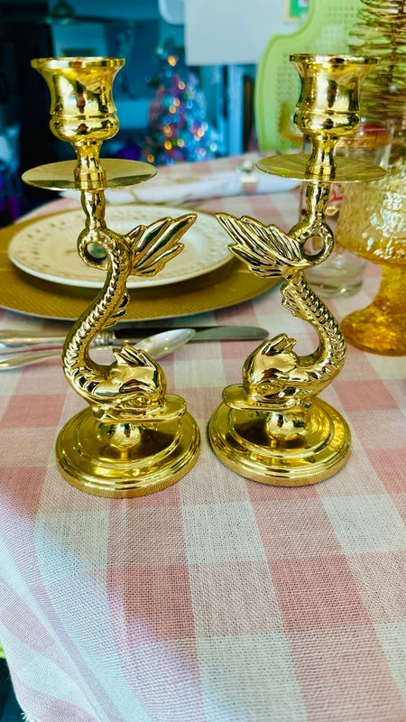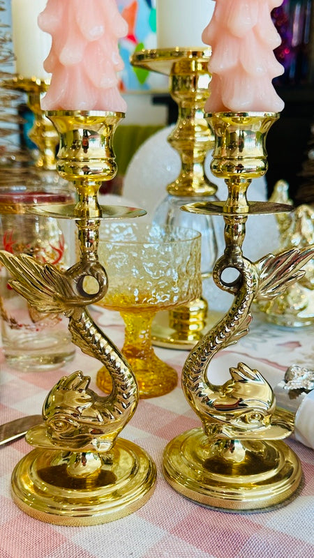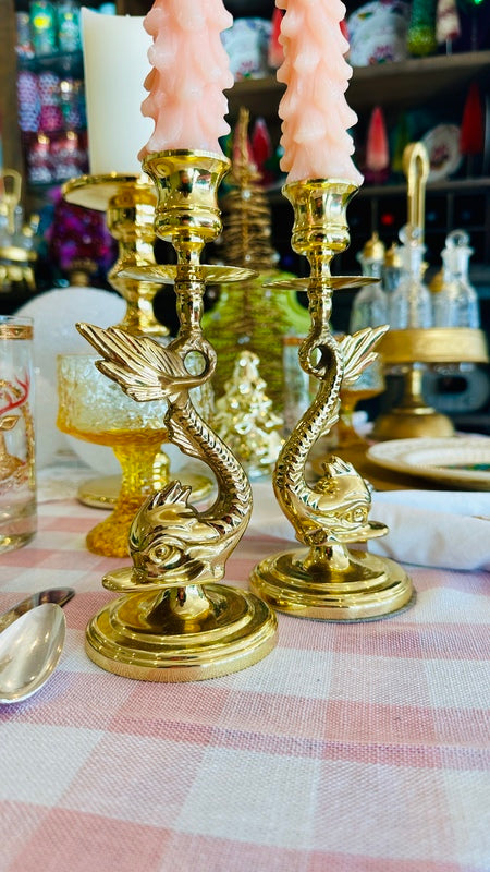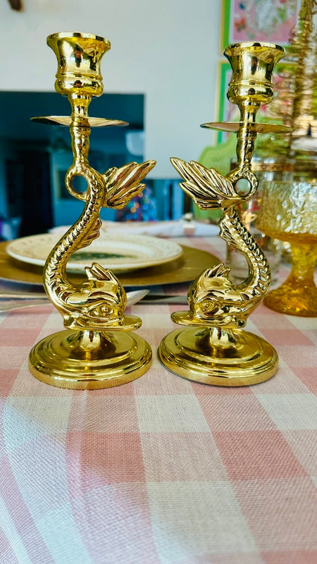 Vintage Brass Candle Holders, Baldwin, Koi Fish