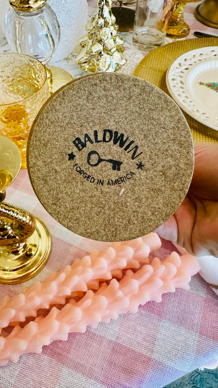 Bring sophistication and charm to your home with the Vintage Brass Candle Holders by Baldwin, featuring an intricate Koi fish design. Crafted from high-quality brass, these elegant candle holders are perfect for adding a touch of luxury to any room. A unique blend of artistry and function, ideal for both contemporary and classic decor.