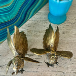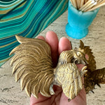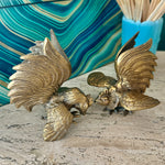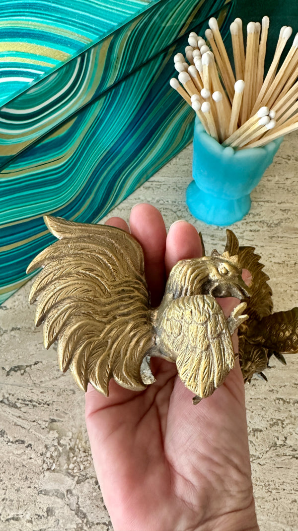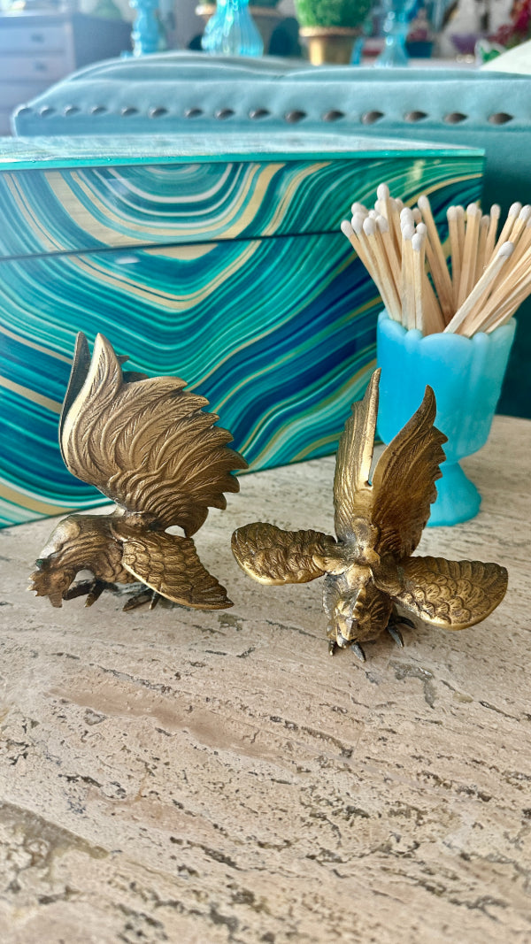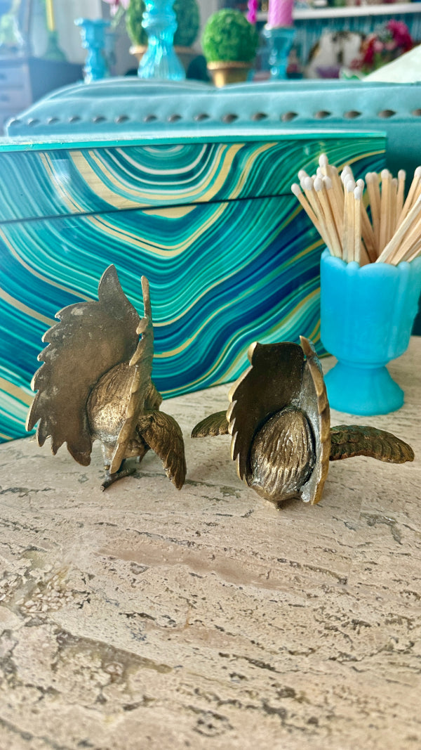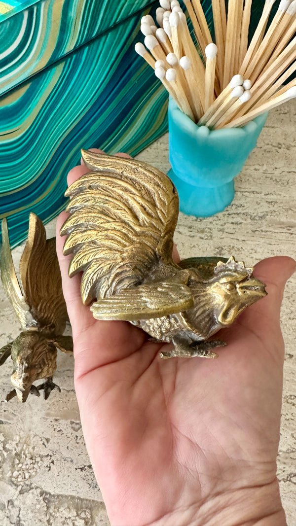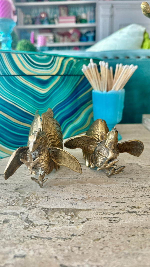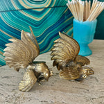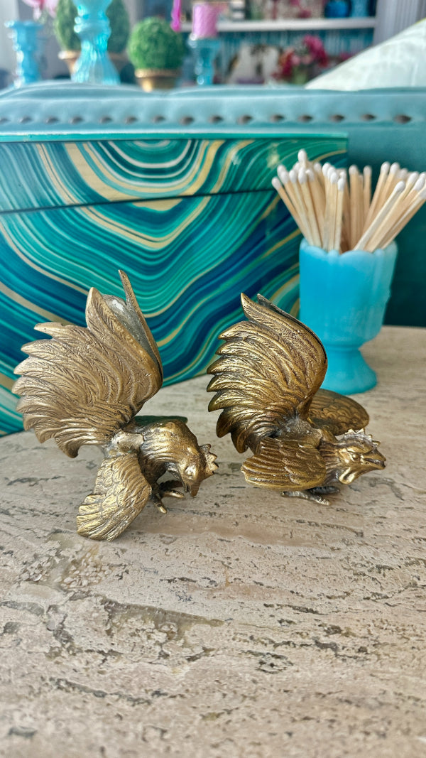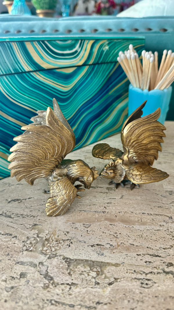 Vintage Brass Fighting Rooster, Cock Figurines, Pair