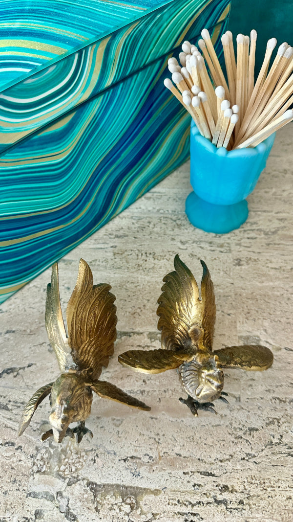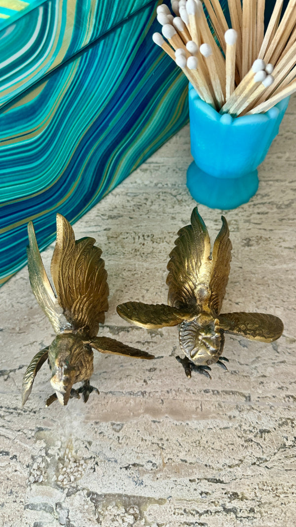 This bold pair of Vintage Brass Fighting Rooster Figurines captures dynamic movement and detailed craftsmanship, celebrating the strength and symbolism of the cock. With rich brass patina and expressive poses, these figures make a striking statement on a mantel, bookshelf, or tabletop. Ideal for collectors or as distinctive décor, they add character, energy, and a touch of vintage charm to any interior.