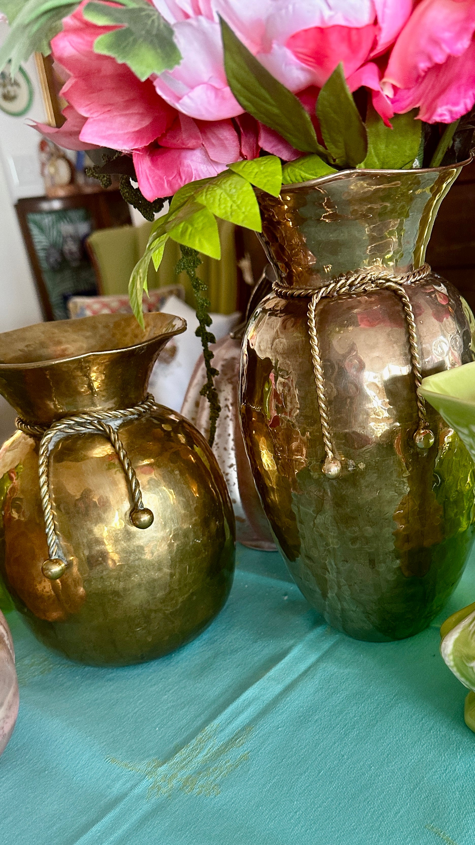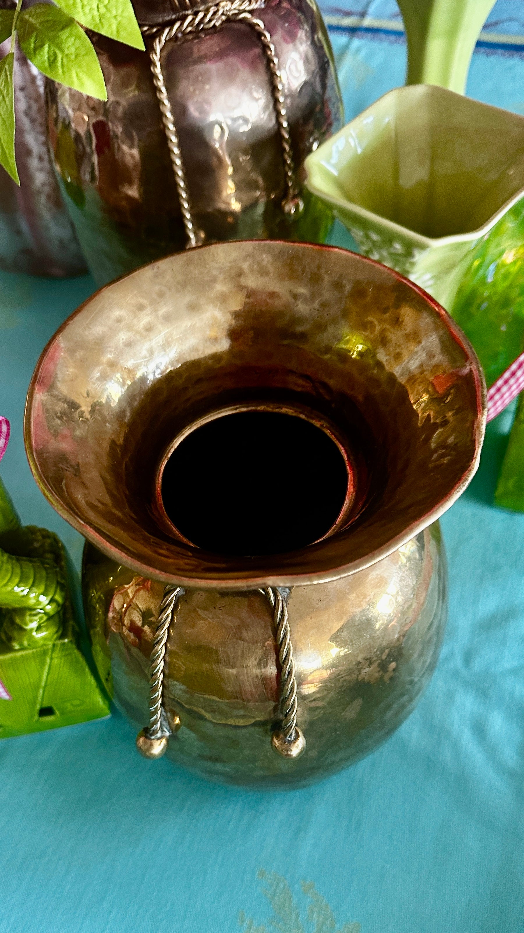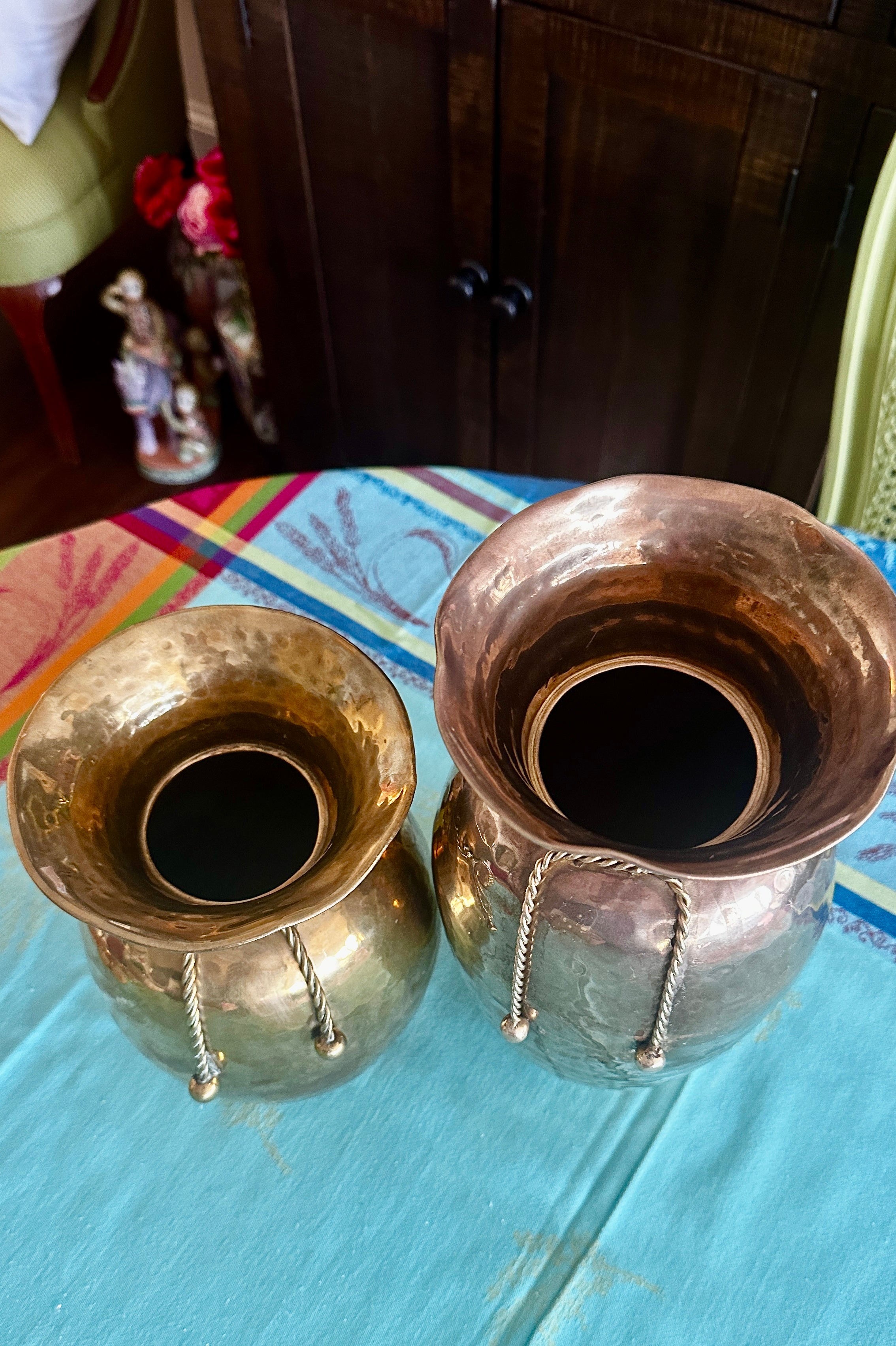 Vintage Vase-Short with Rope Detail Solid Brass and Tall with Rope Detail made of Brass over Copper
