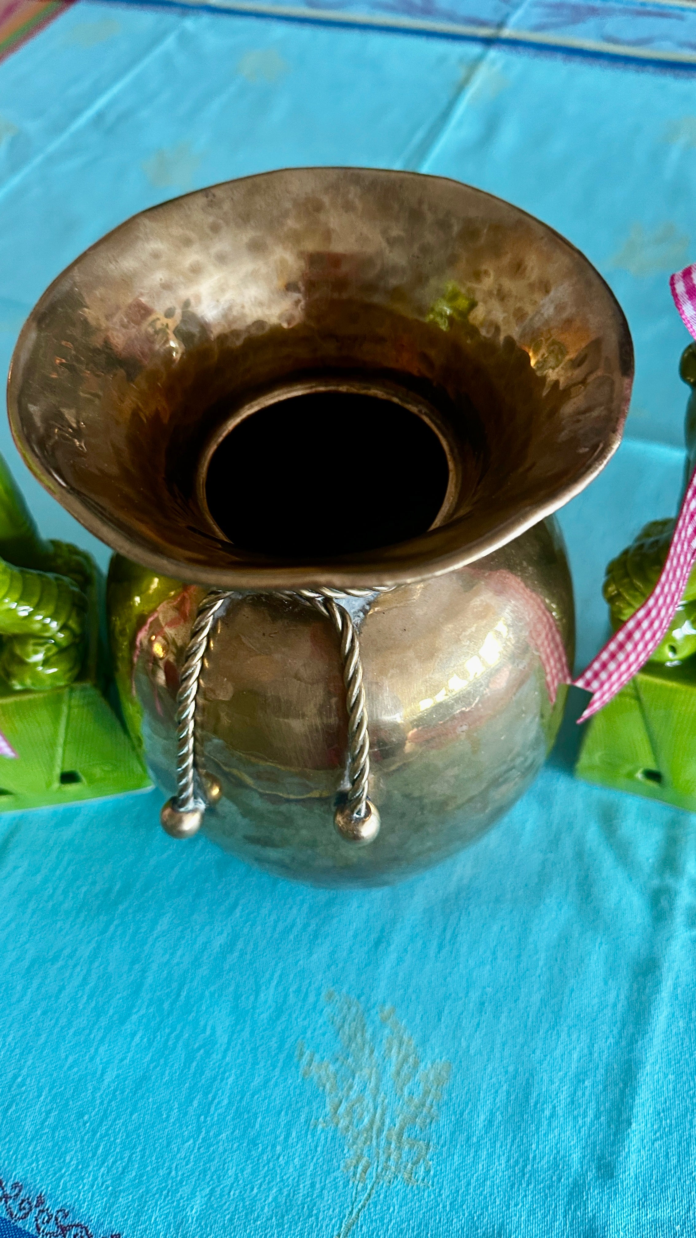 Vintage Brass Spittoon Vase - Rope Detail