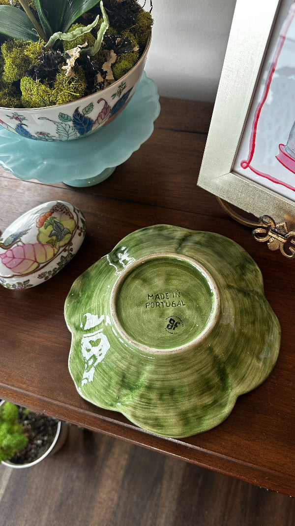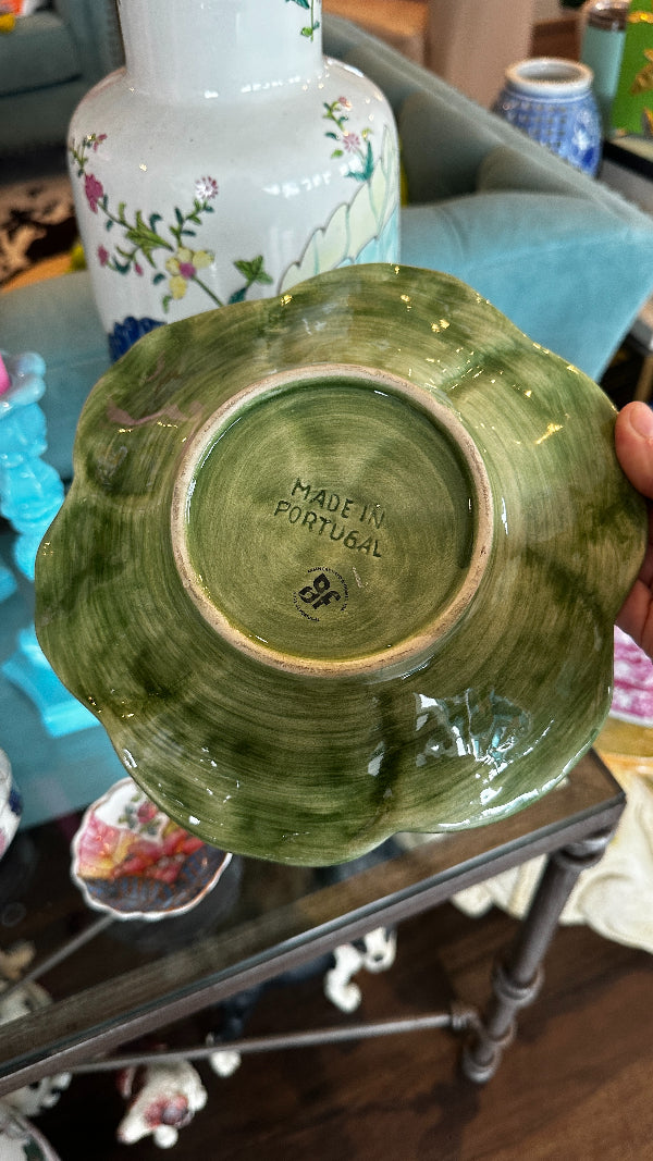Vintage Cabbage Leaf Plate, Shallow Bowl, Green, Portugal