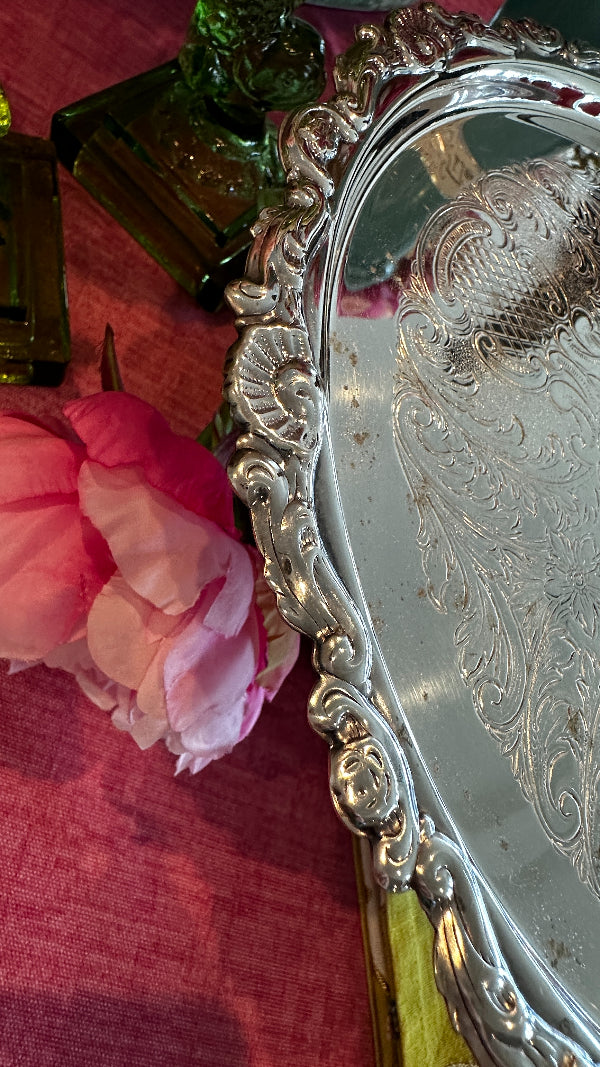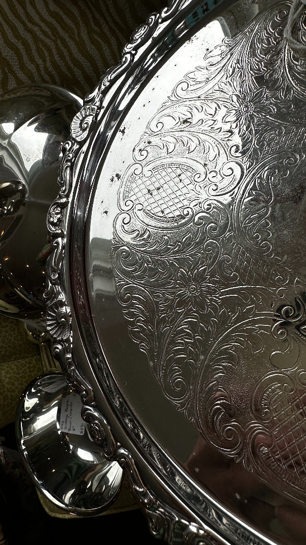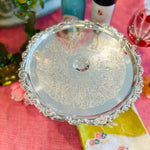Vintage Cake Plate/Stand, Silverplate, Ornate Scrollwork