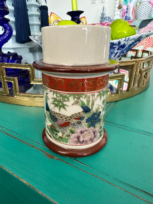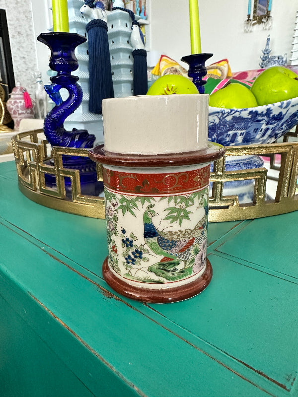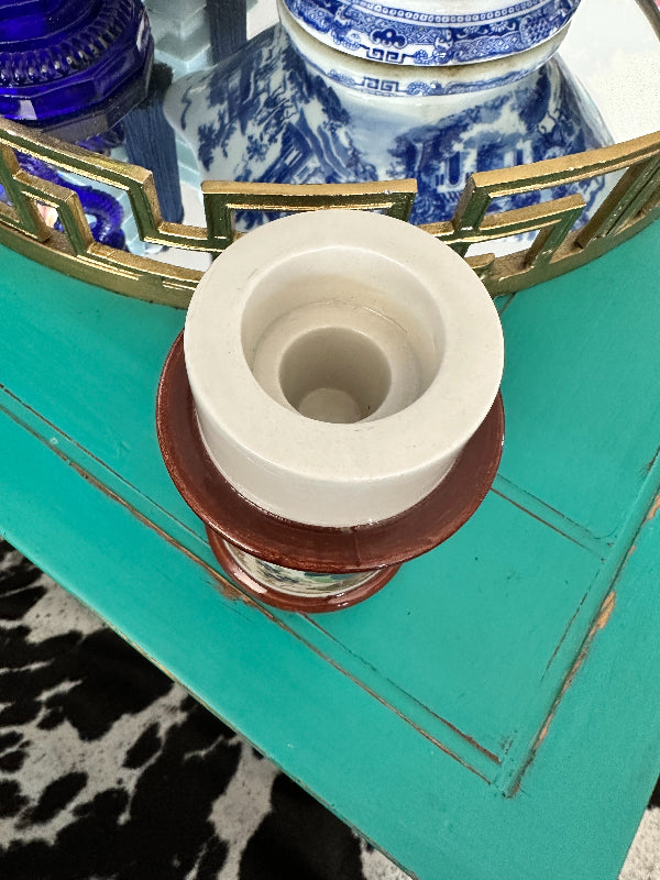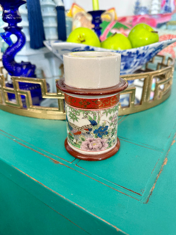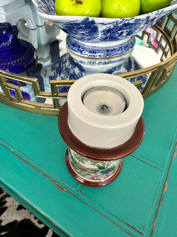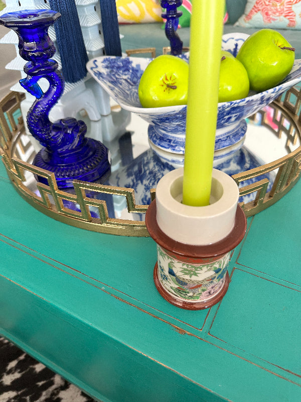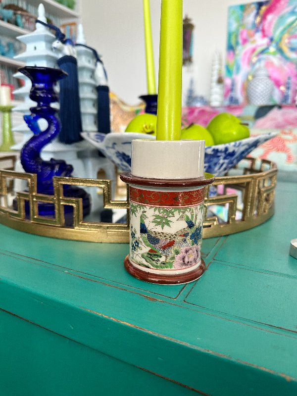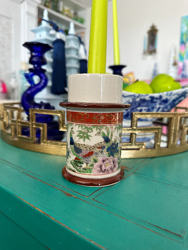 Vintage Candle Holder Chinoiserie, Peacock Motif