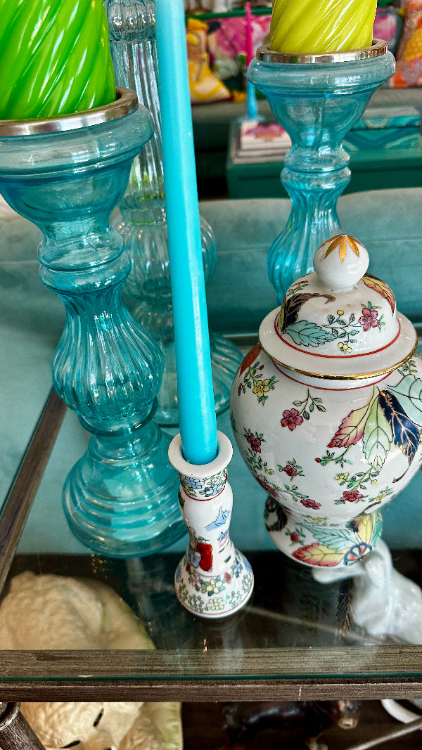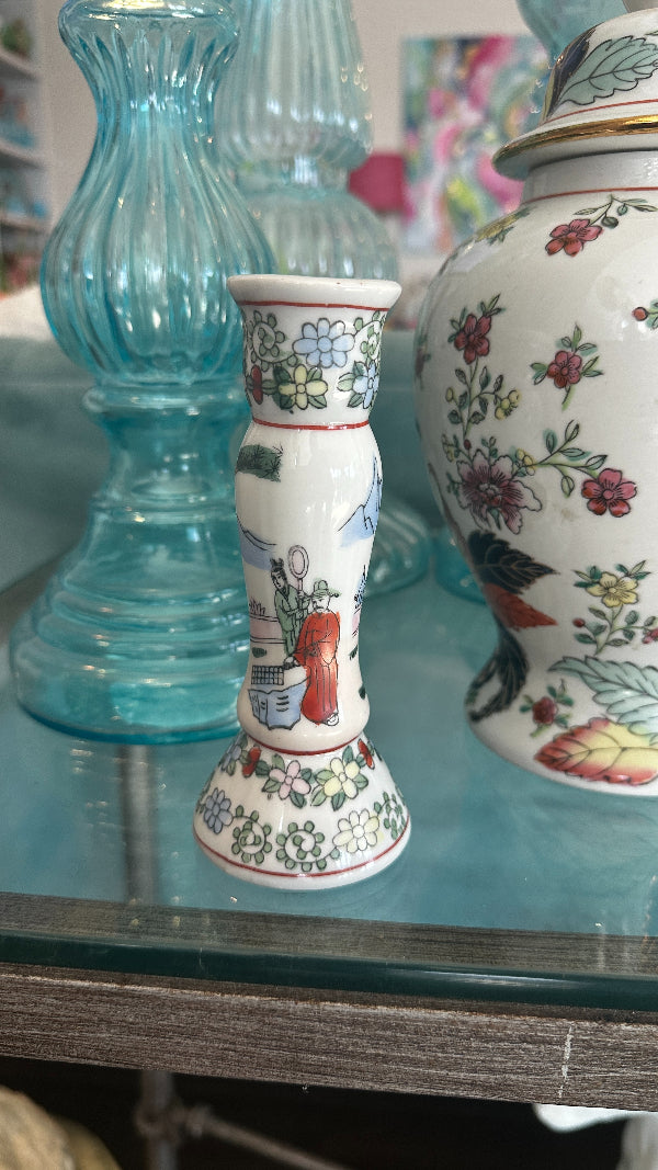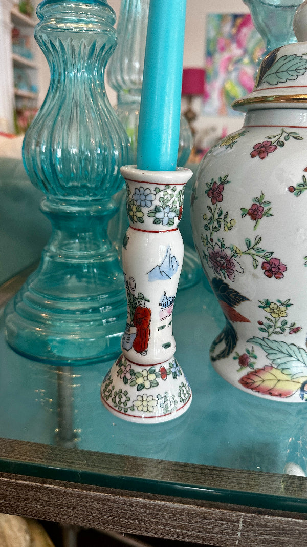 Vintage Candle Holder in the iconic Famille Rose Medallion style.This lovely piece tells a story with its intricate hand-painted details, showcasing the rich craftsmanship and cultural legacy. Elevate your home decor with this blend of vintage charm and functional artistry.