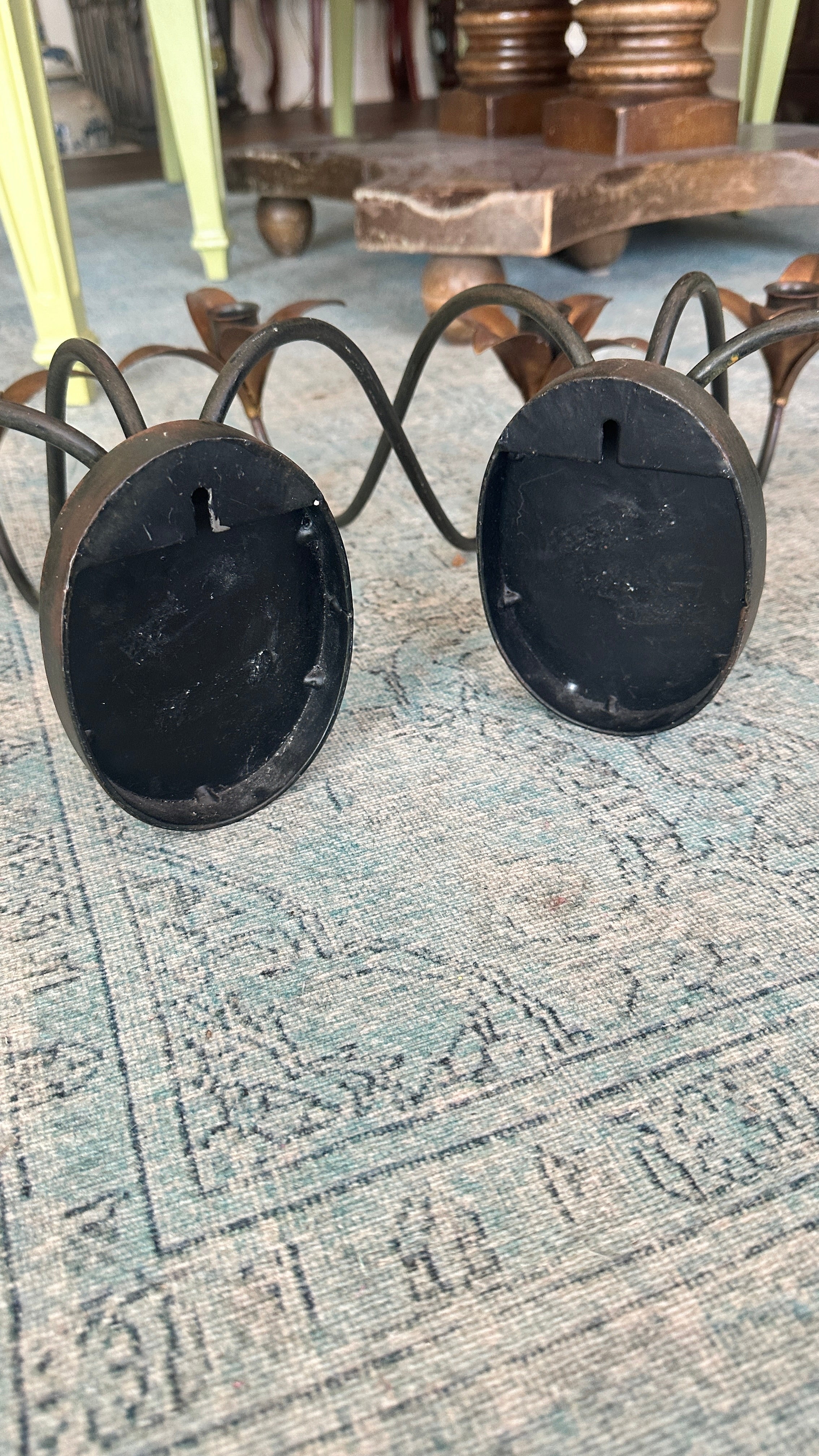 Vintage Candle Sconces, Brass coloring and black metal rough iron style, Pair