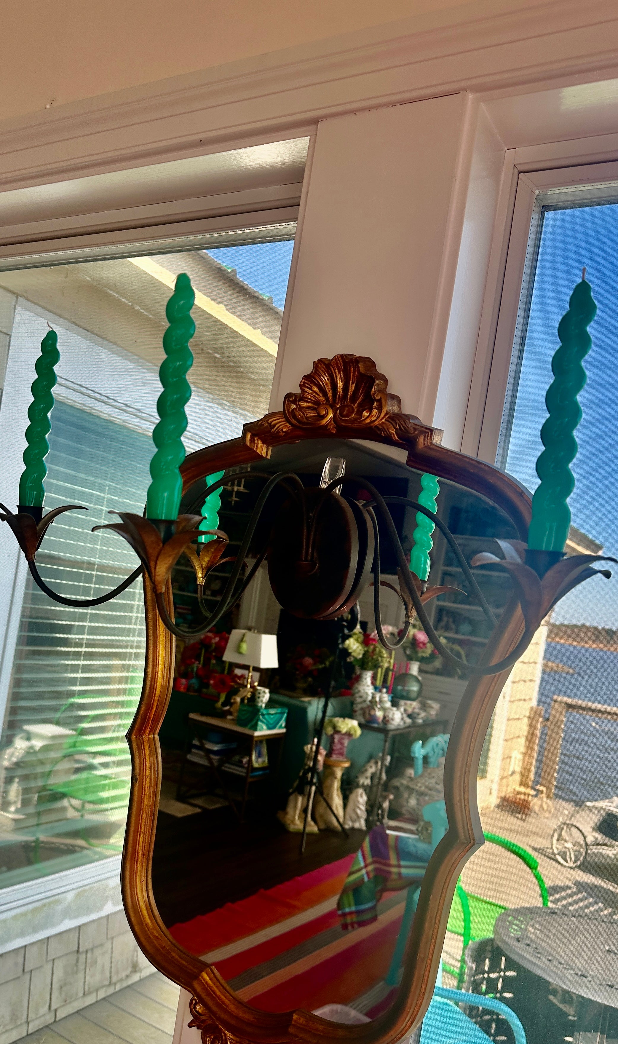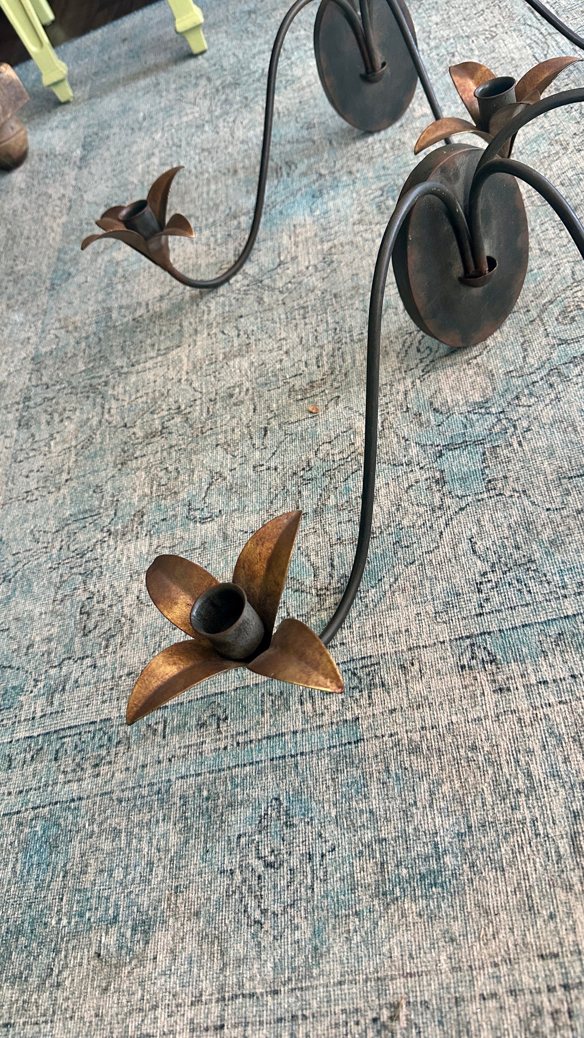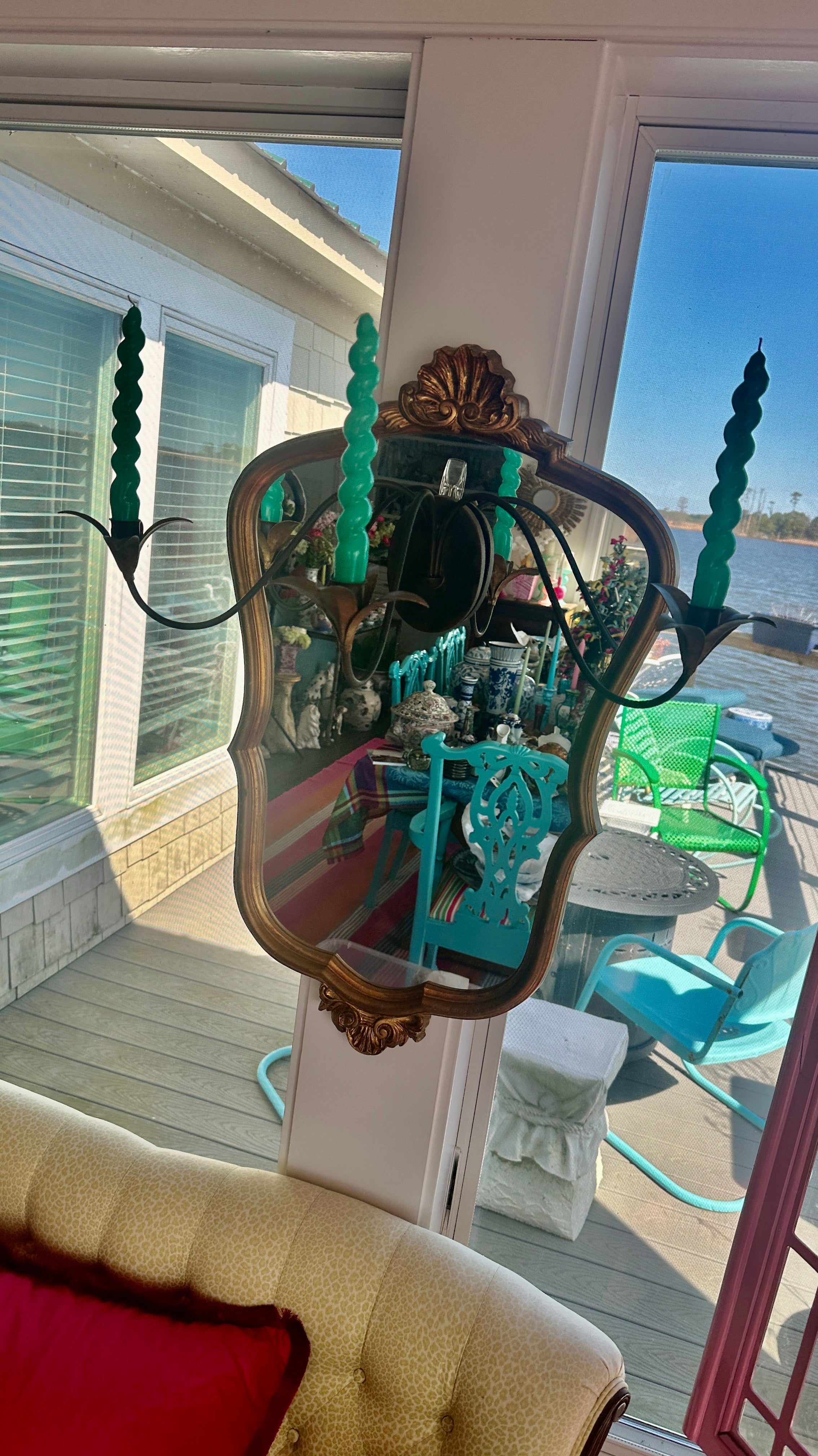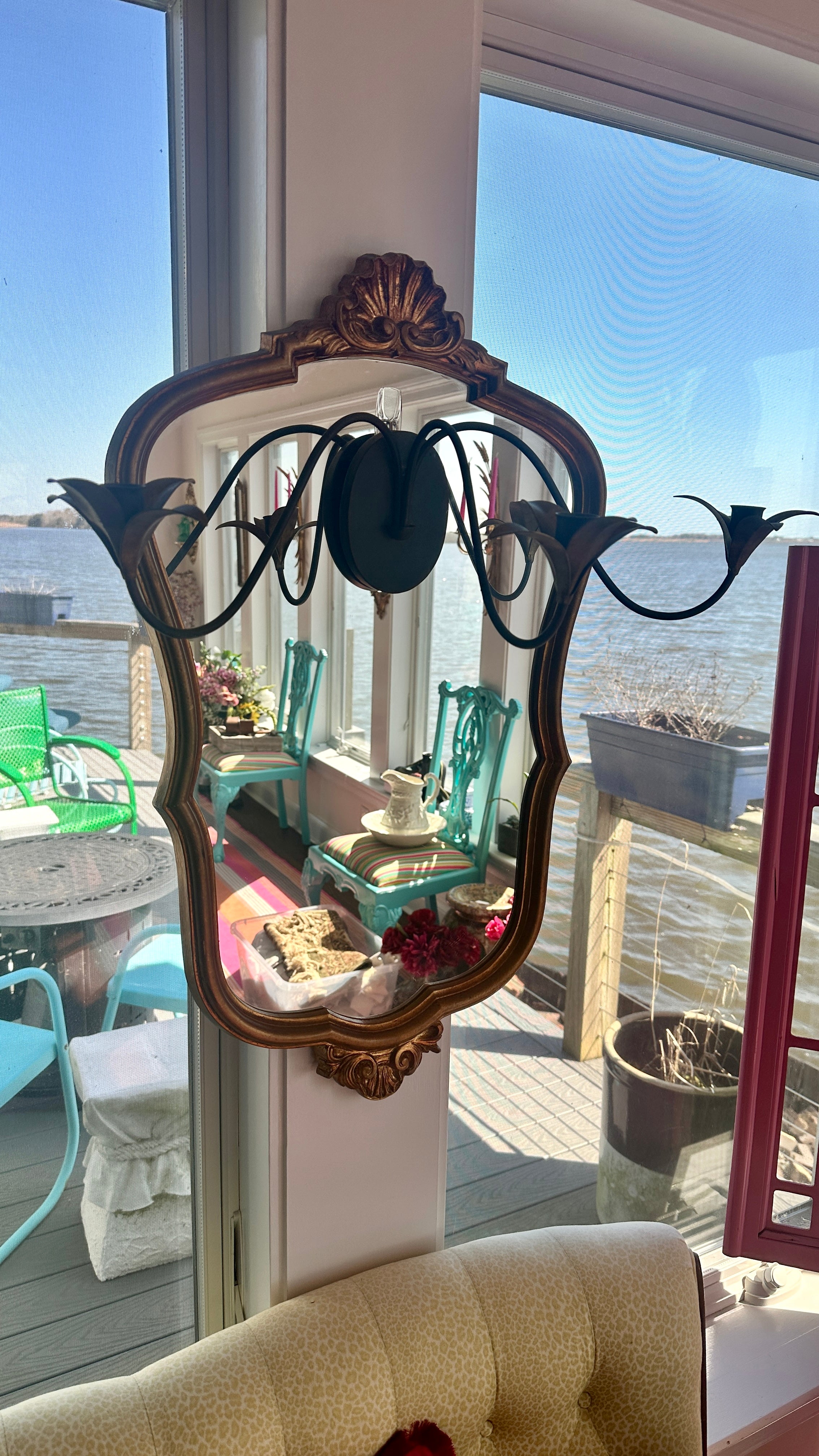 Add a touch of old-world elegance to your home with this exquisite pair of vintage candle sconces. ,These wall-mounted holders feature intricate detailing, combining durability with timeless charm. Each holds 3 candles. Perfect for creating a warm, inviting ambiance, they make a stunning addition to any hallway, dining room, or living space. Whether used for functional lighting or as decorative accents, these sconces bring a classic, sophisticated touch to any décor. A must-have for vintage enthusiasts and lovers of antique-inspired design