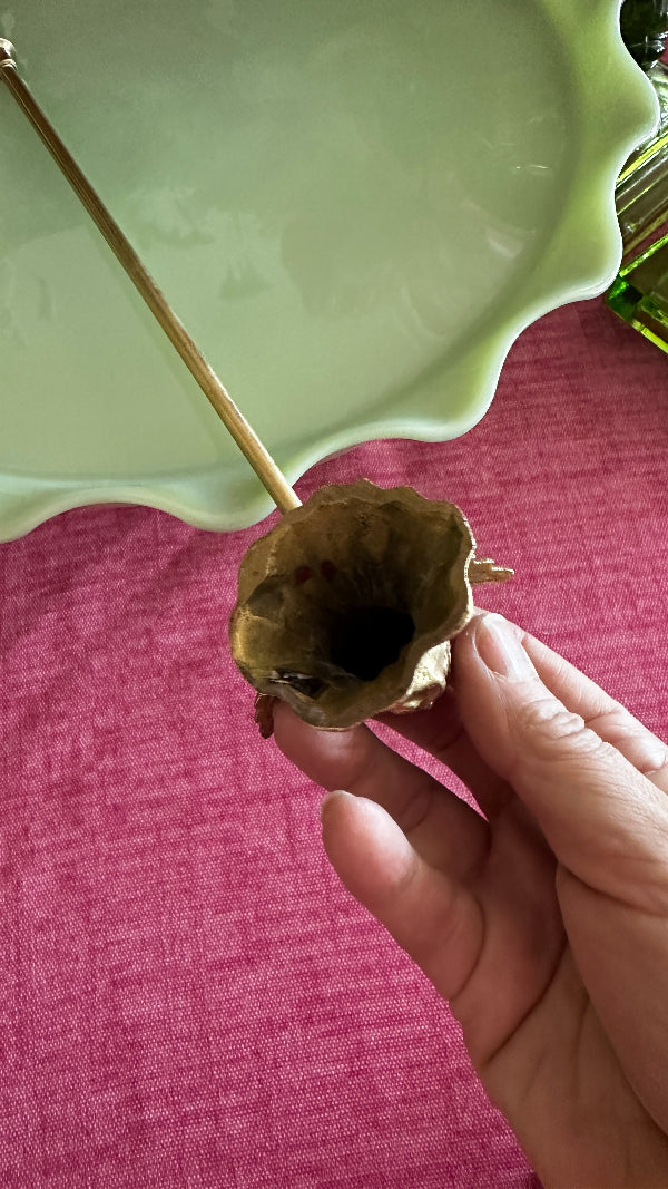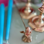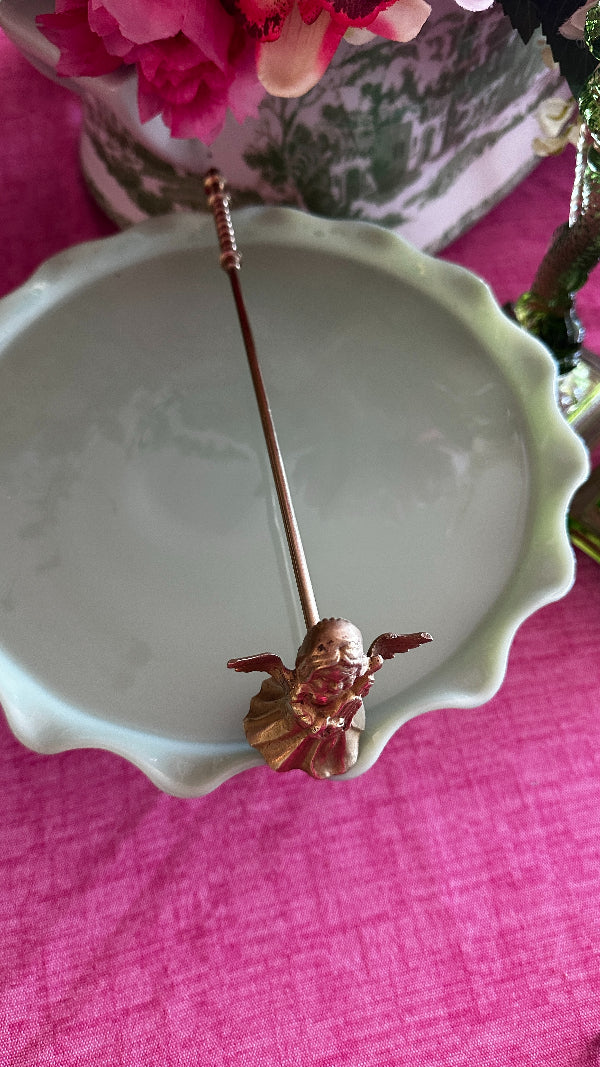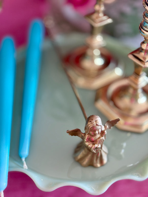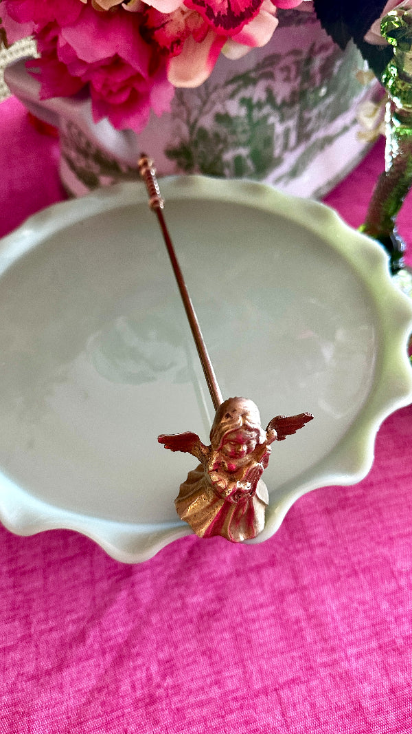 Vintage Brass Candle Snuffer with an angel motif. This elegant piece combines functionality with timeless beauty, crafted to extinguish candles gracefully while adding a touch of antique charm to your décor. Perfect for collectors or those seeking a unique accent for their home, this brass snuffer with its angelic design offers both practicality and aesthetic appeal. Makes. agreat holiday accent or gift.