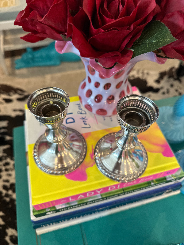 Vintage Candlesticks, Poole, Sterling Silver Weighted H200,