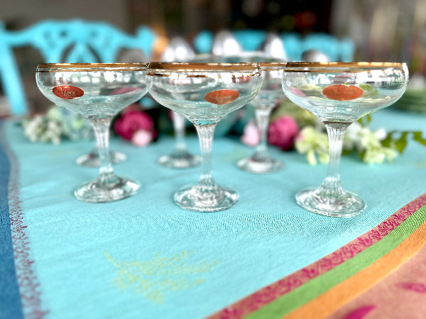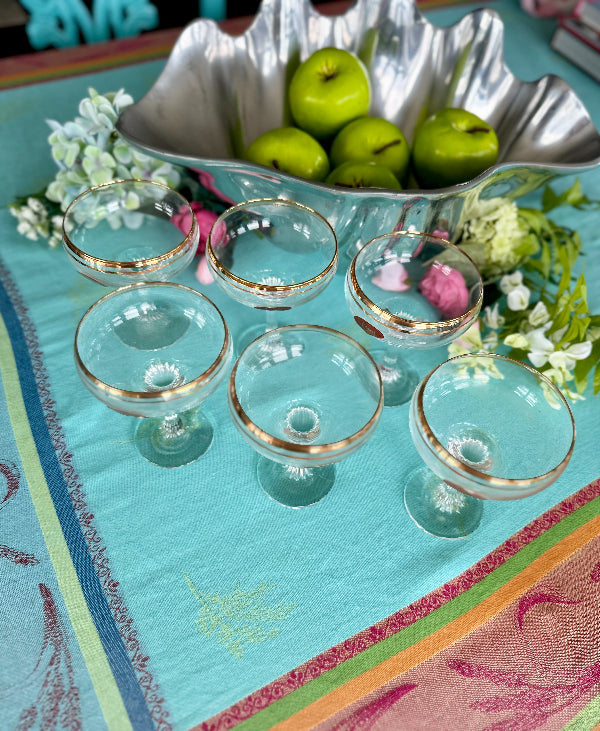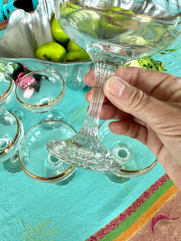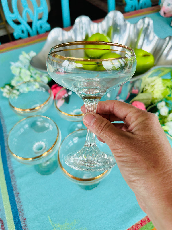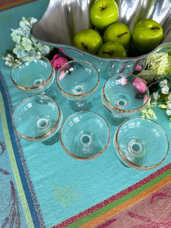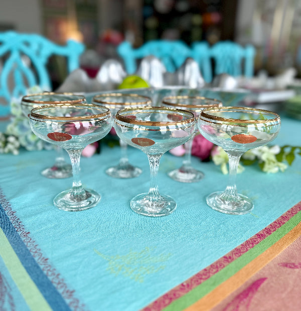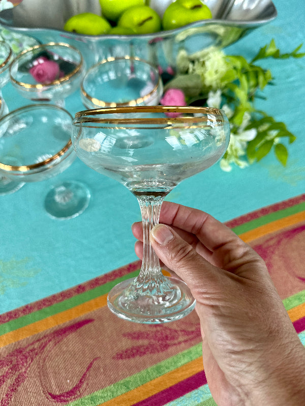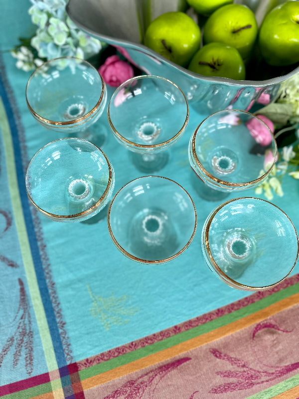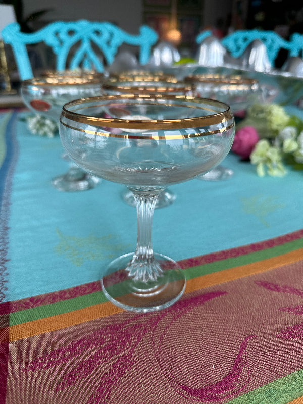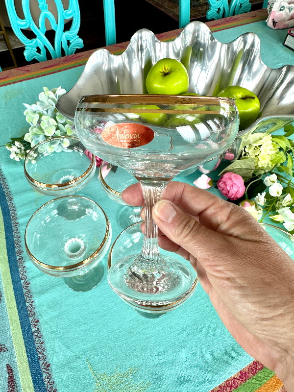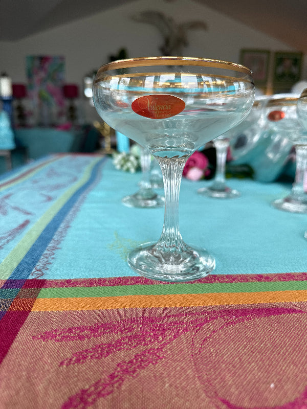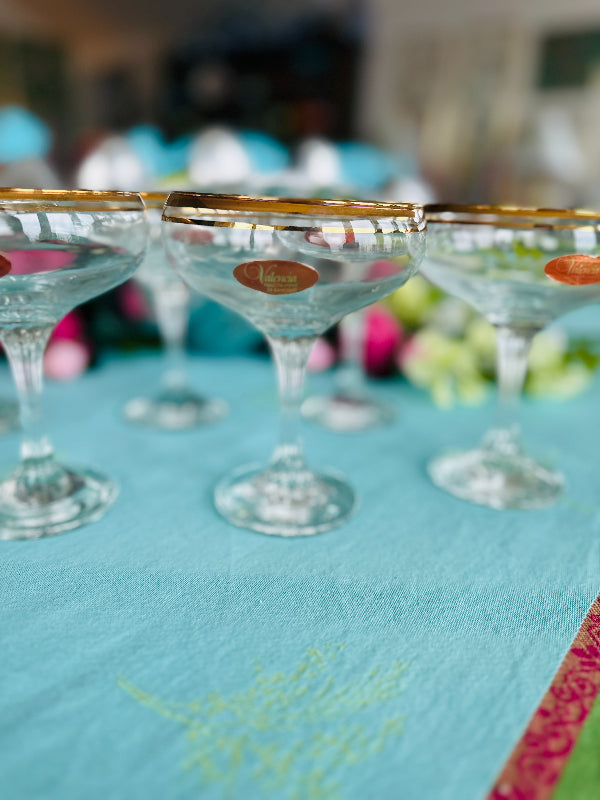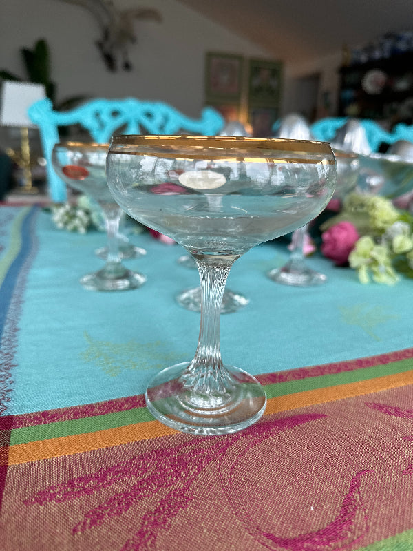 Vintage Champagne Coupes Valencia 24 kt Gold, Set of 6