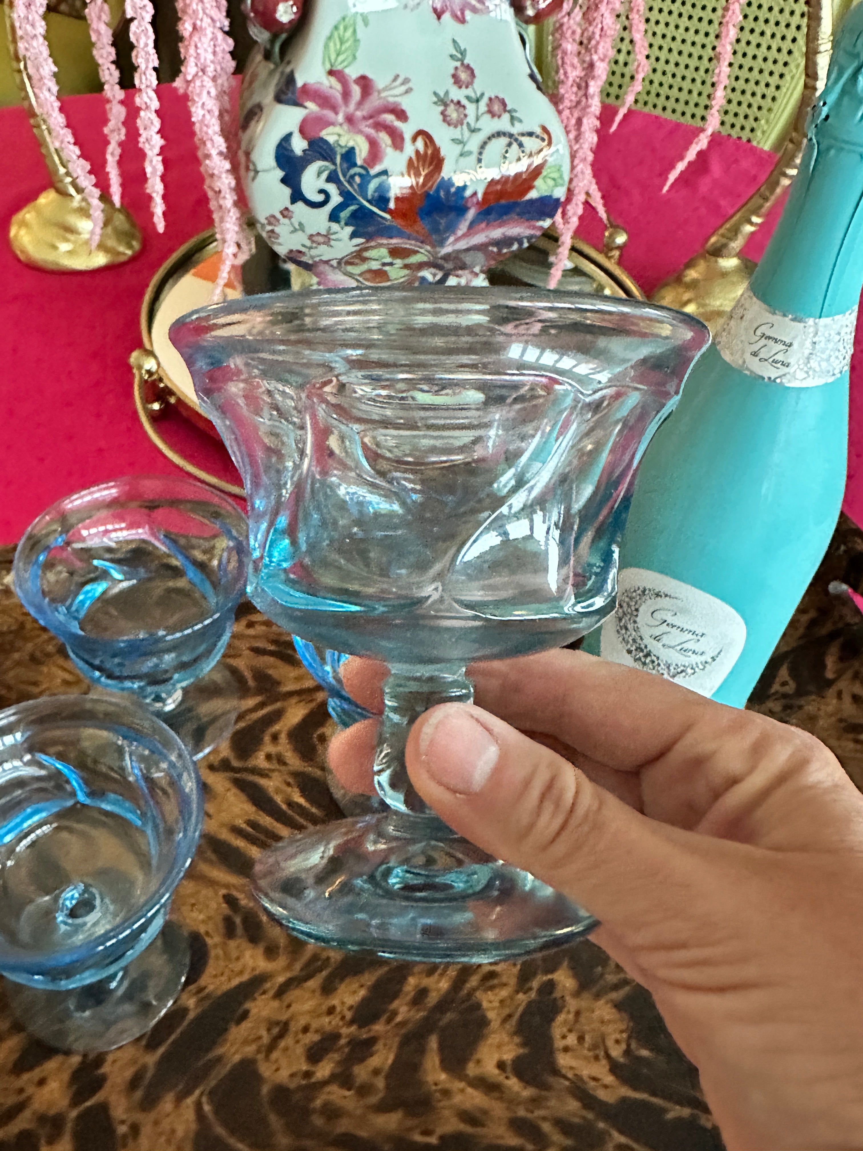 Vintage Champagne, Tall Sherbet Glasses, Fostoria Blue Jamestown Pattern Set of 4