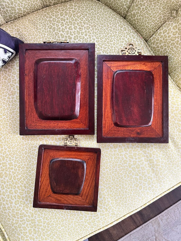 Vintage Chards Framed in Wood, Asian Decor, Chinoiserie- Set of 3