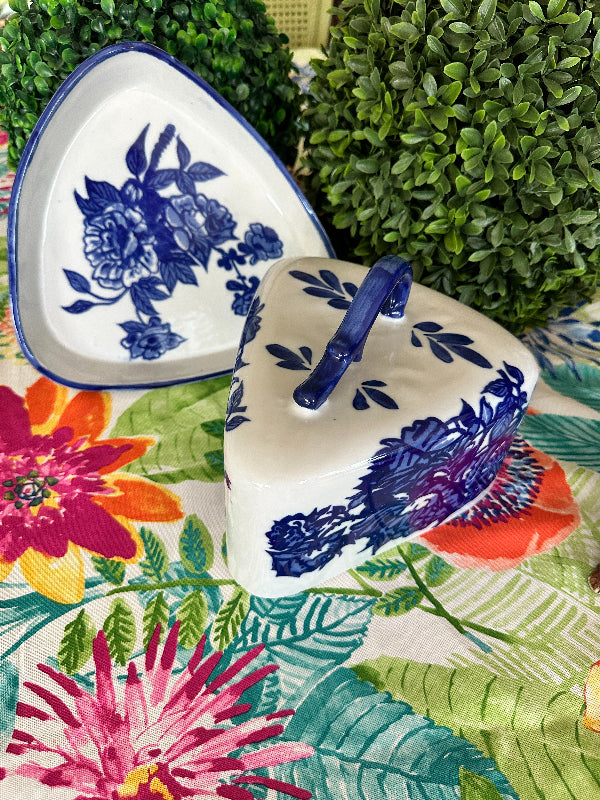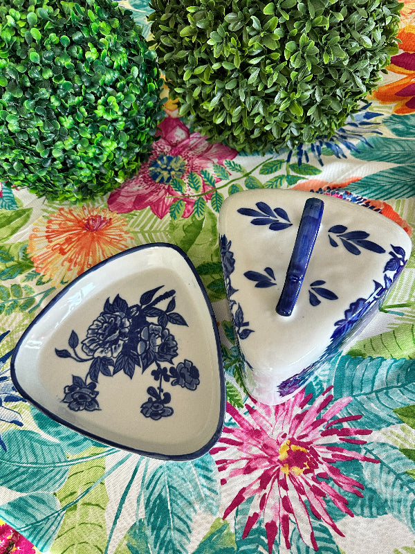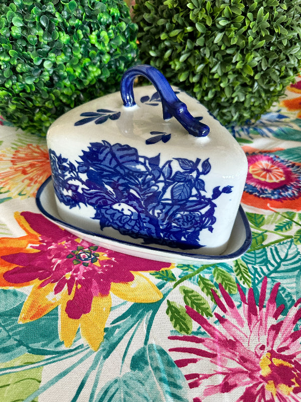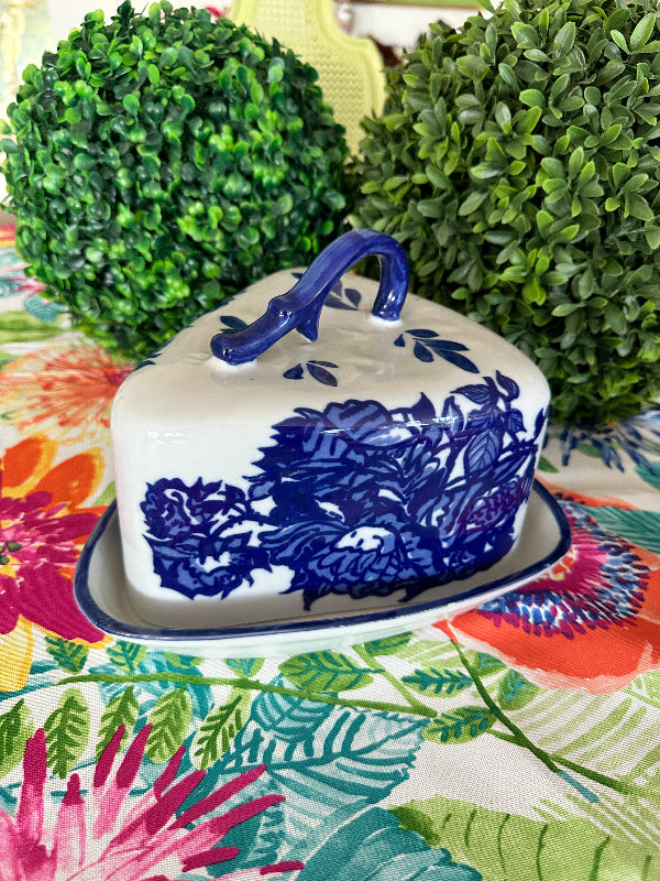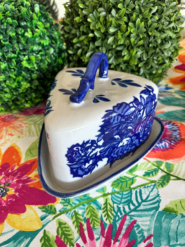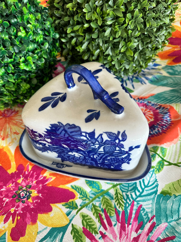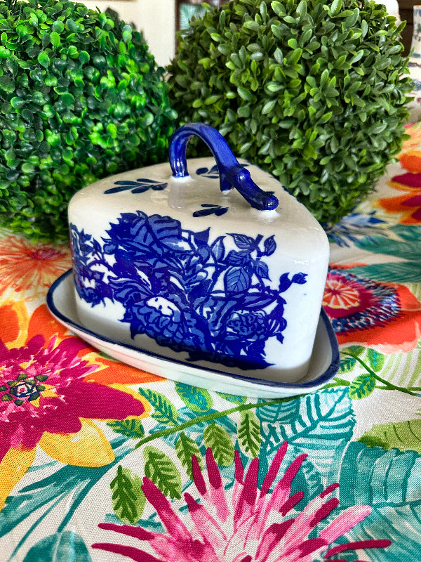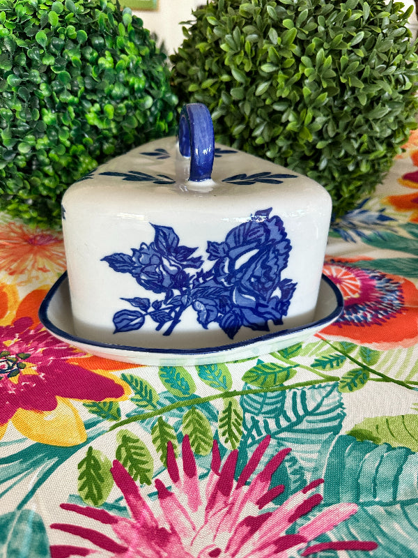 Vintage Cheese Dome, Blue and White Chinoiserie