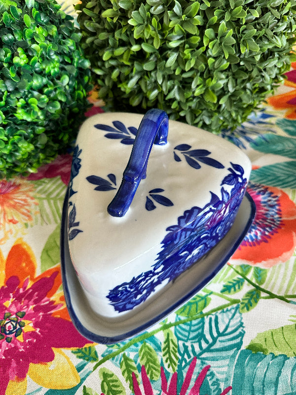 Add a touch of chinoiserie to your kitchen with this heavy ceramic cheese dome. A generous size makes is easy to hold several types of cheeses. Use it for you next gathering. Perfect for outdoor entertaining as well. Great vintage condition.