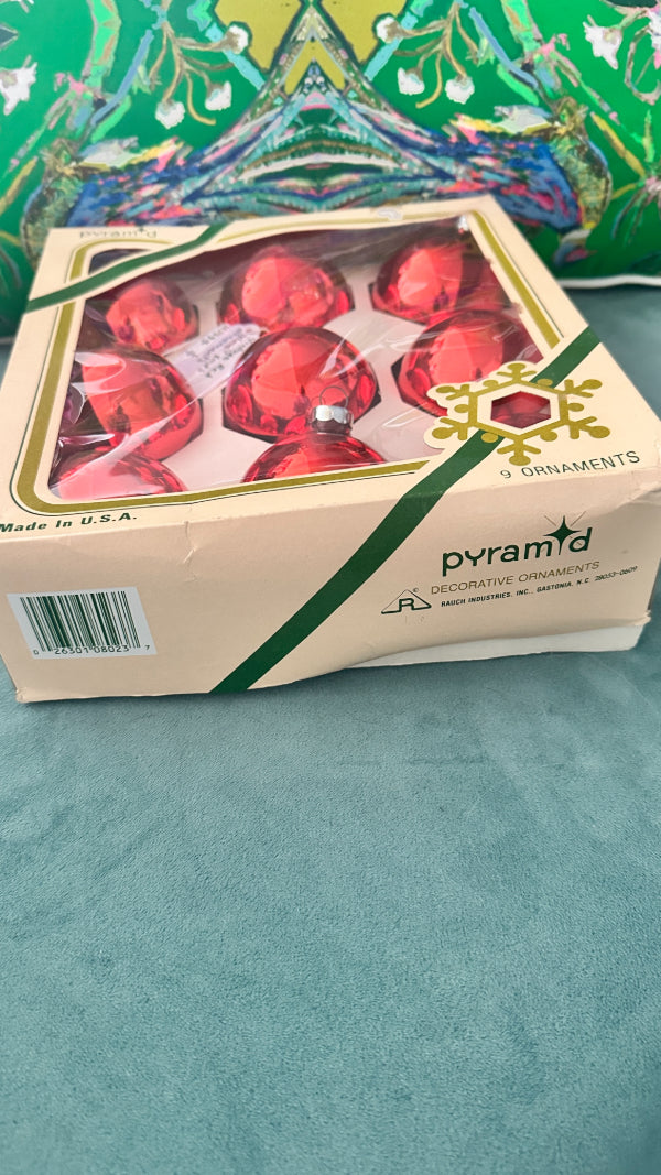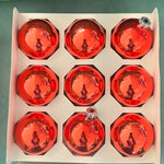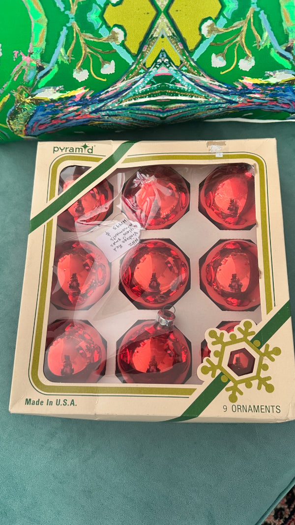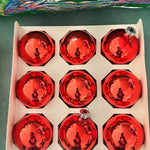 Vintage Christmas Ornaments, Red Glass Balls, Set of 9