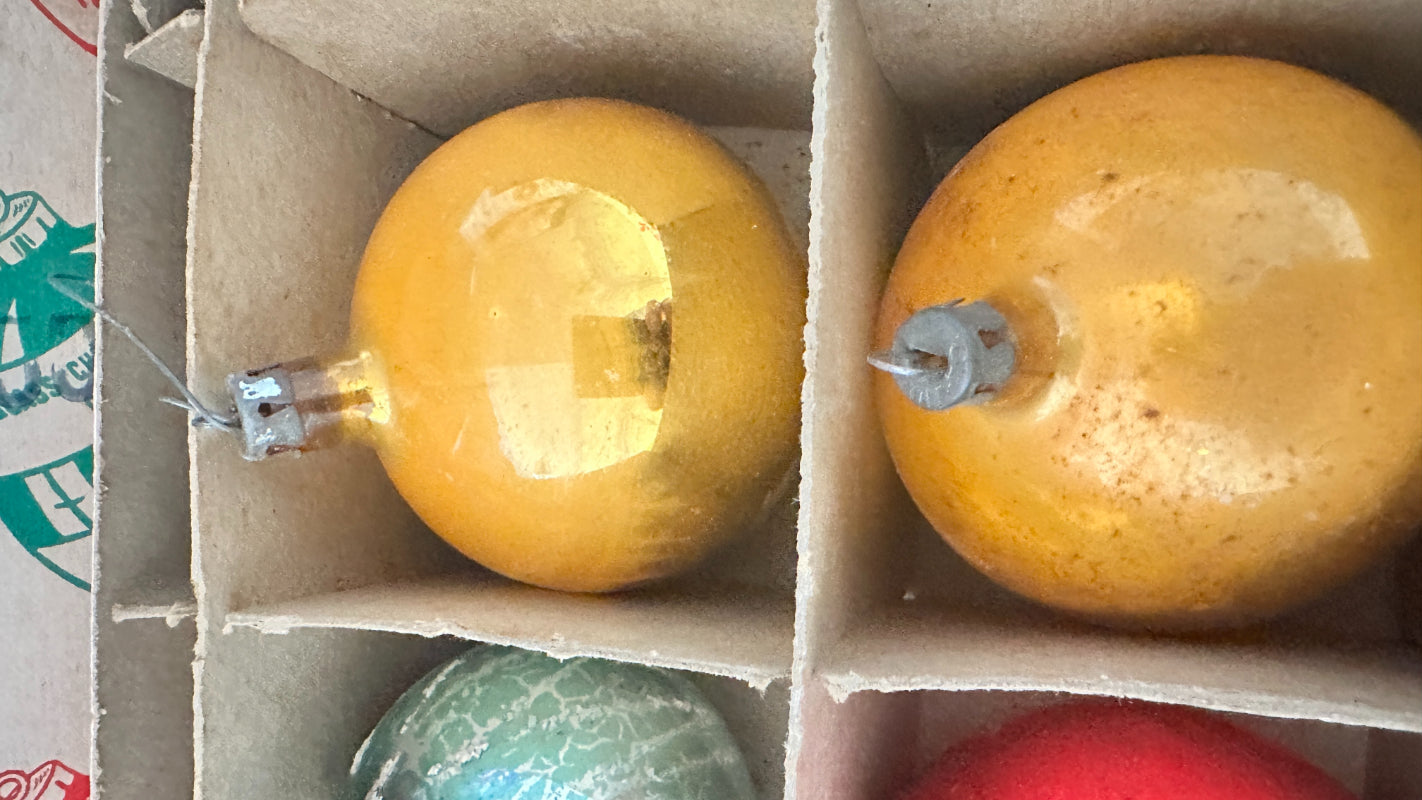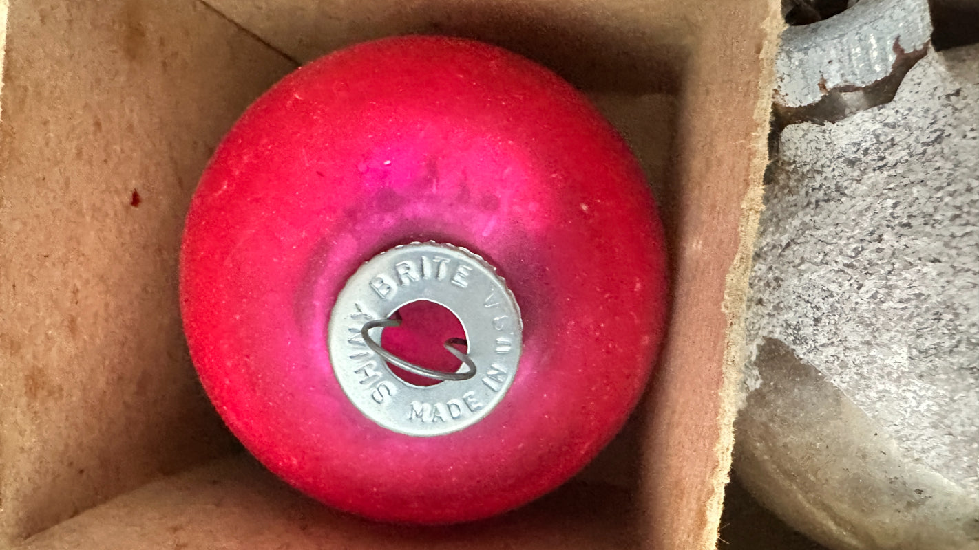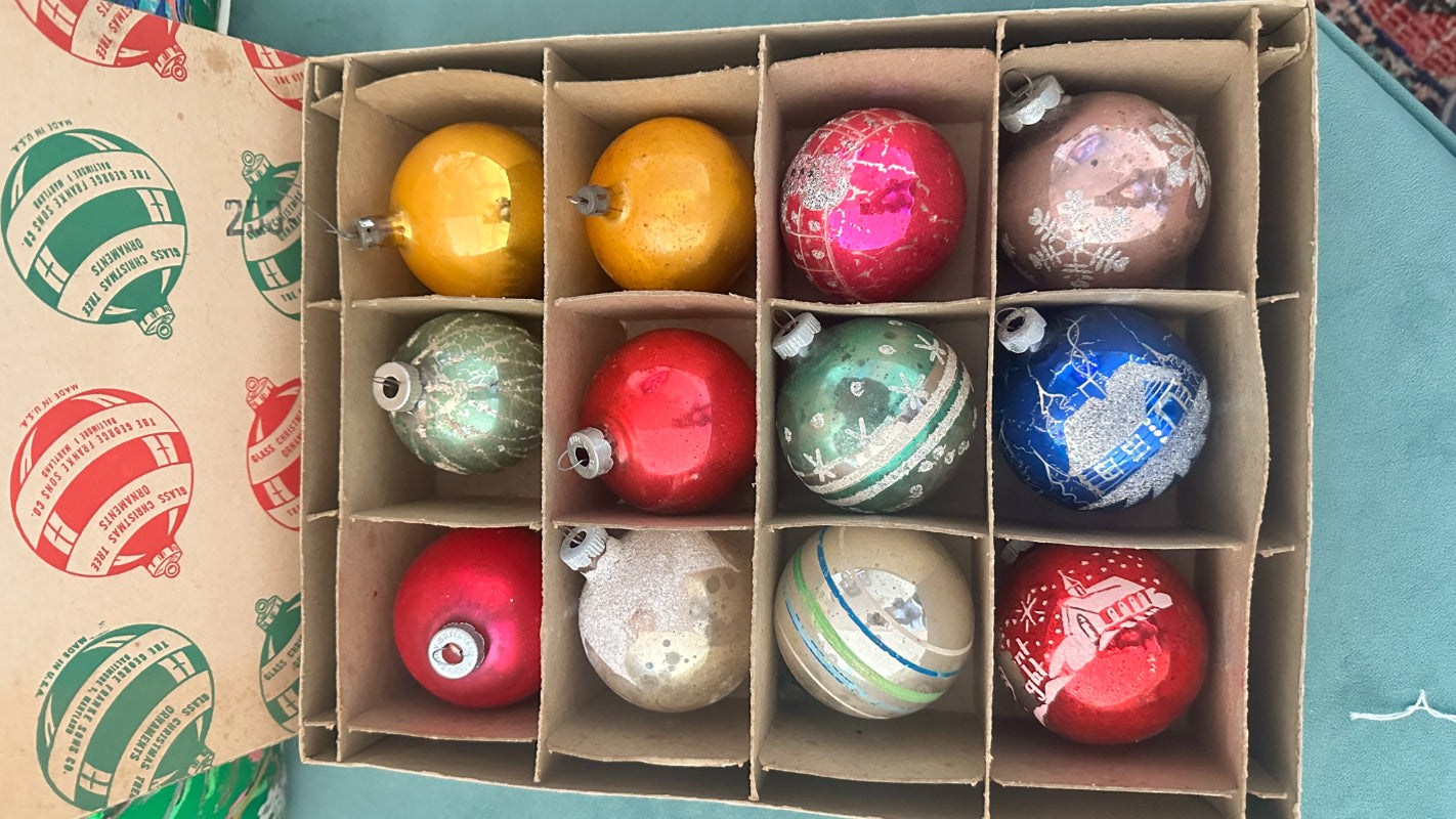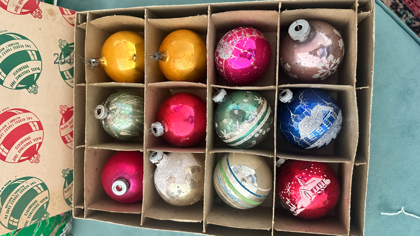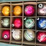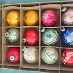 Vintage Christmas Ornaments, Set of 12, Some Frosted, In Box, Shiny Brite, Made in USA